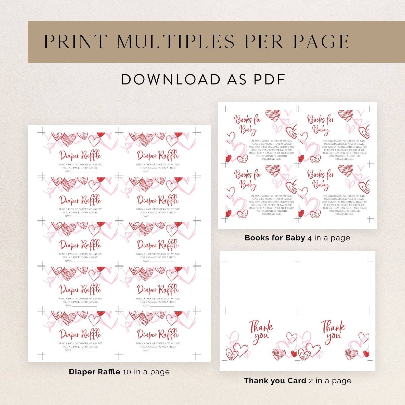 Celebrate your little sweetheart with this delightful spring baby shower invitation bundle. Featuring charming pink and red hearts at the bottom, it sets a joyful tone for your event. The bundle includes everything you need—invites, a mobile version, and coordinating cards for a heartwarming celebration.