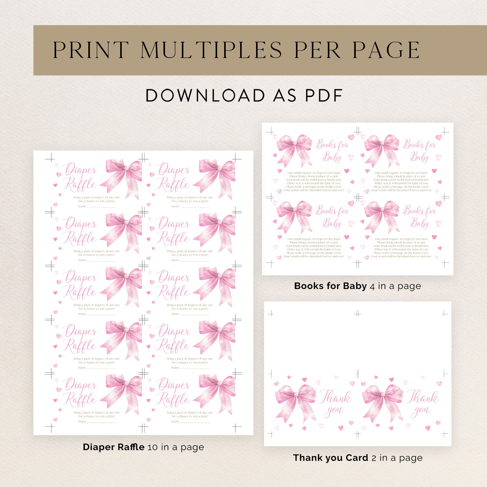 Celebrate the arrival of your little sweetheart with this lovely spring baby shower bundle. Featuring a charming pink ribbon and playful heart accents, this set includes an invitation, mobile invite, diaper raffle, books for baby, and thank you card. Perfect for creating a joyful and memorable event!