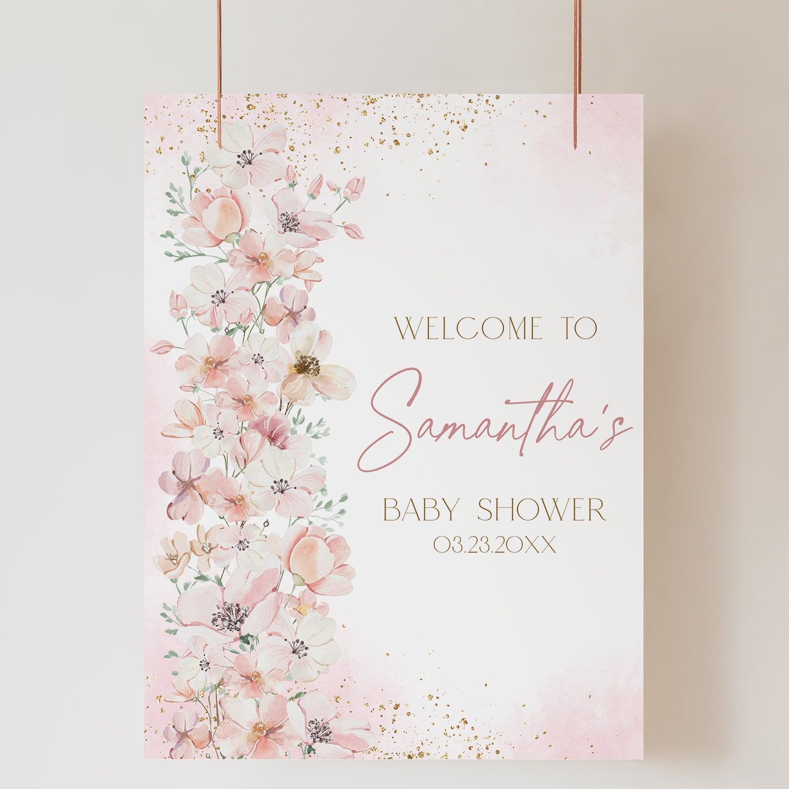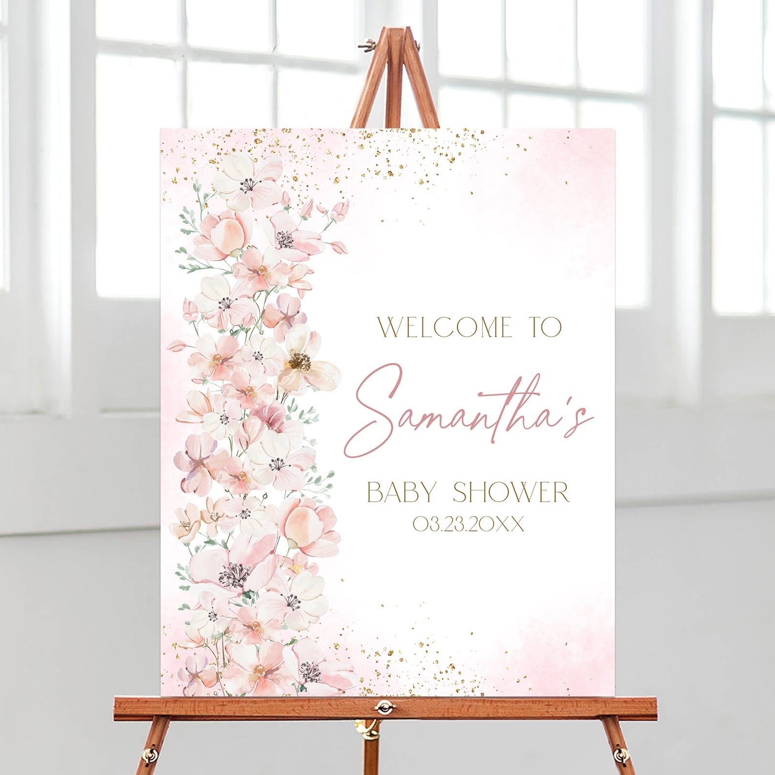 1. Purchase this Baby in Bloom Floral Shower Digital Welcome Sign: Wildflowers & Gold template