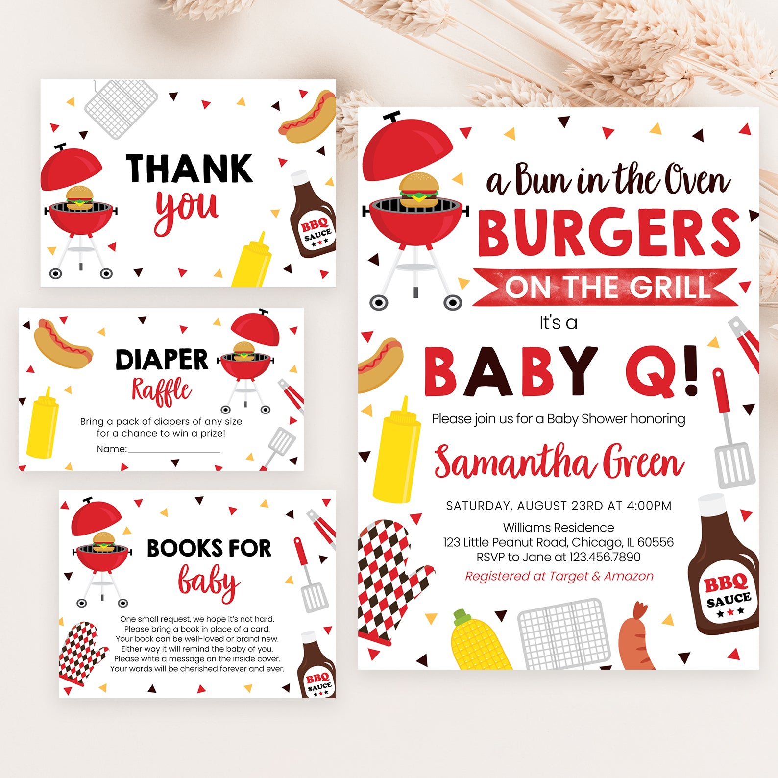 Baby Q BBQ Baby Shower Invitation Bundle: Grill, Confetti & Fun!