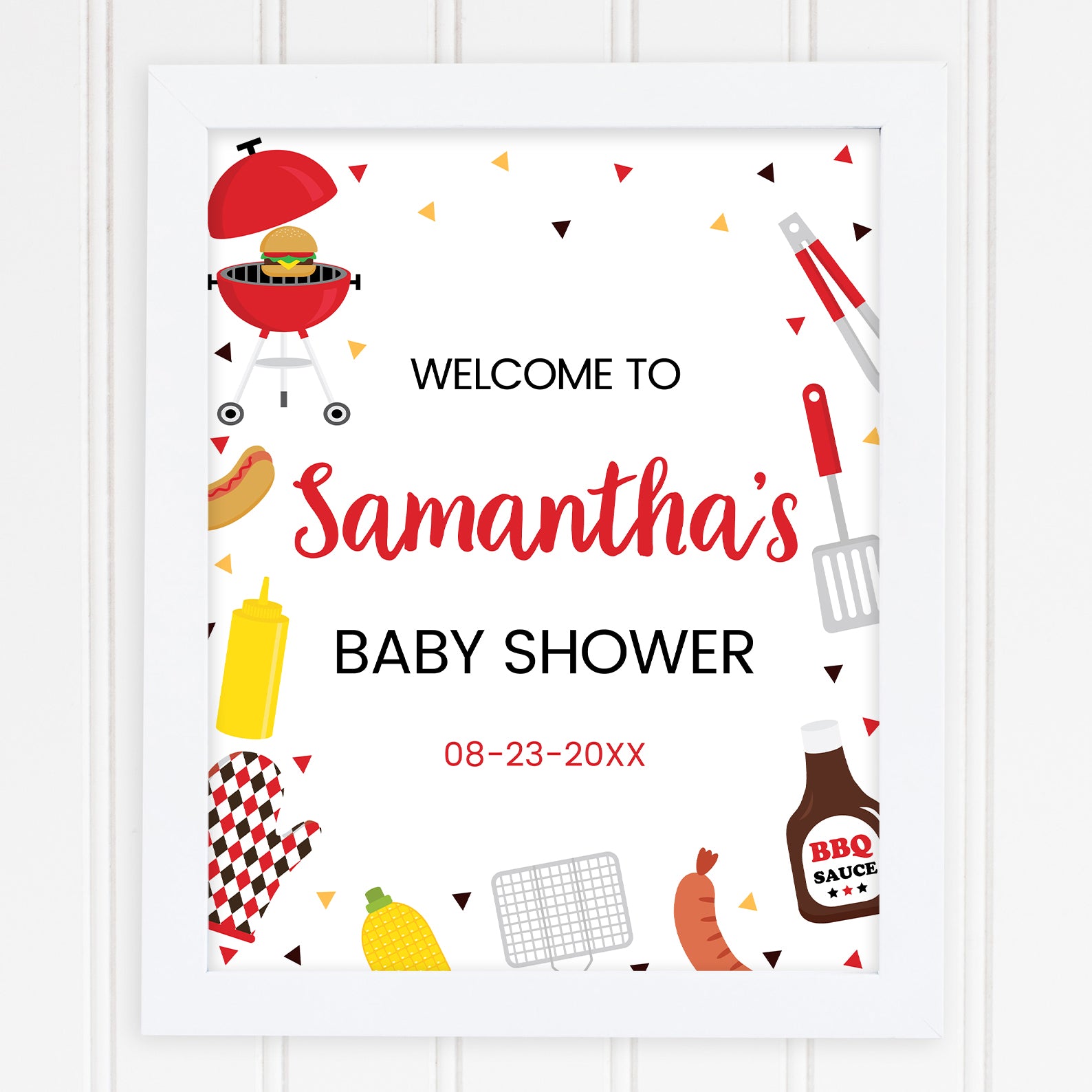 - Purchase this Baby Q BBQ Baby Shower Welcome Sign: Grill, Confetti & Fun! template