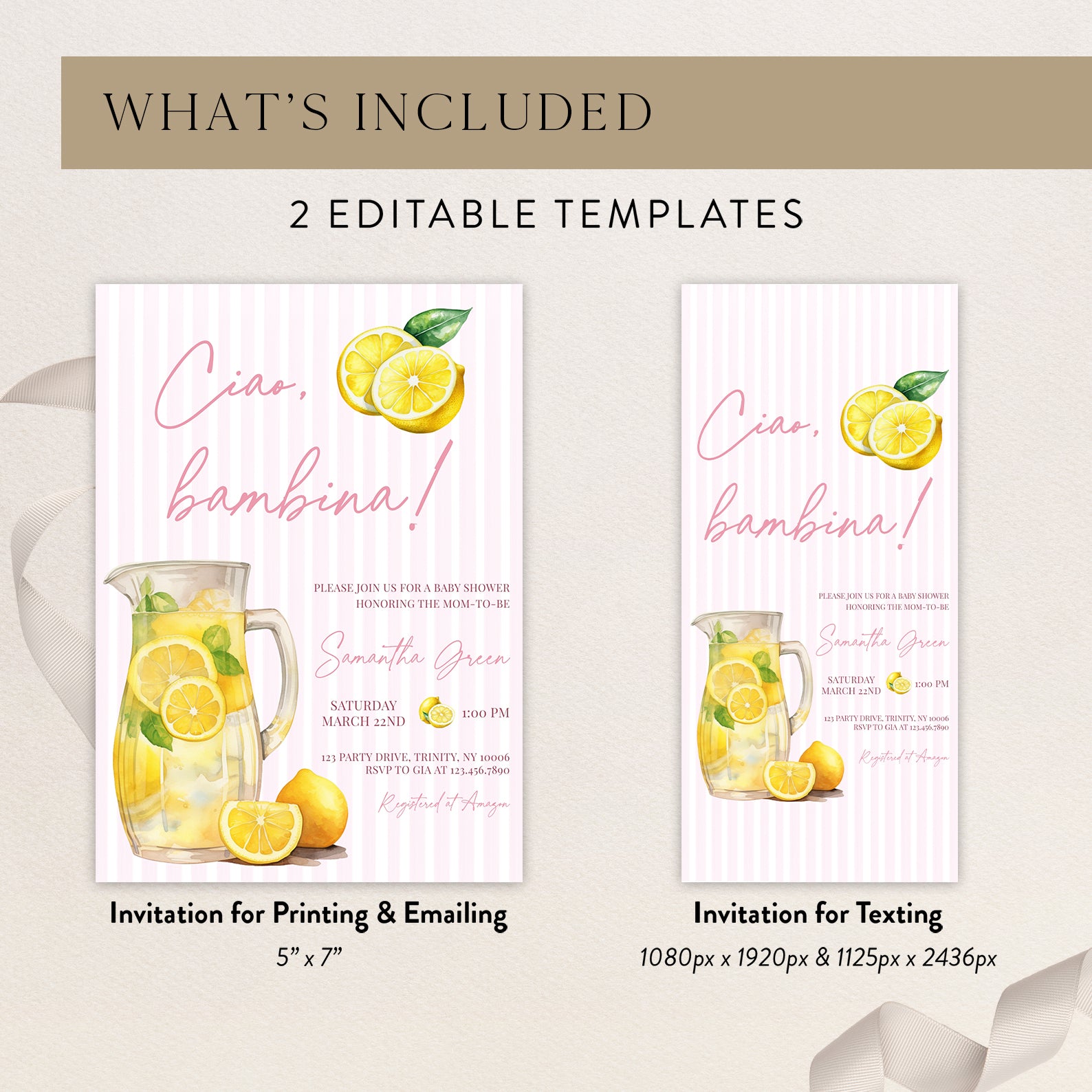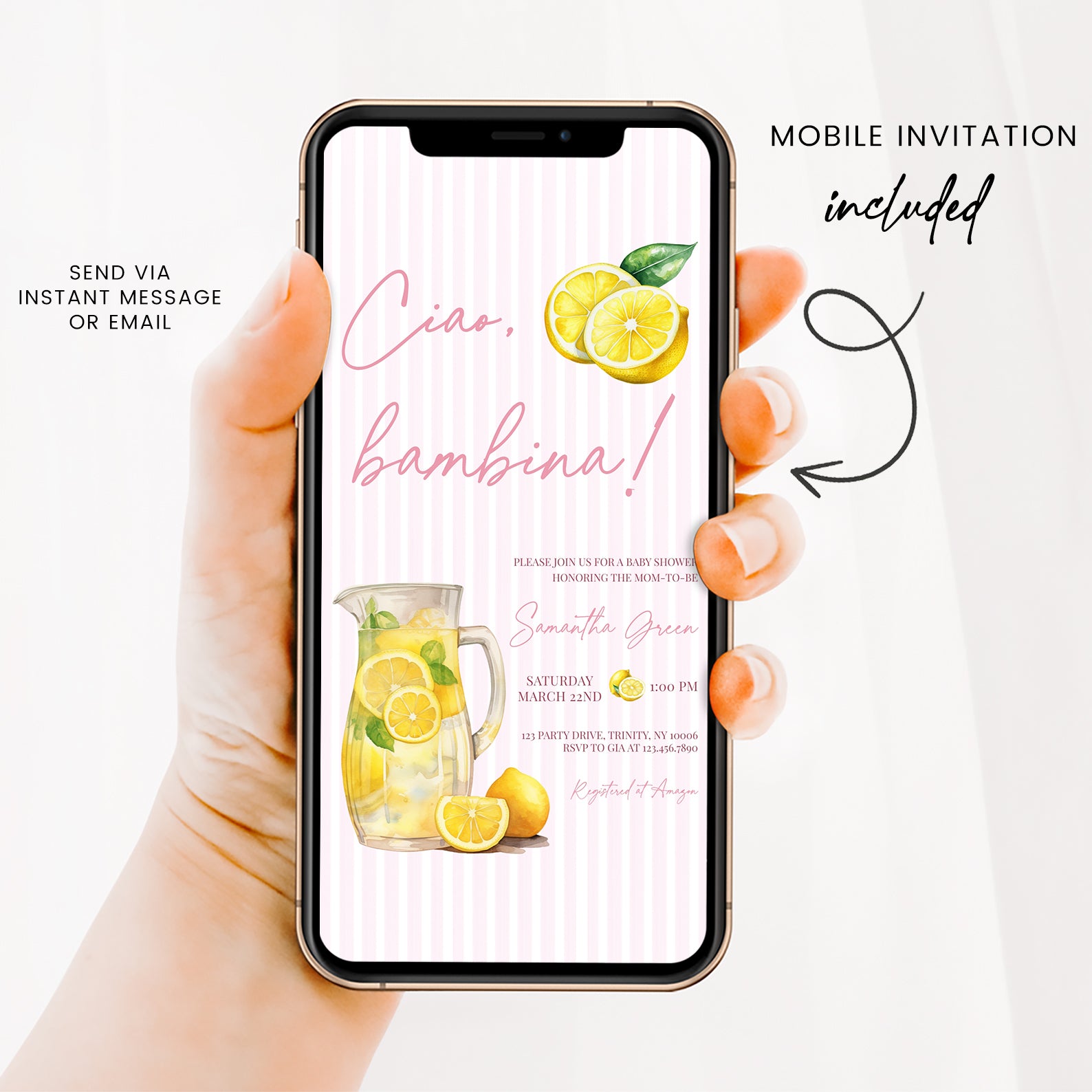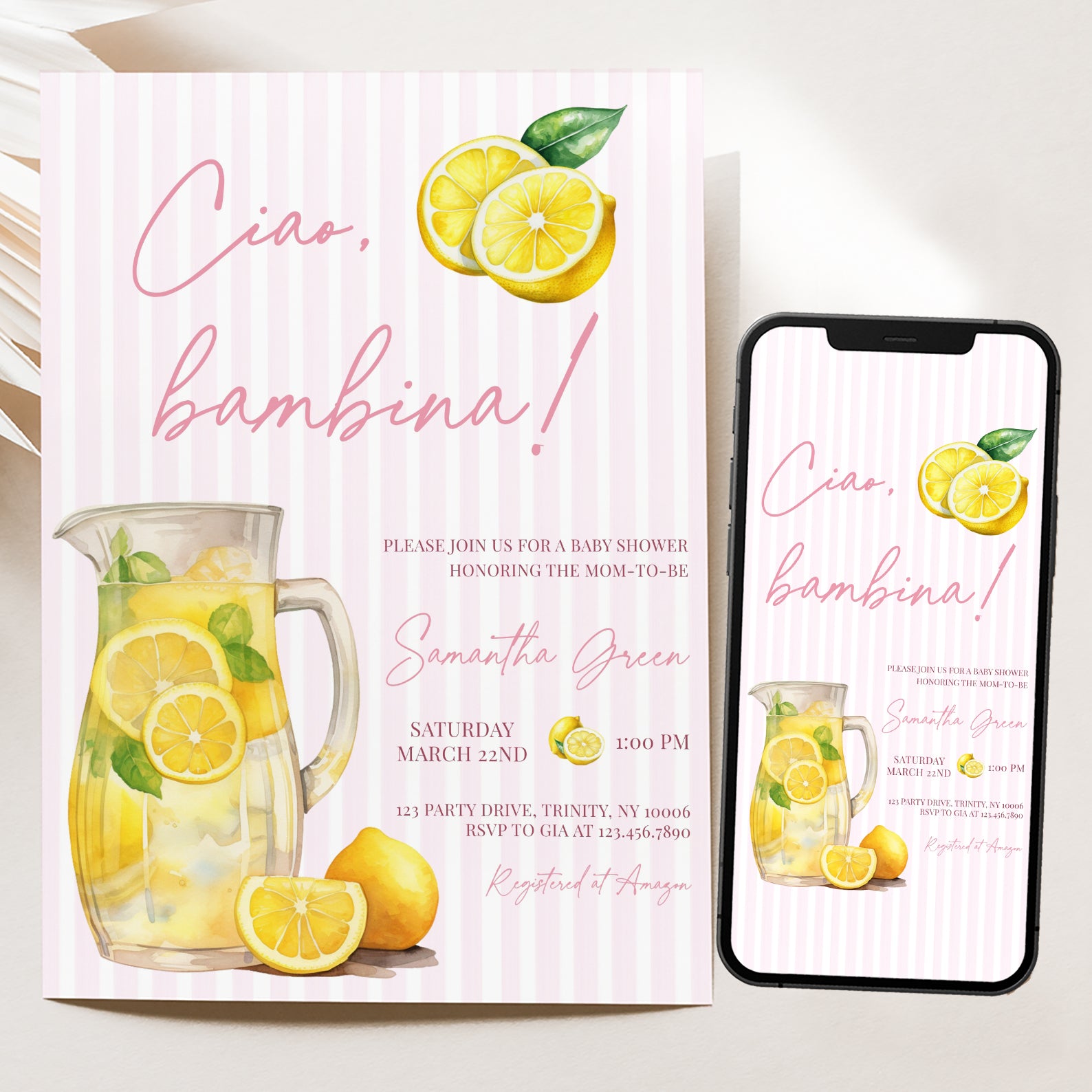 - Purchase this Ciao, Bambina Baby Shower Digital Invite: Summer Lemon Theme template