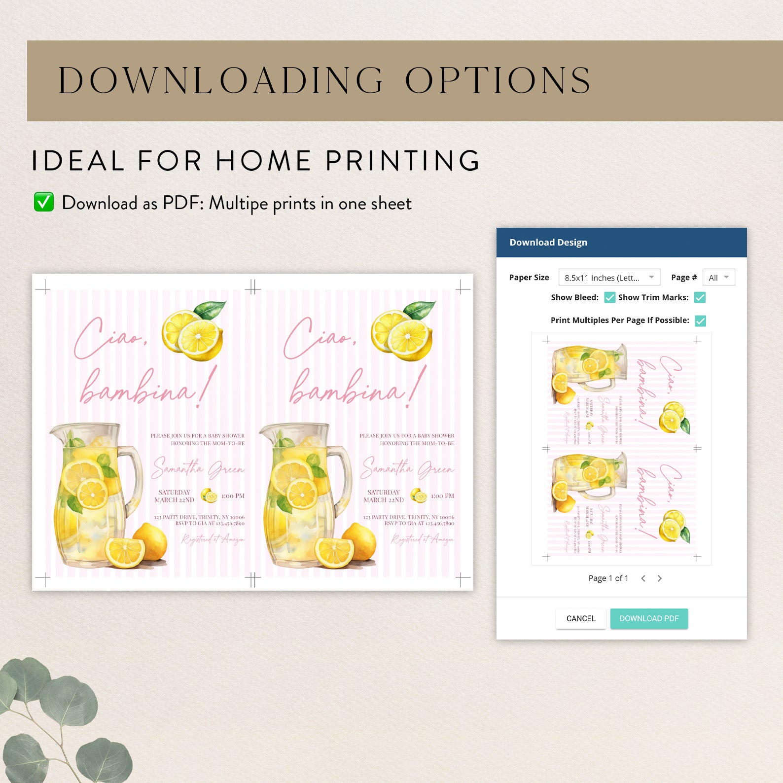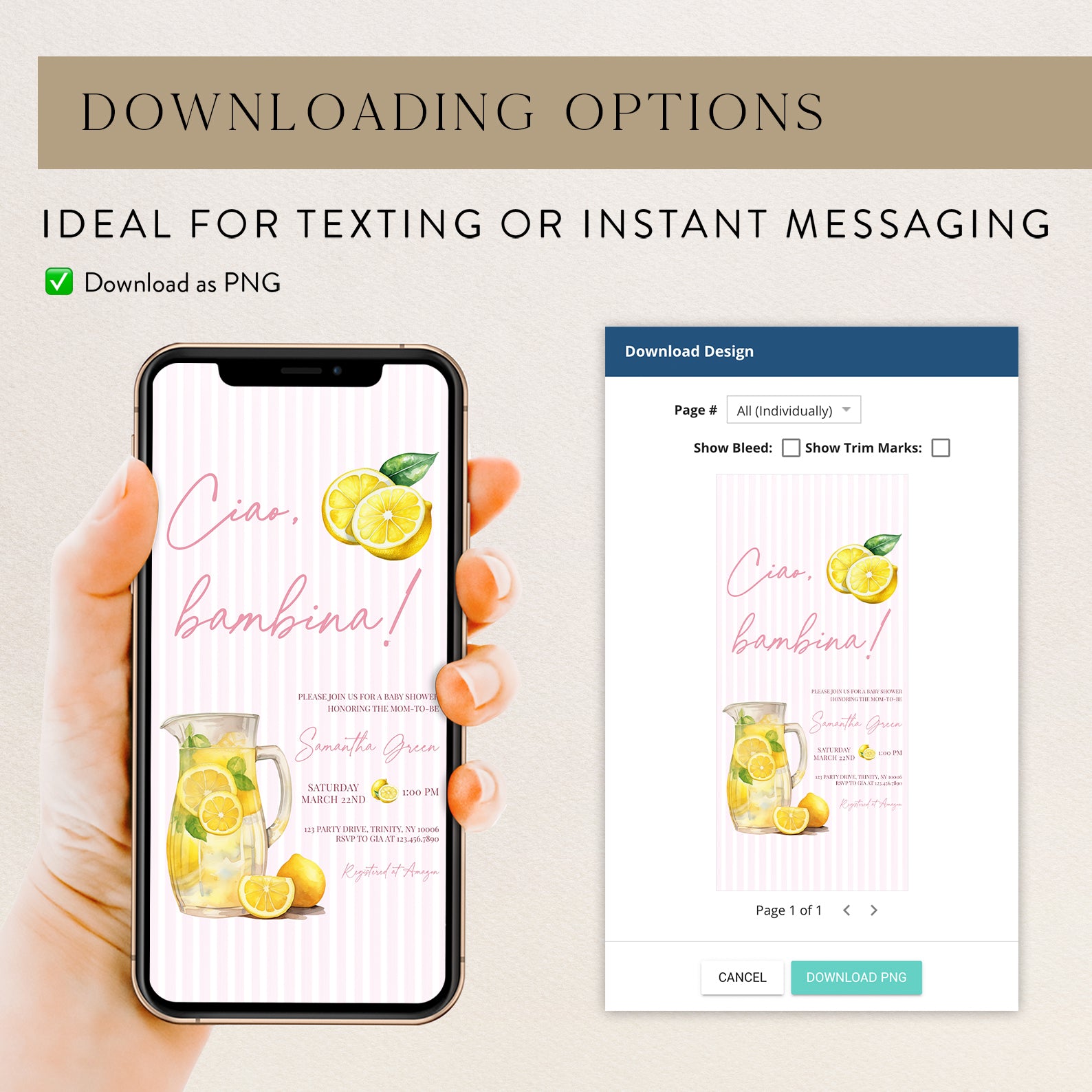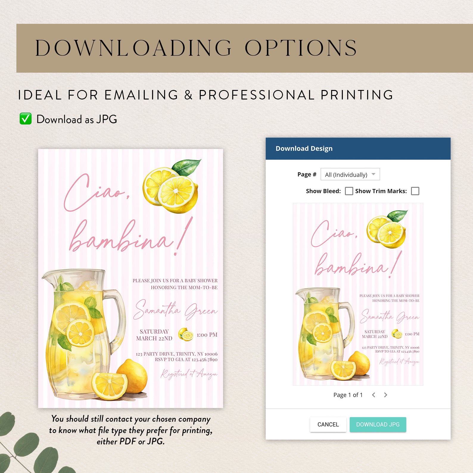 - Purchase this Ciao, Bambina Baby Shower Digital Invite: Summer Lemon Theme template