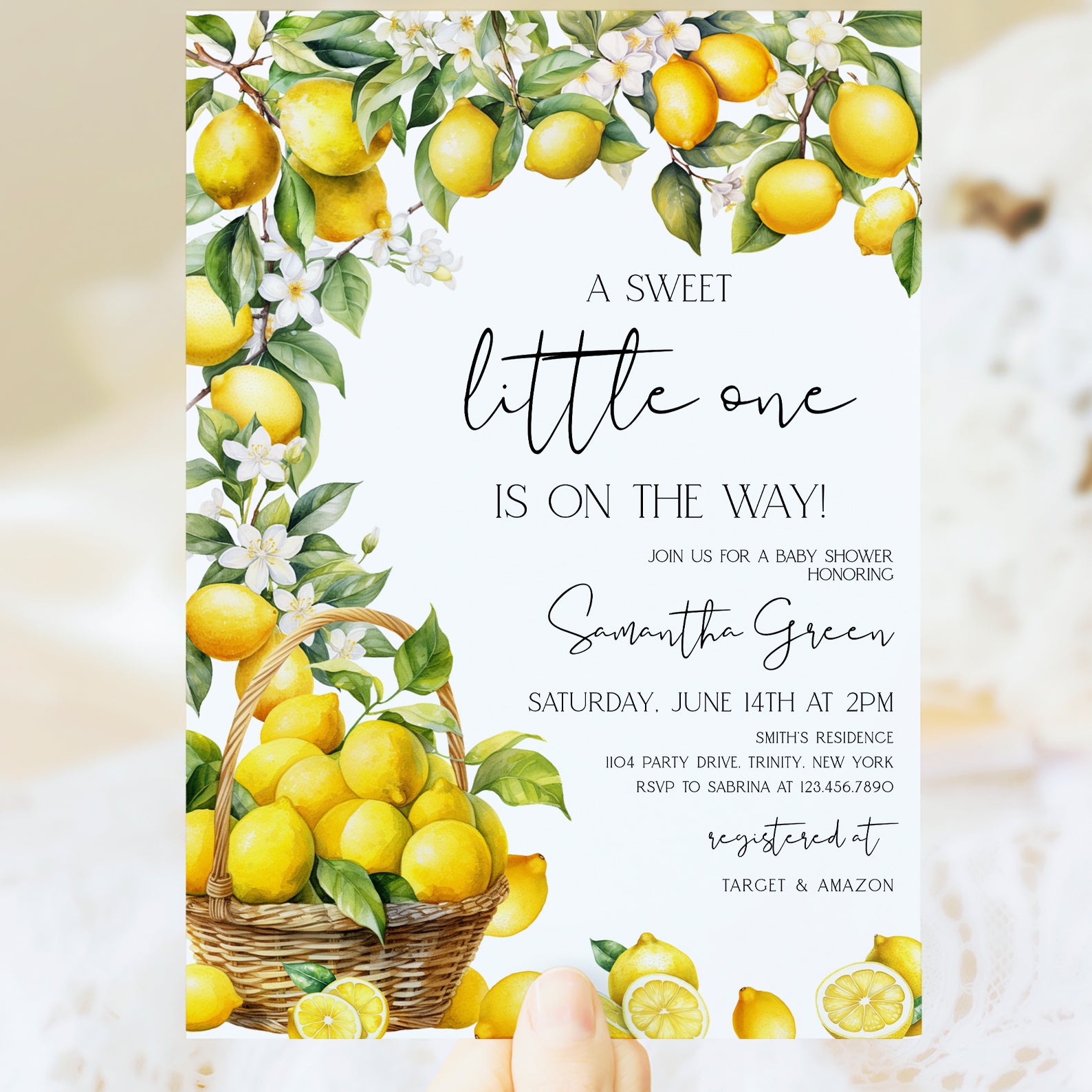 - Purchase this Lemon Baby Shower Invite: Summer Floral Digital Design template