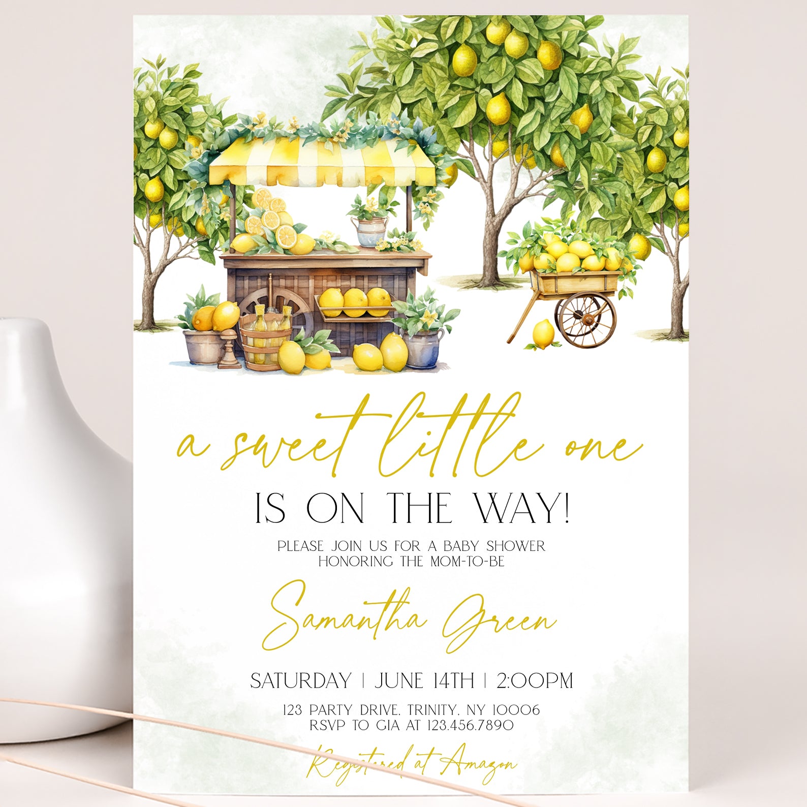 Celebrate the arrival of your little one with our charming summer baby shower digital invitation! Featuring delightful lemon trees, a whimsical lemon stand, and a rustic wooden cart brimming with fresh lemons, this design perfectly captures the essence of sunny days and sweet beginnings. Invite your loved ones to join in the joy of welcoming your new bundle of joy with this vibrant and cheerful invitation that sets the tone for a memorable celebration.