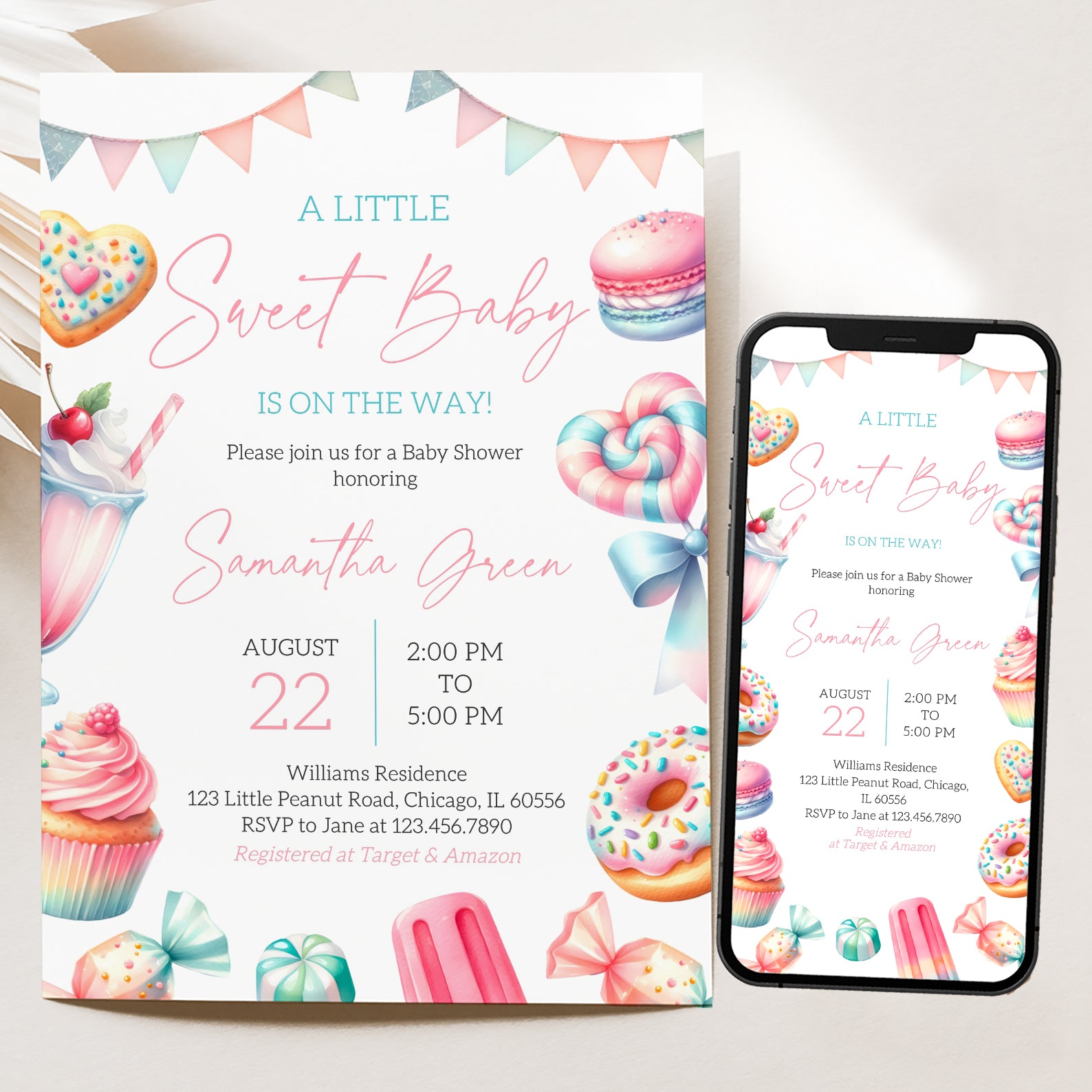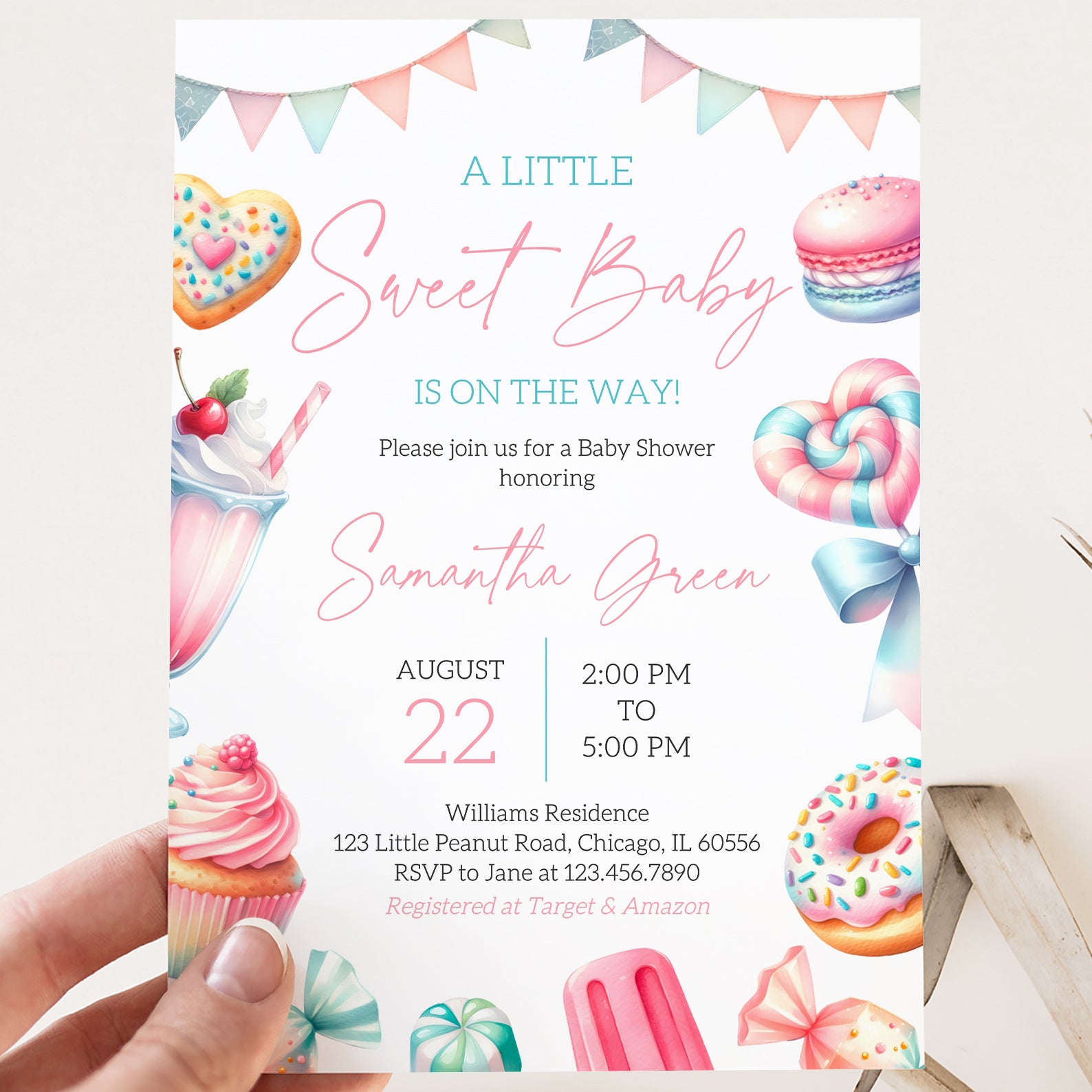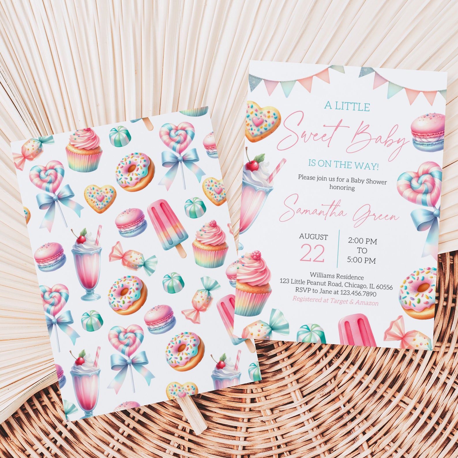 - Purchase this Sweet Treats Baby Shower Digital Invite with Watercolor Banner template