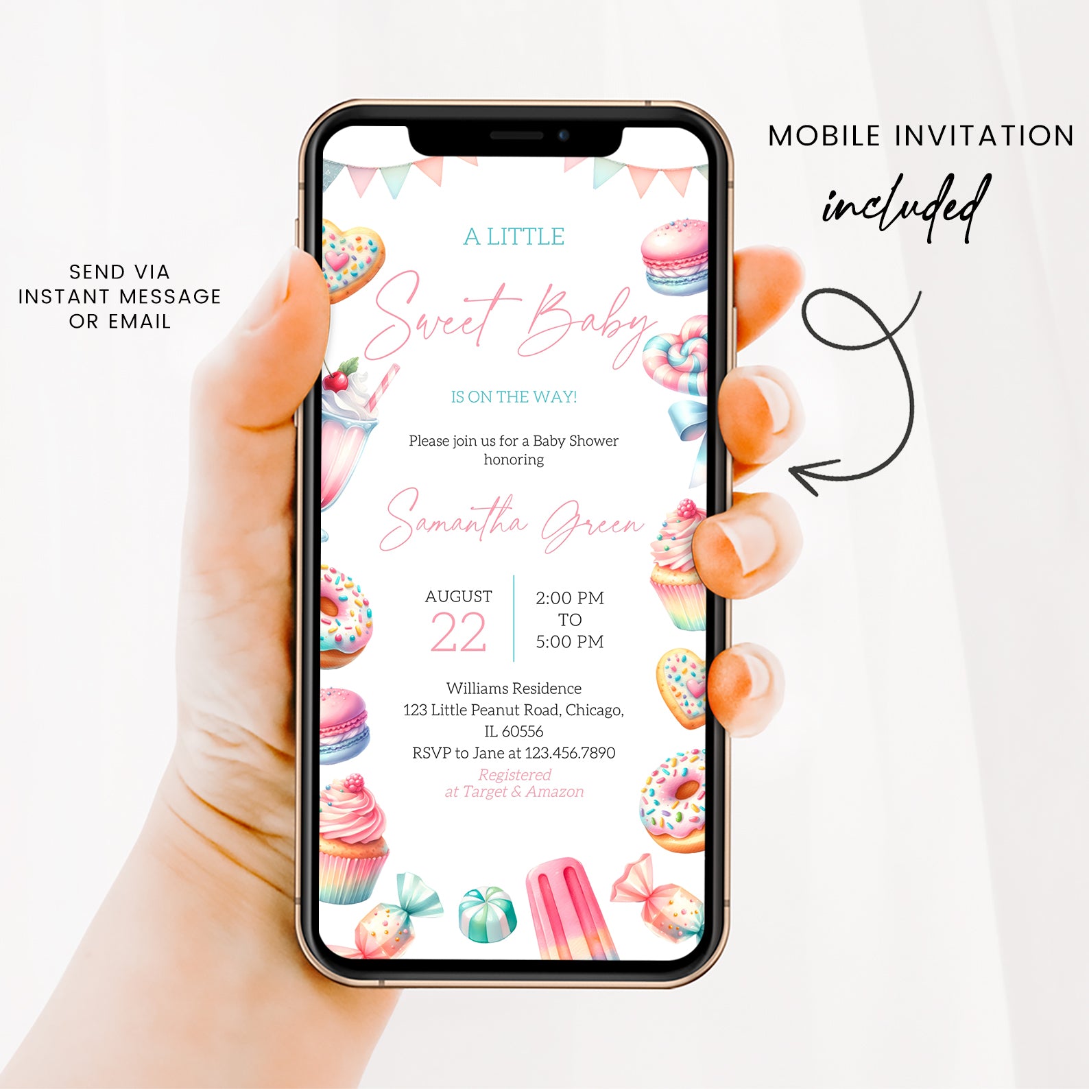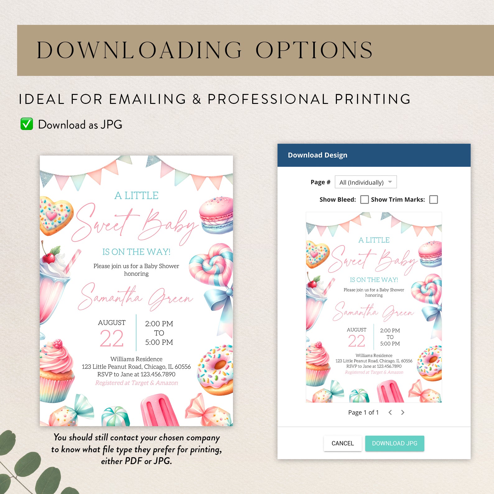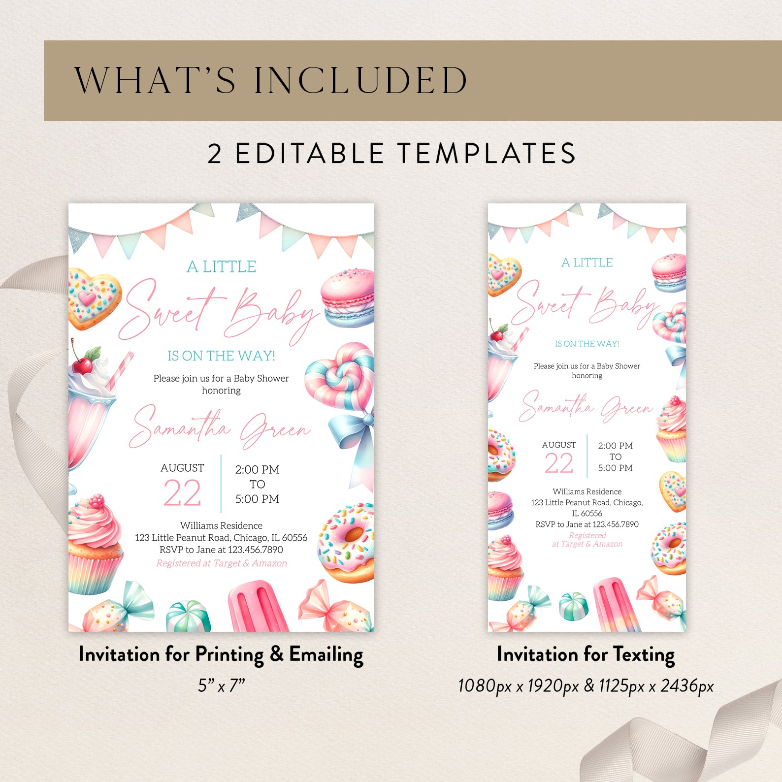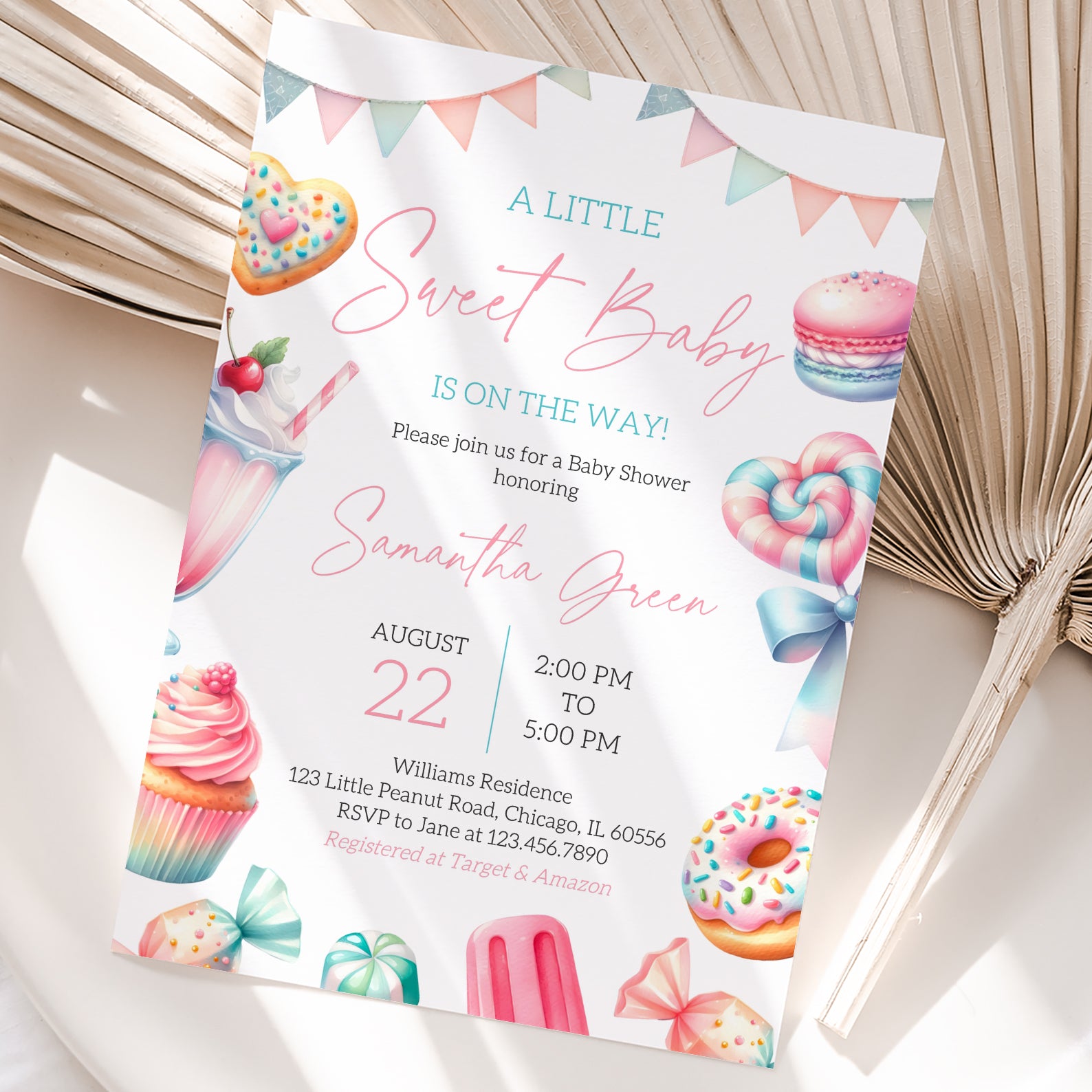 - Purchase this Sweet Treats Baby Shower Digital Invite with Watercolor Banner template