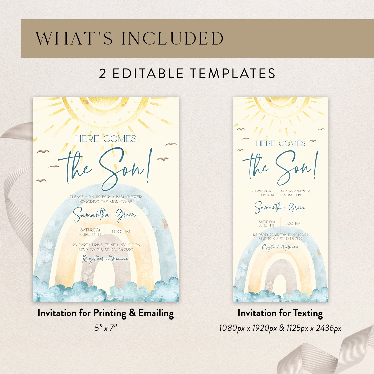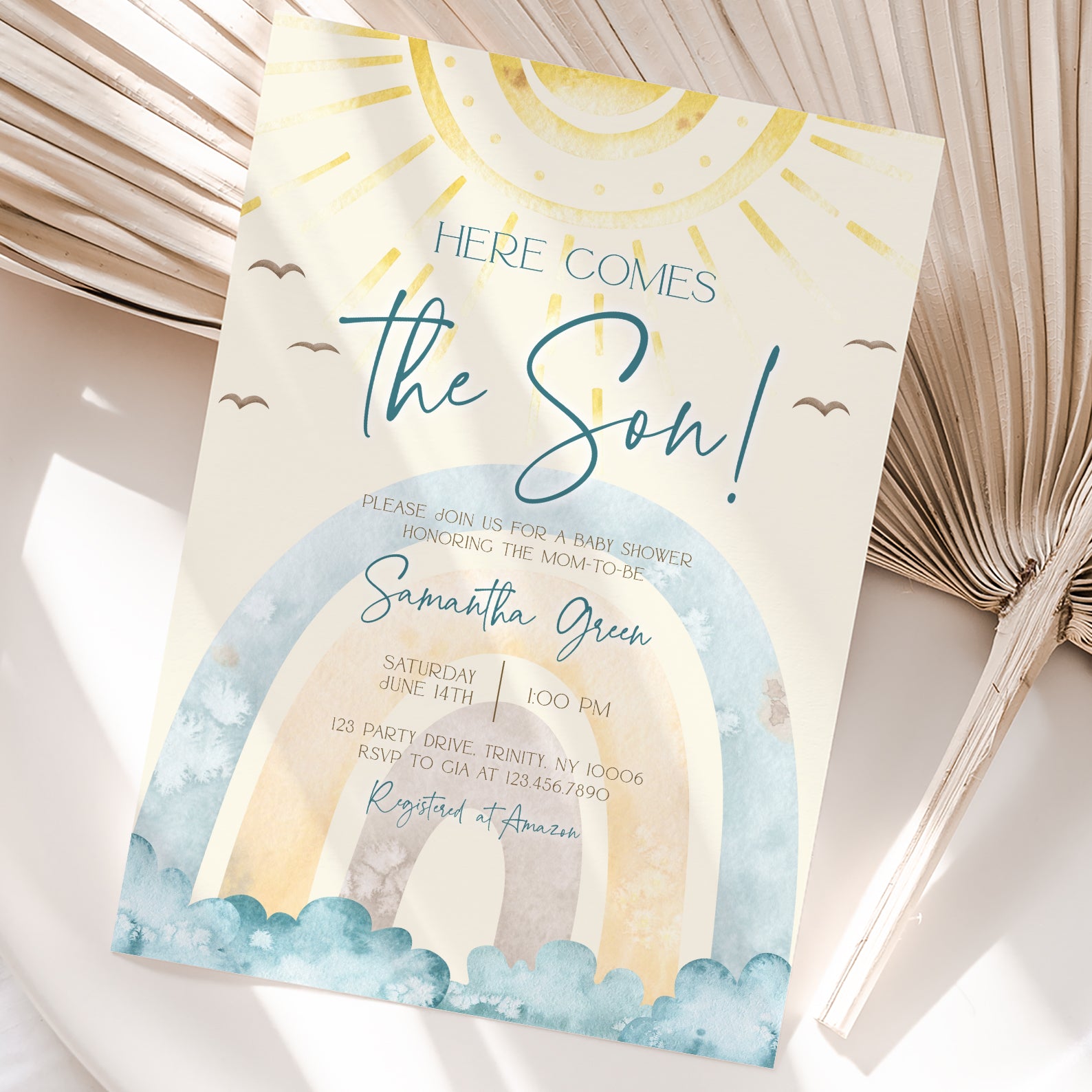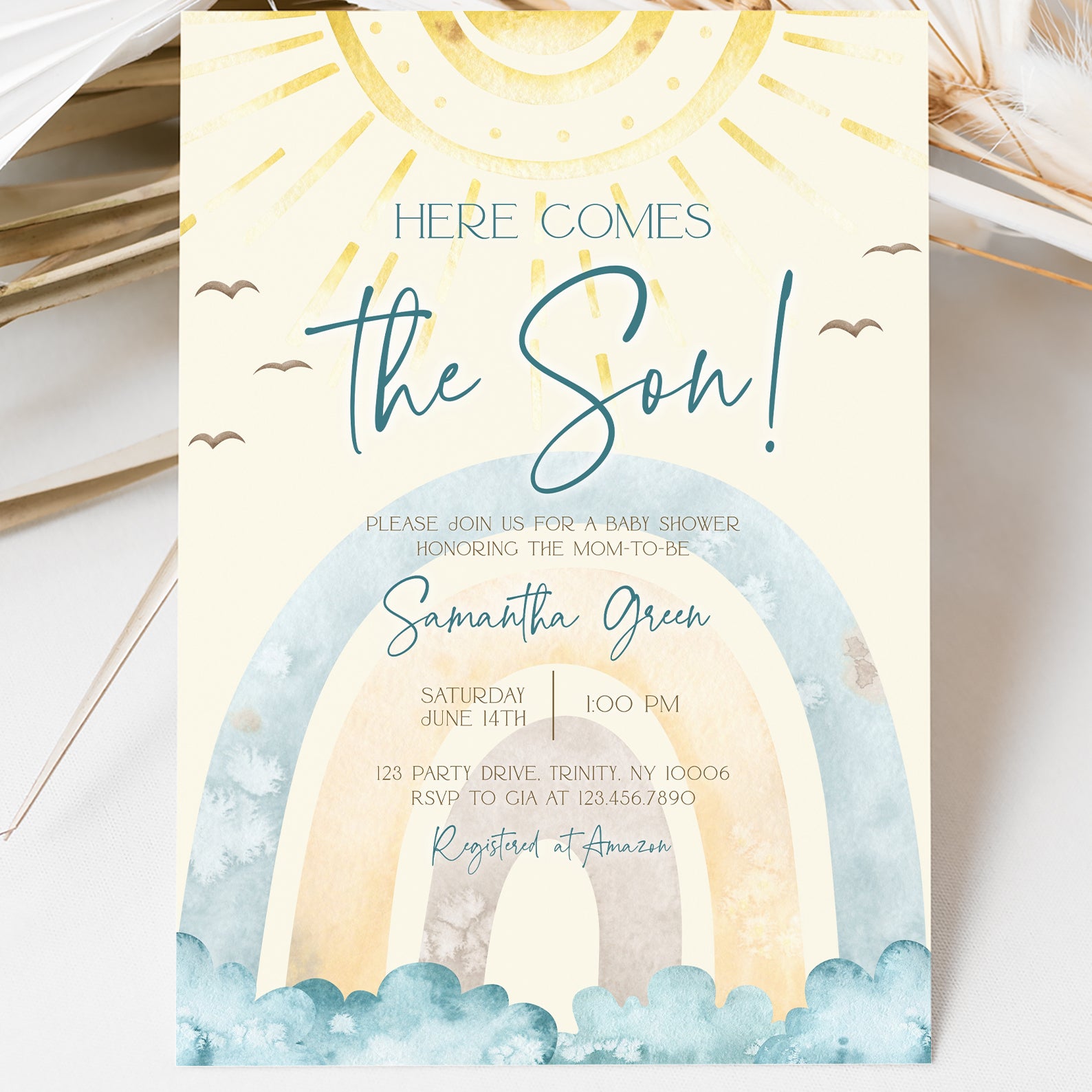 - Purchase this Watercolor Here Comes the Sun Baby Shower Digital Invite template