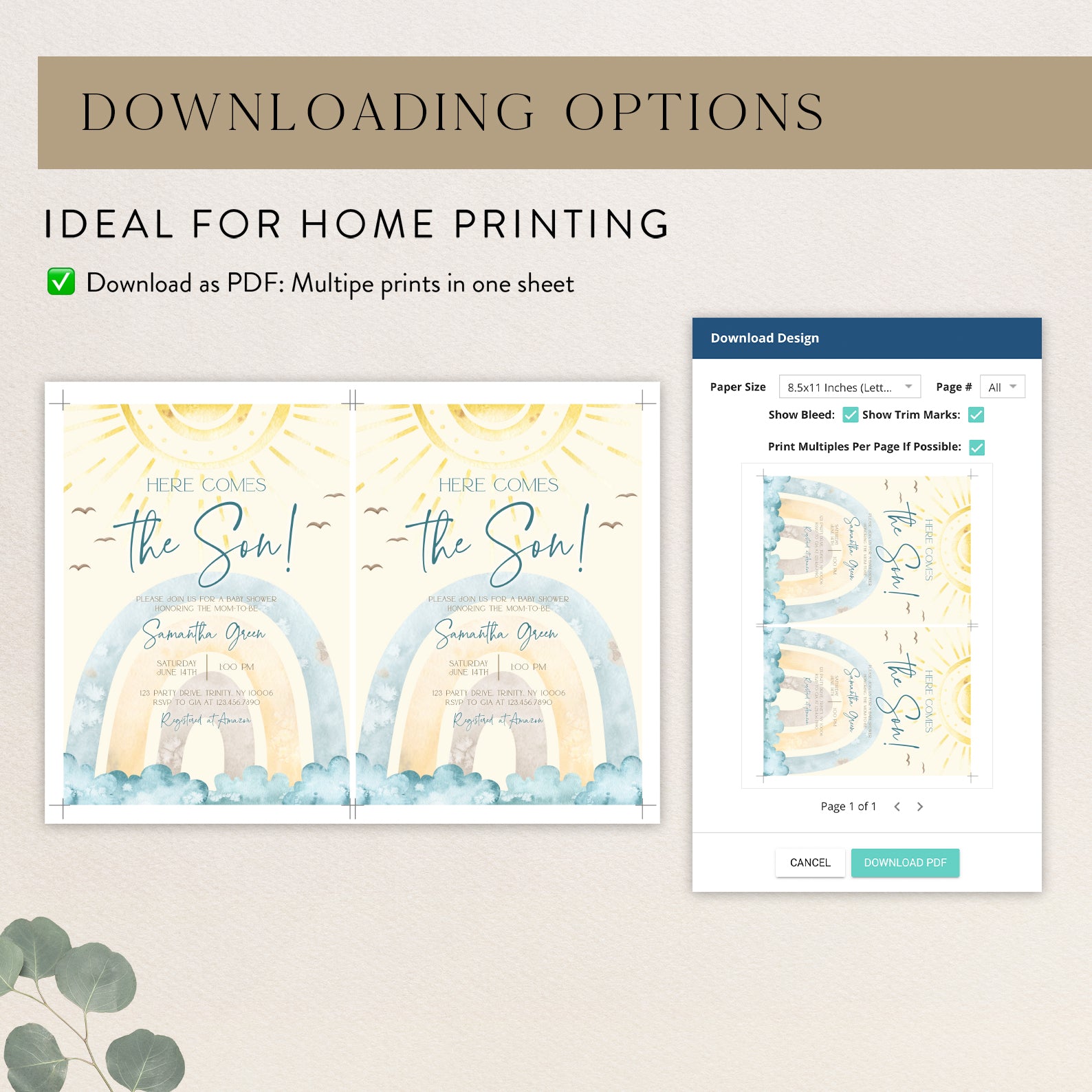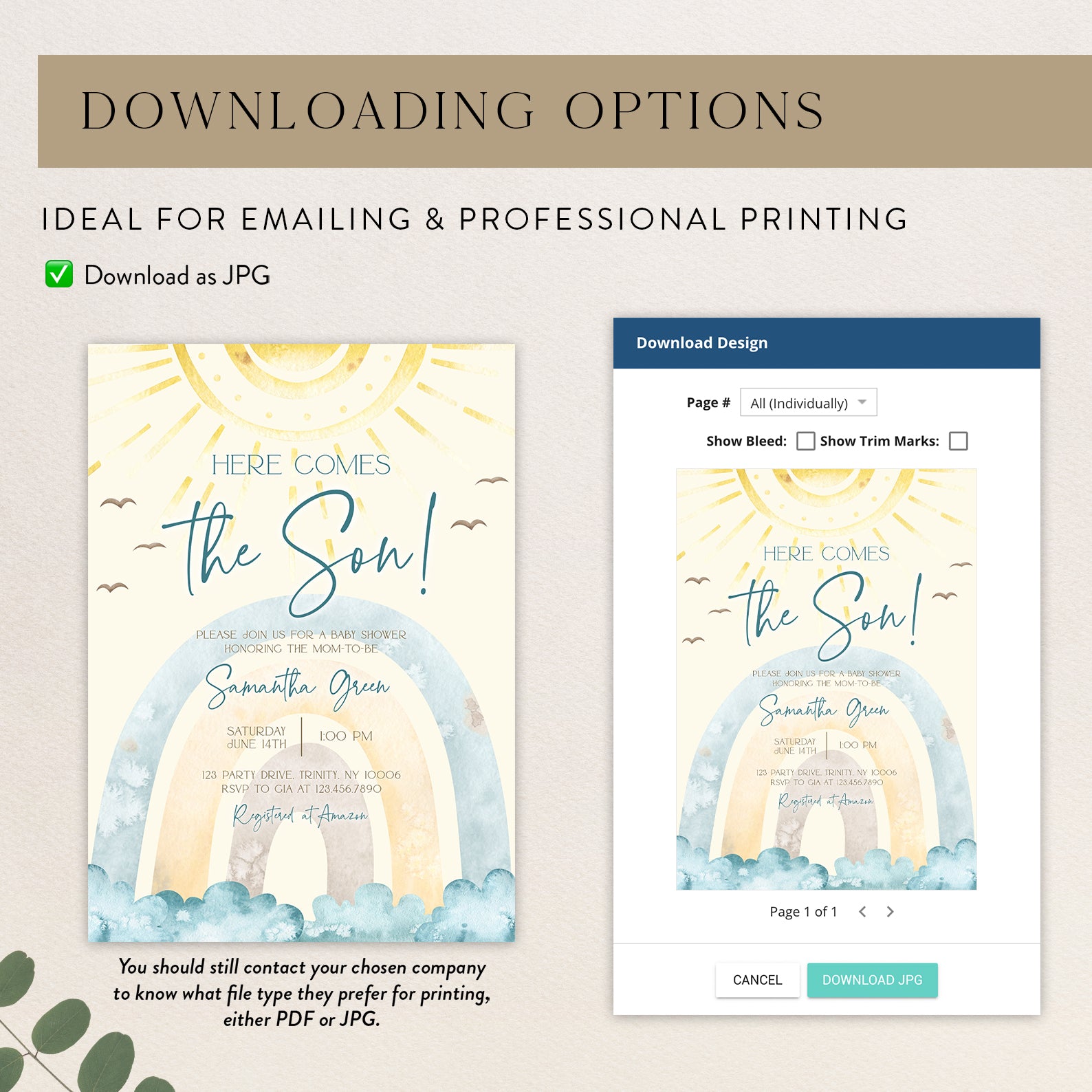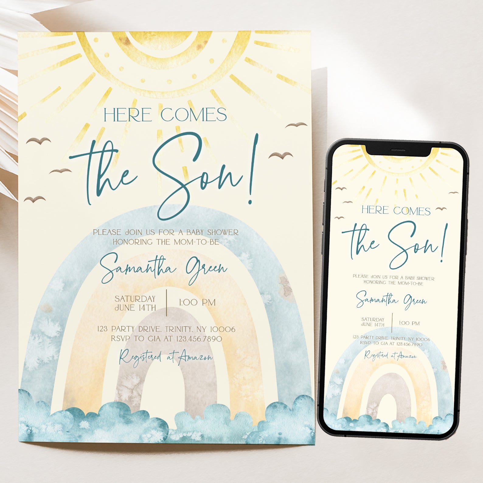 - Purchase this Watercolor Here Comes the Sun Baby Shower Digital Invite template