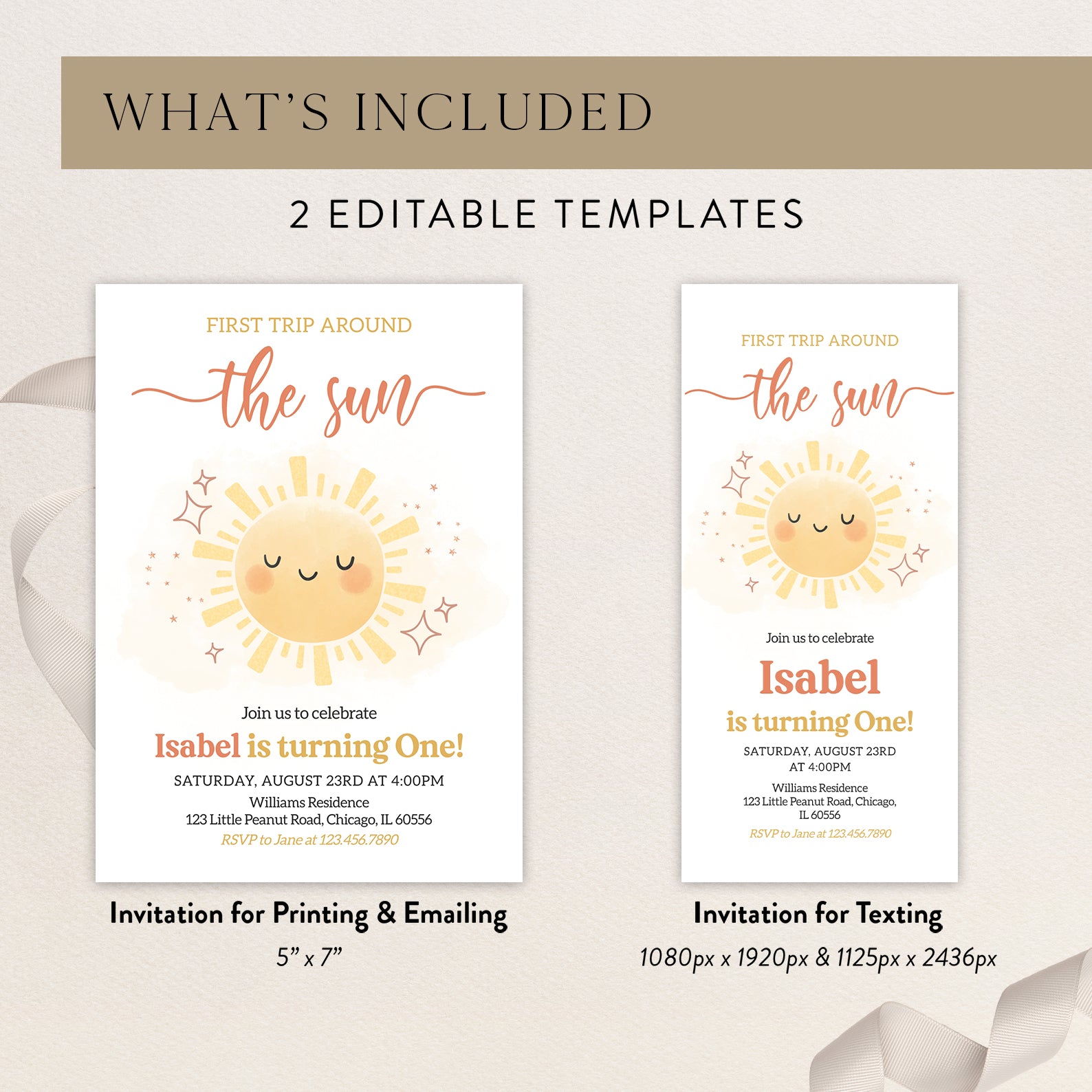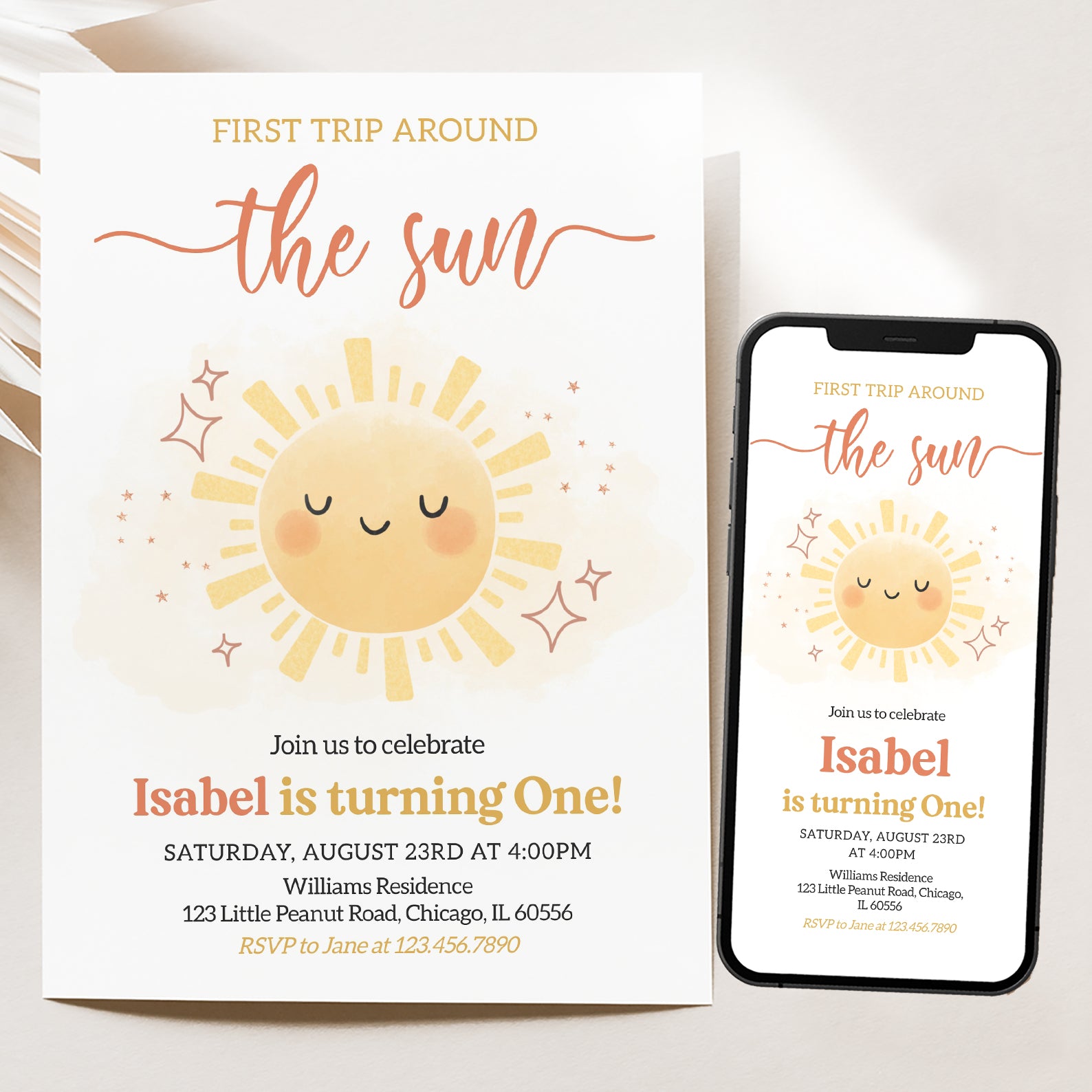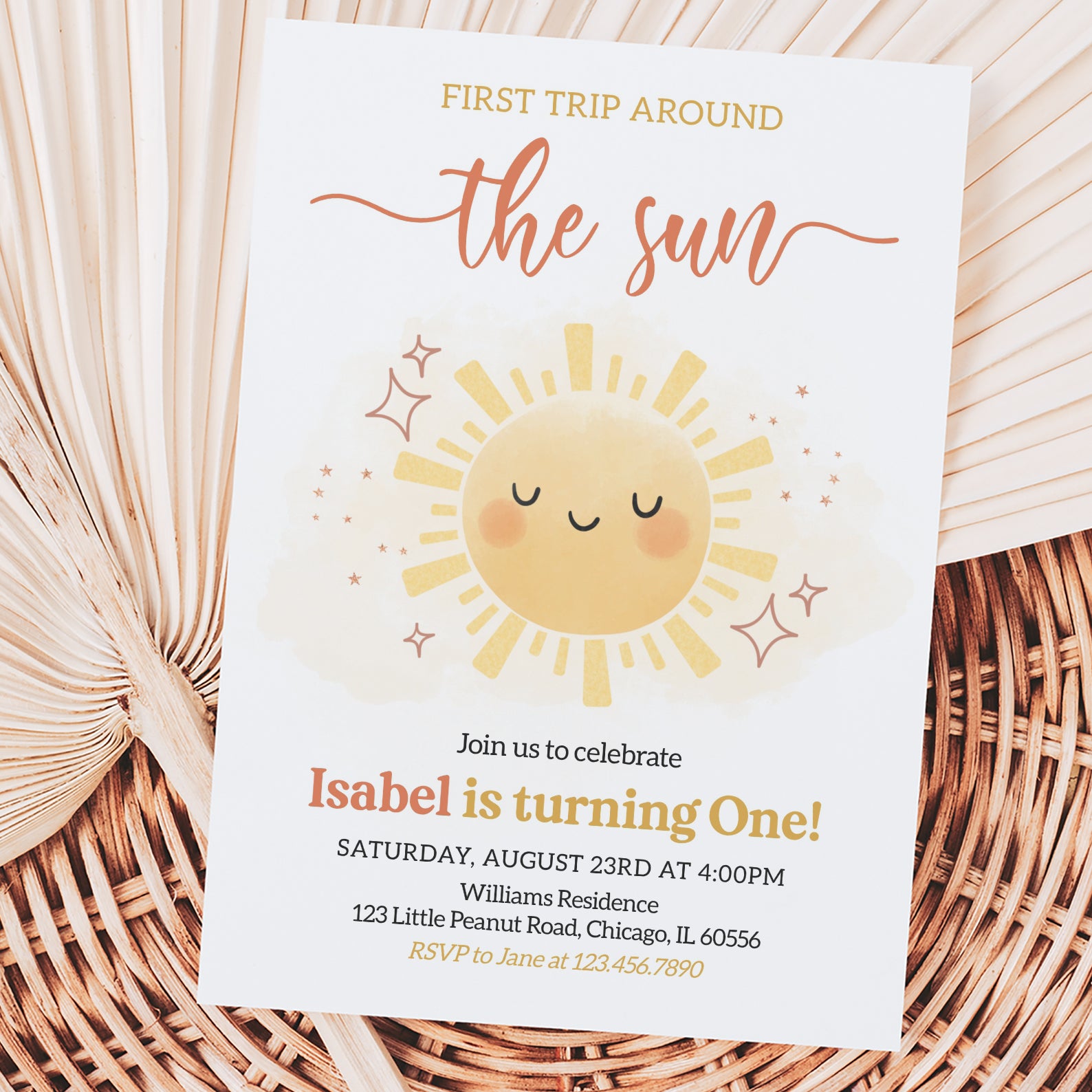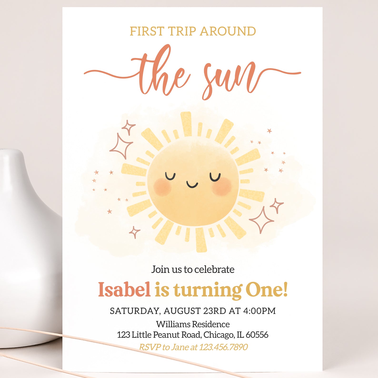 - Purchase this First Trip Around the Sun: Summer Birthday Digital Invitation template
