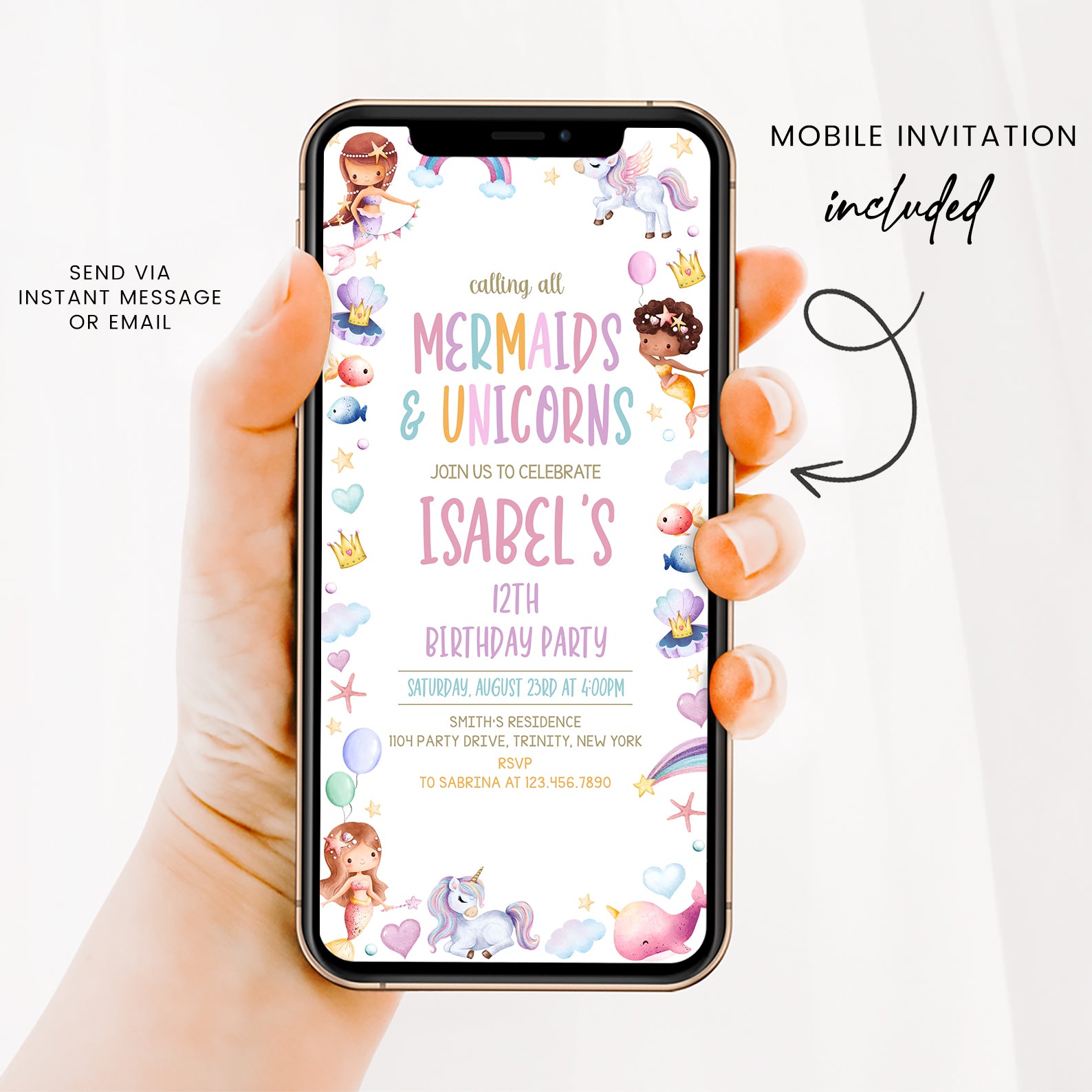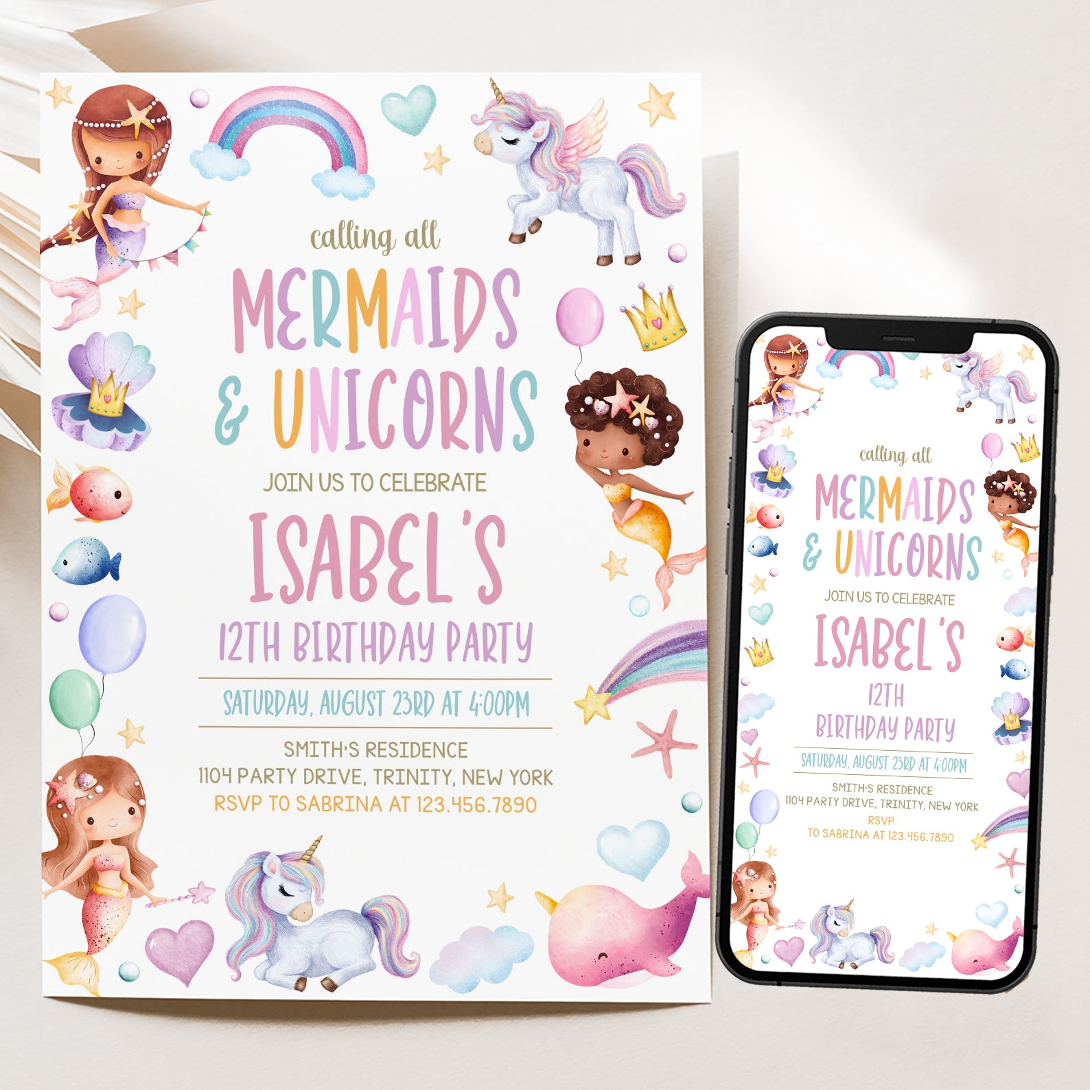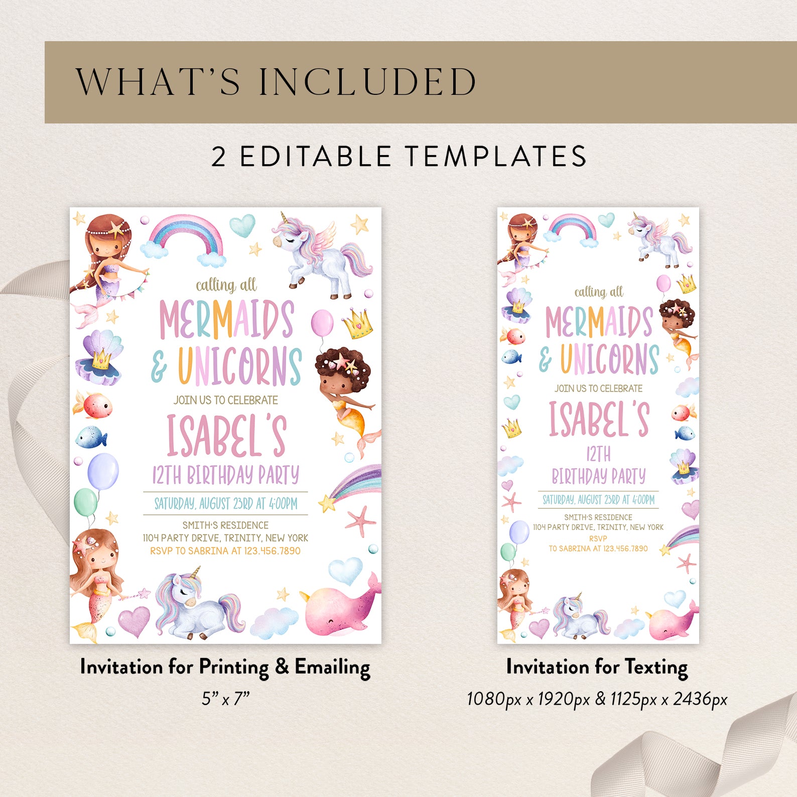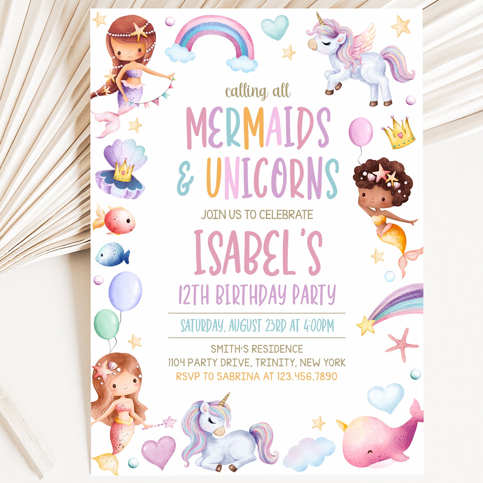 - Purchase this Magical Mermaid & Unicorn 12th Birthday Digital Invite template