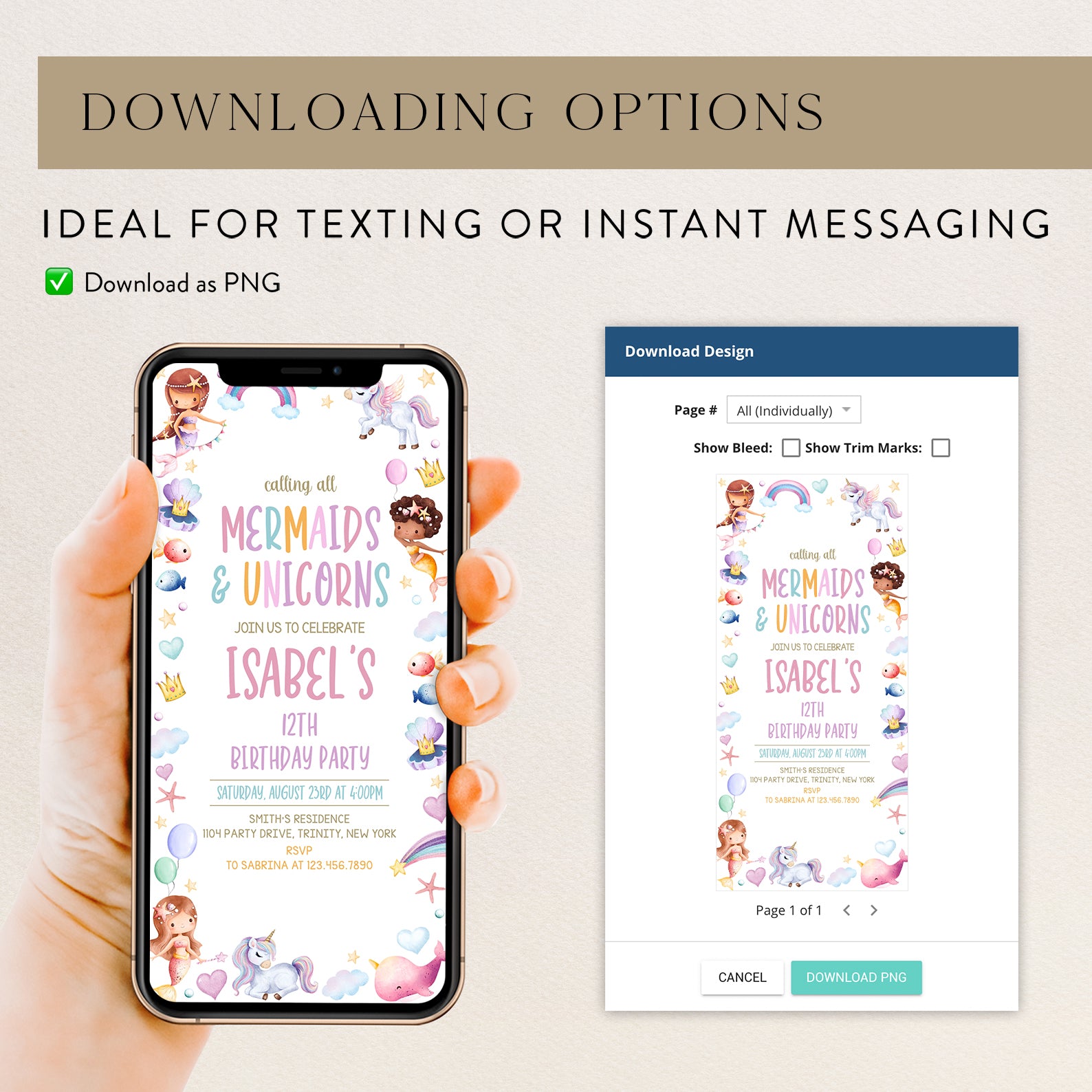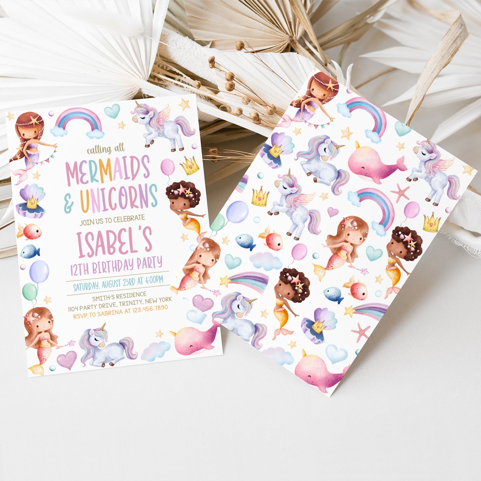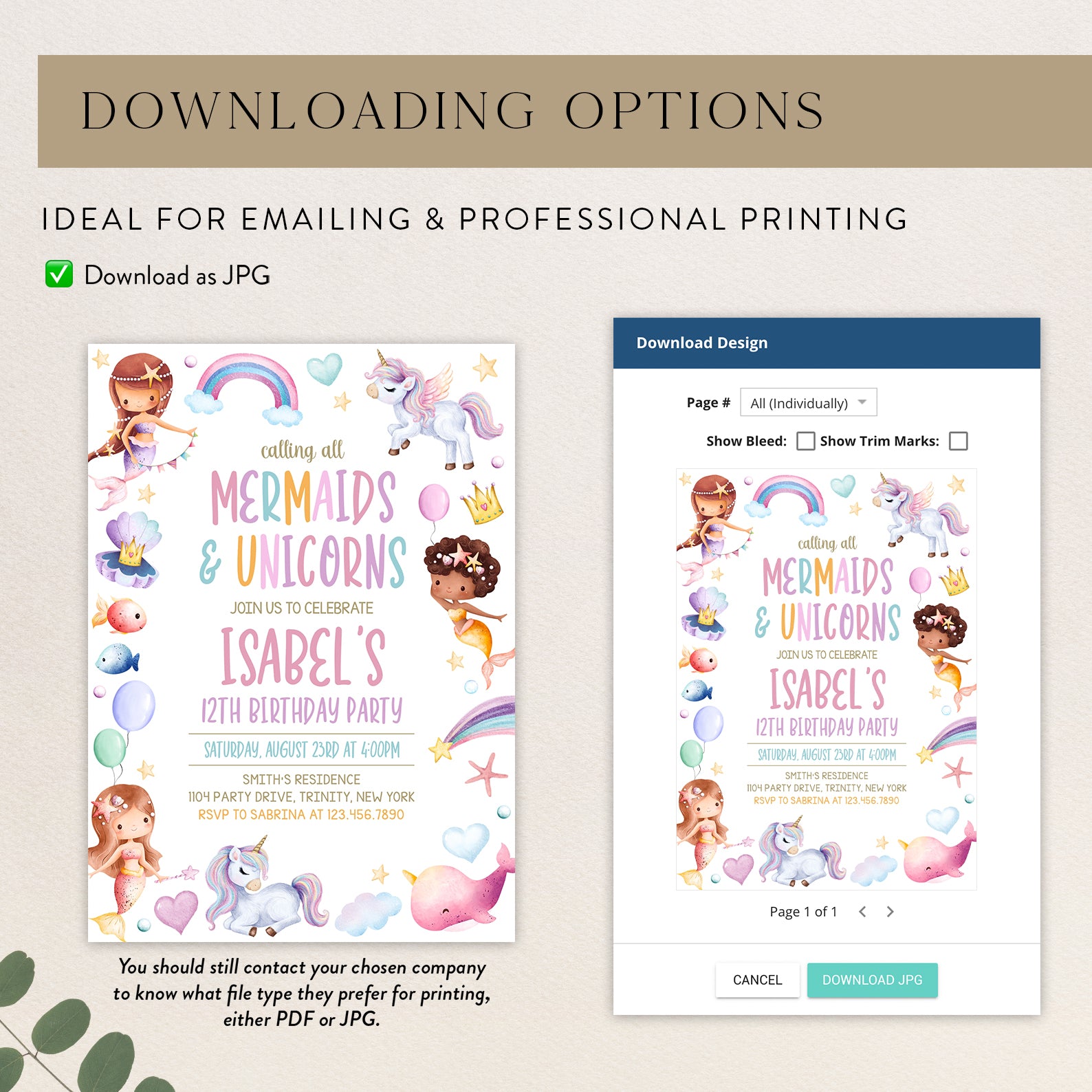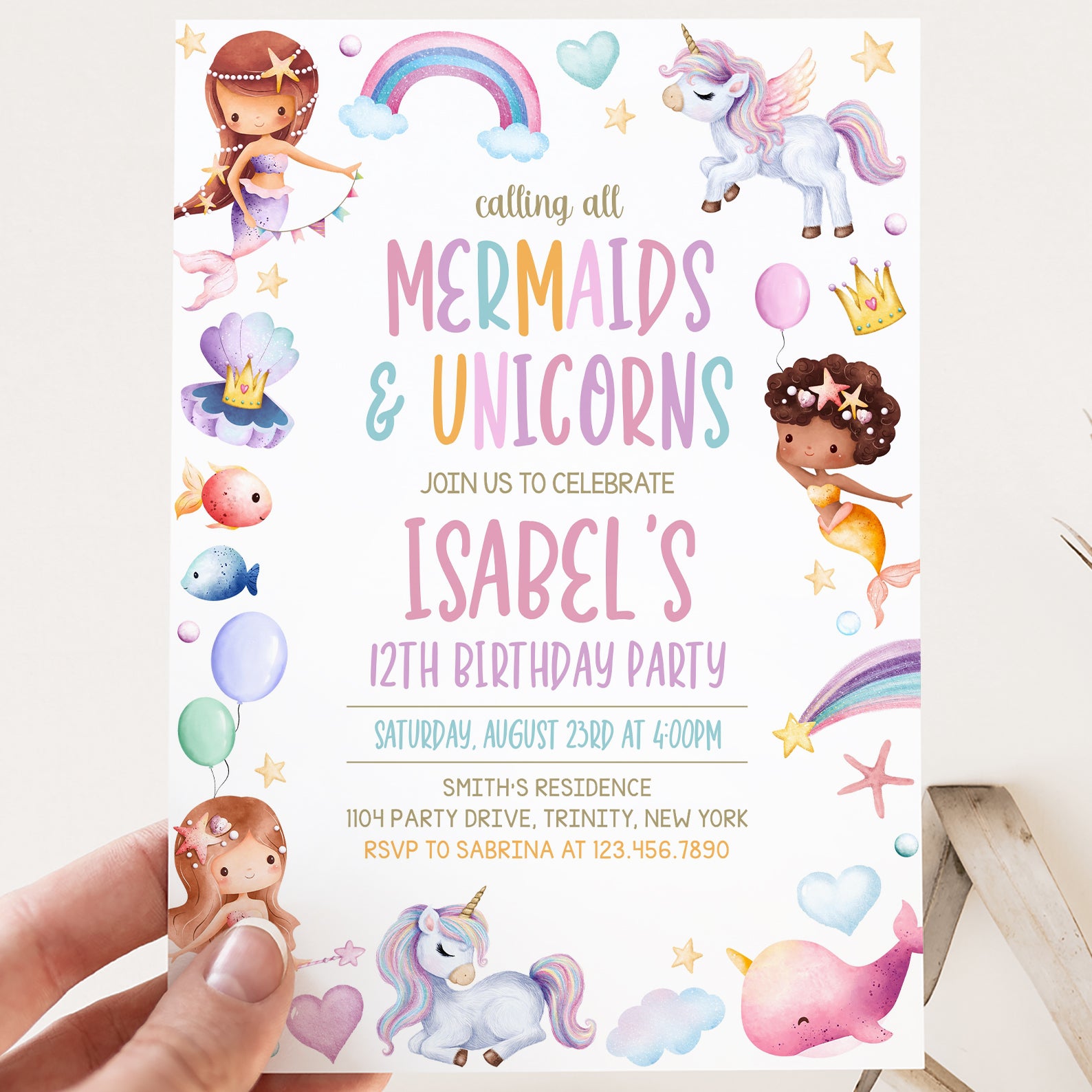 - Purchase this Magical Mermaid & Unicorn 12th Birthday Digital Invite template