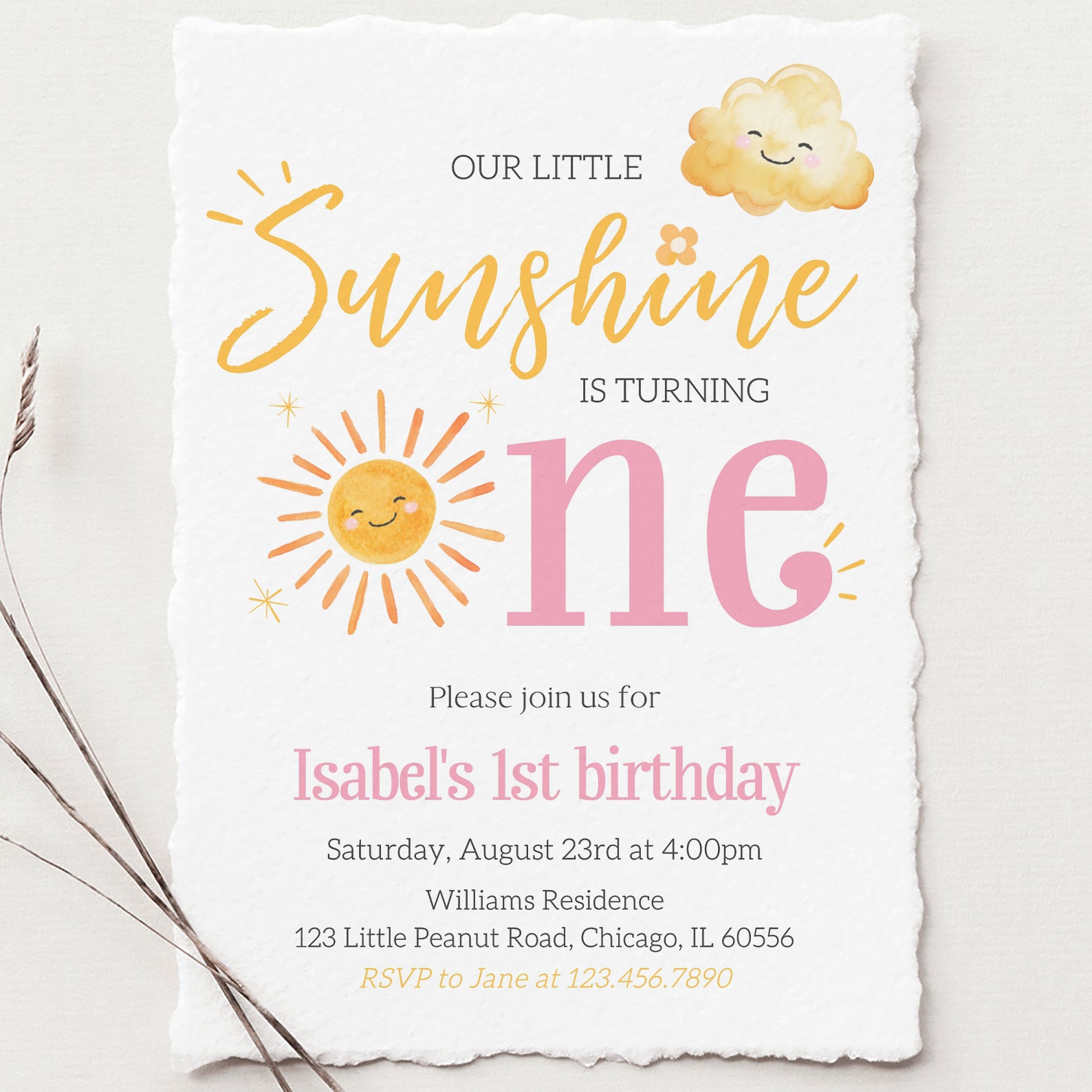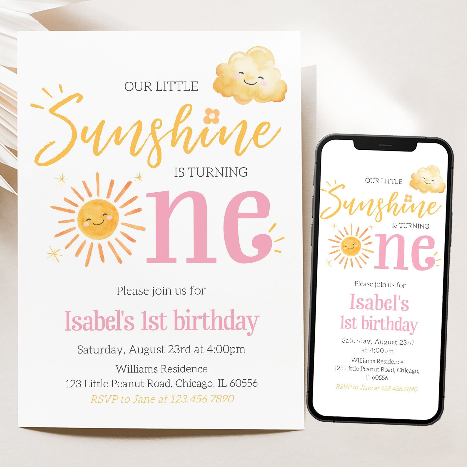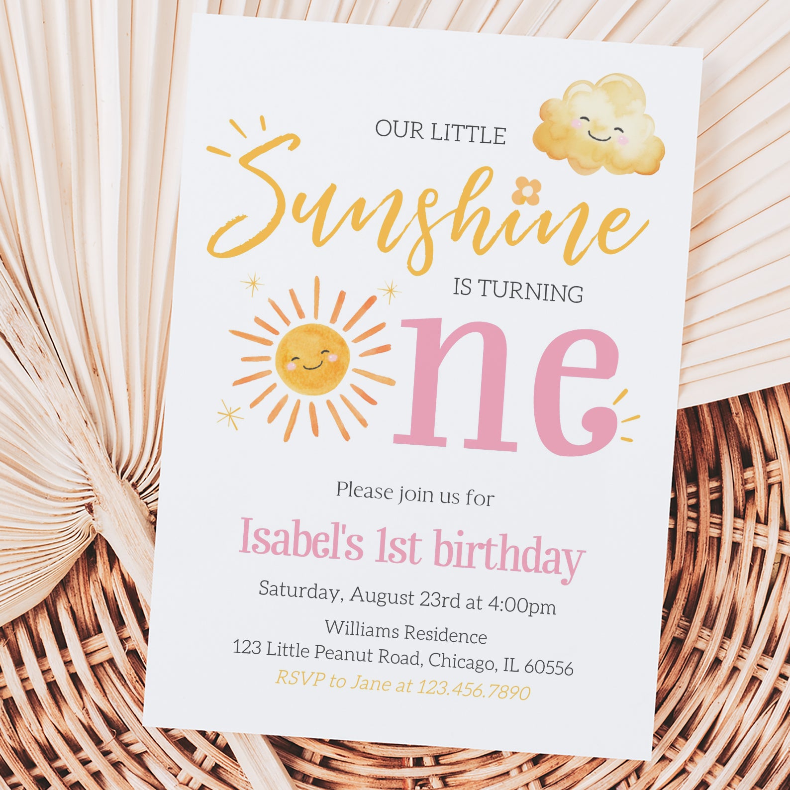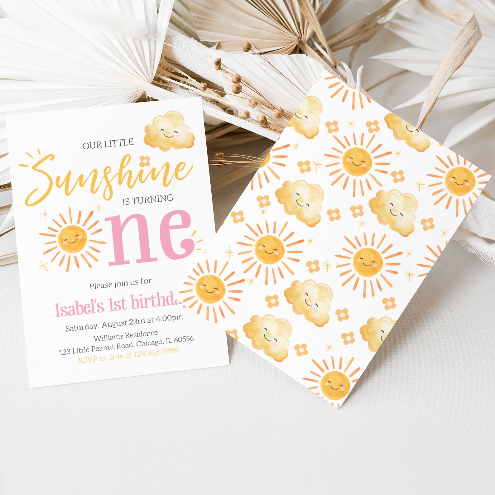 - Purchase this Our Little Sunshine Is One: Summer Birthday Digital Invitation template