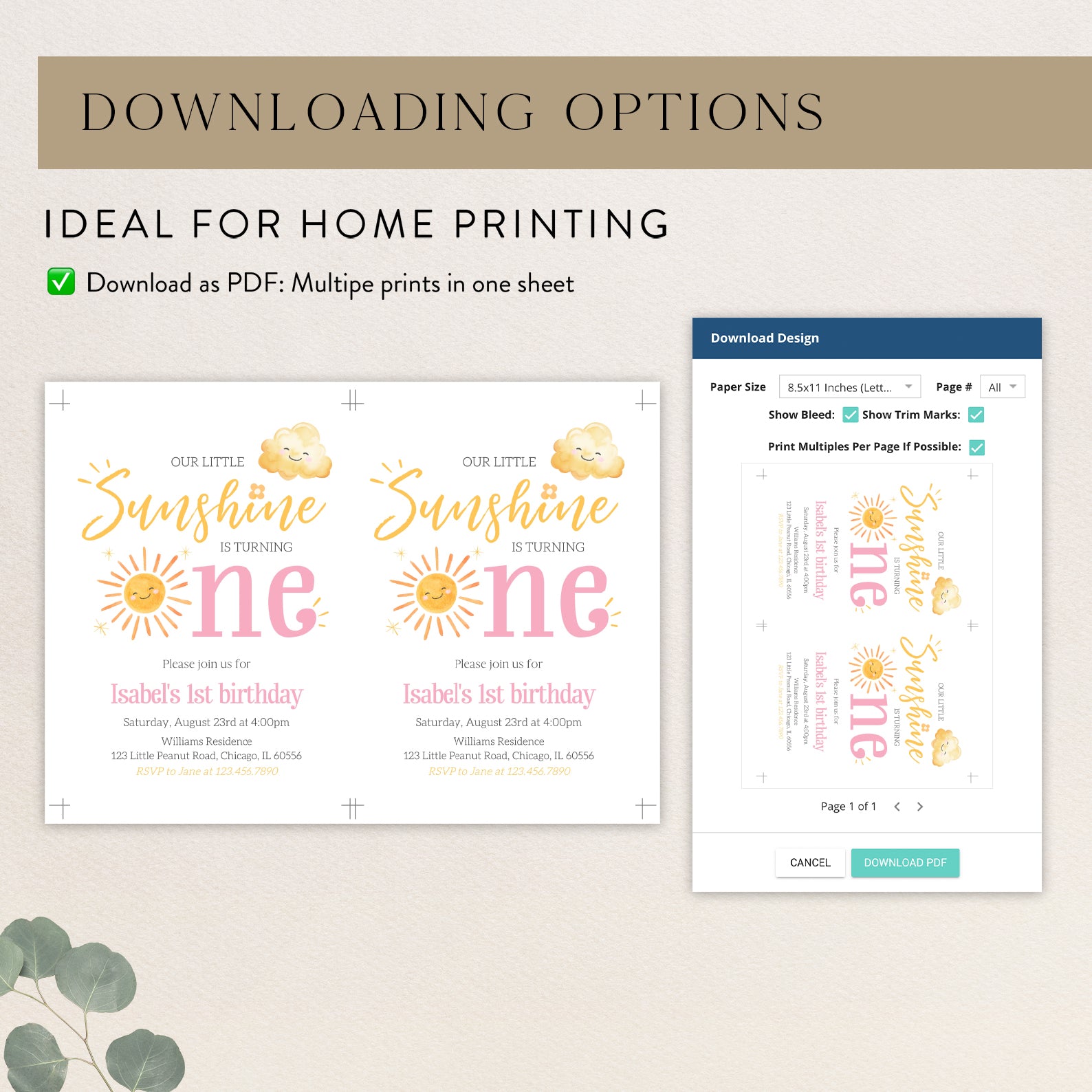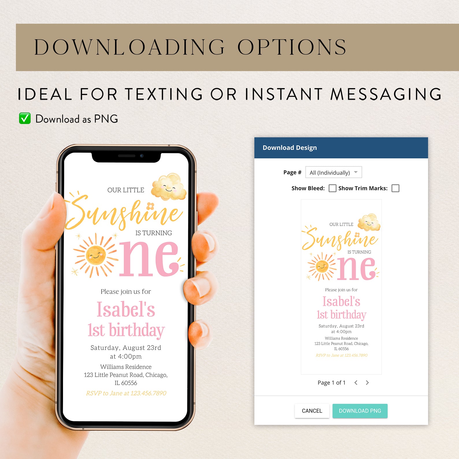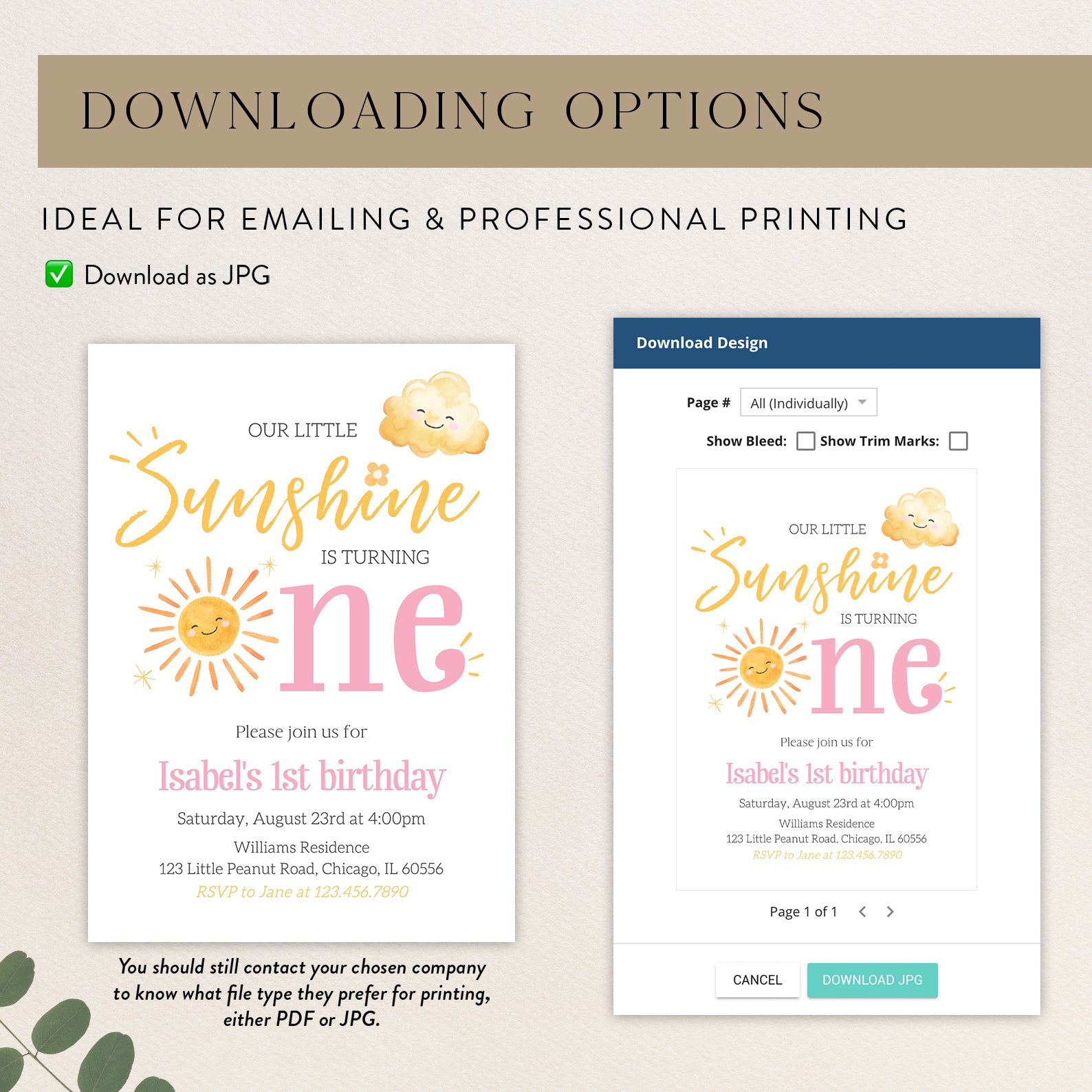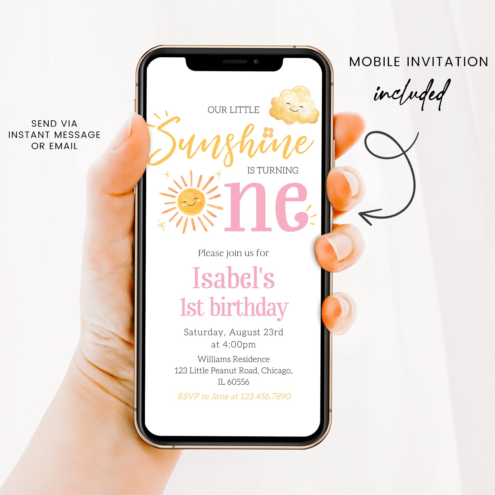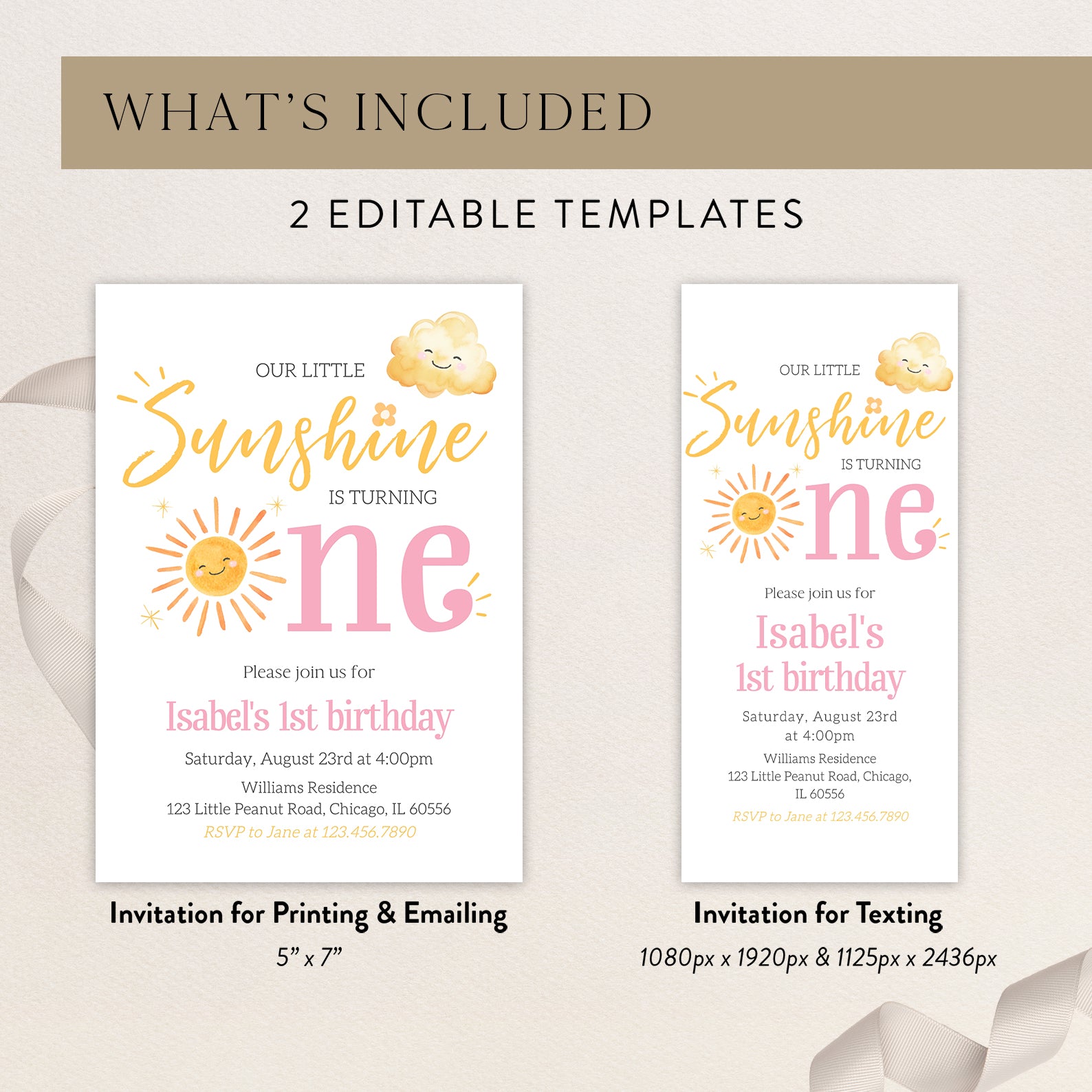- Purchase this Our Little Sunshine Is One: Summer Birthday Digital Invitation template