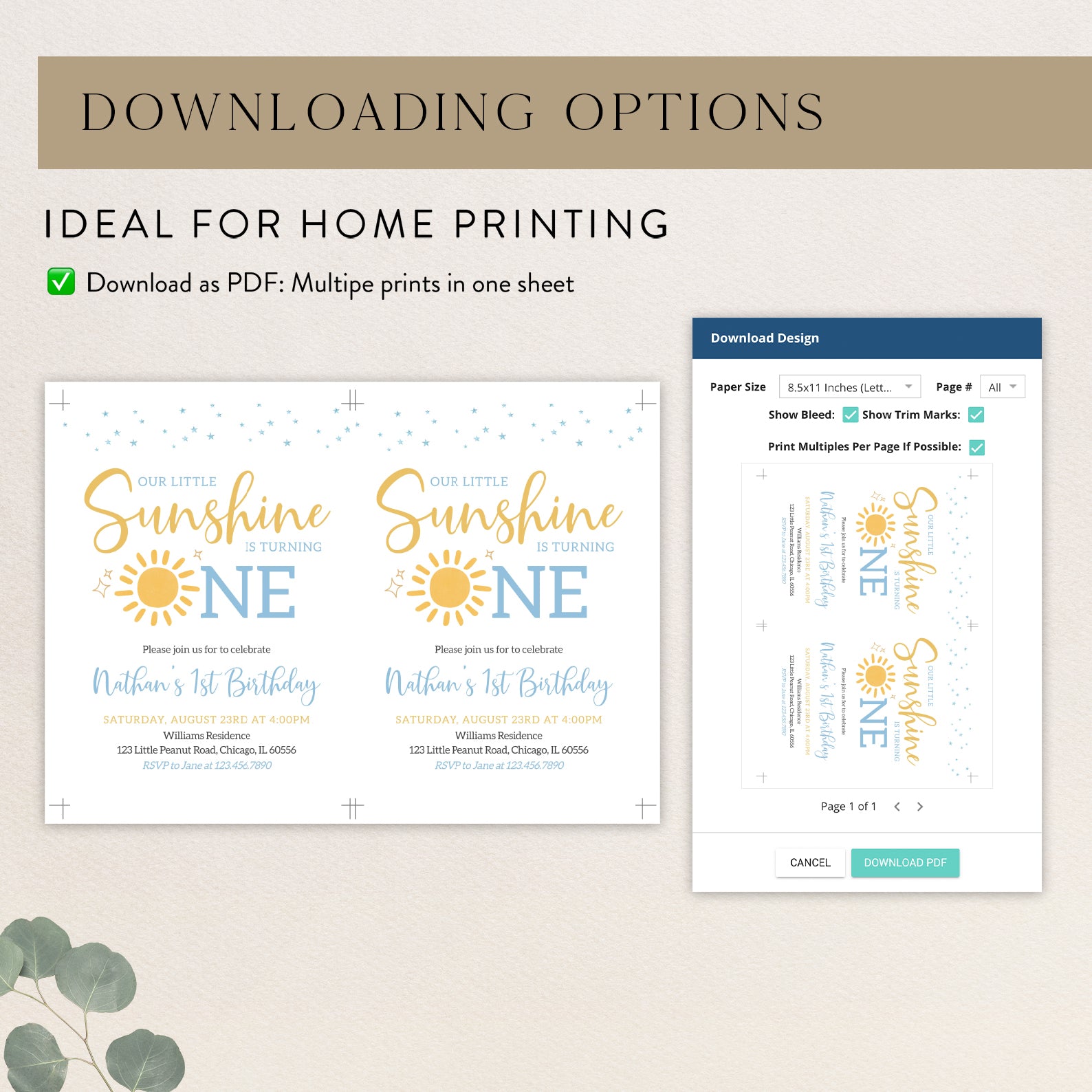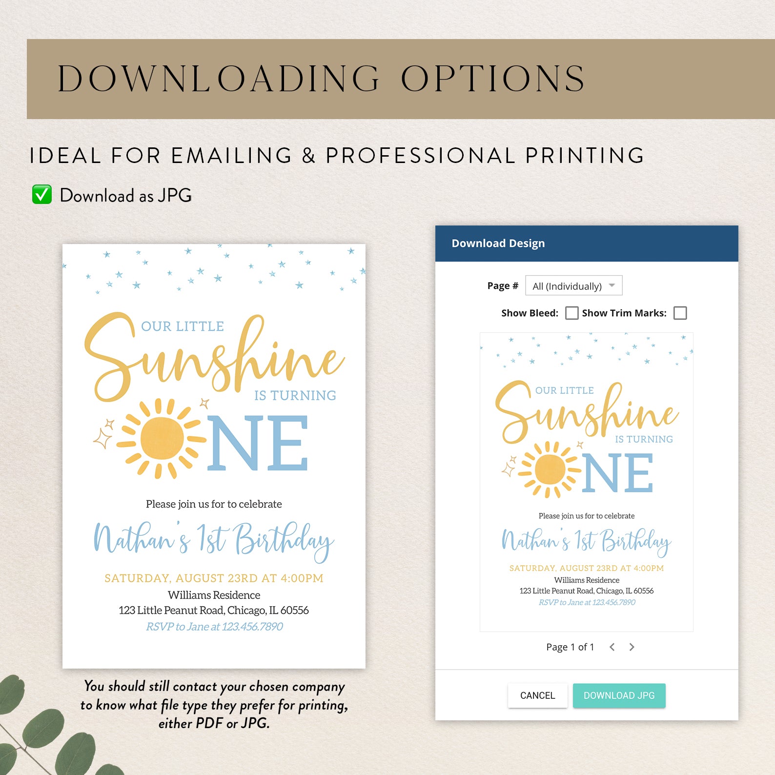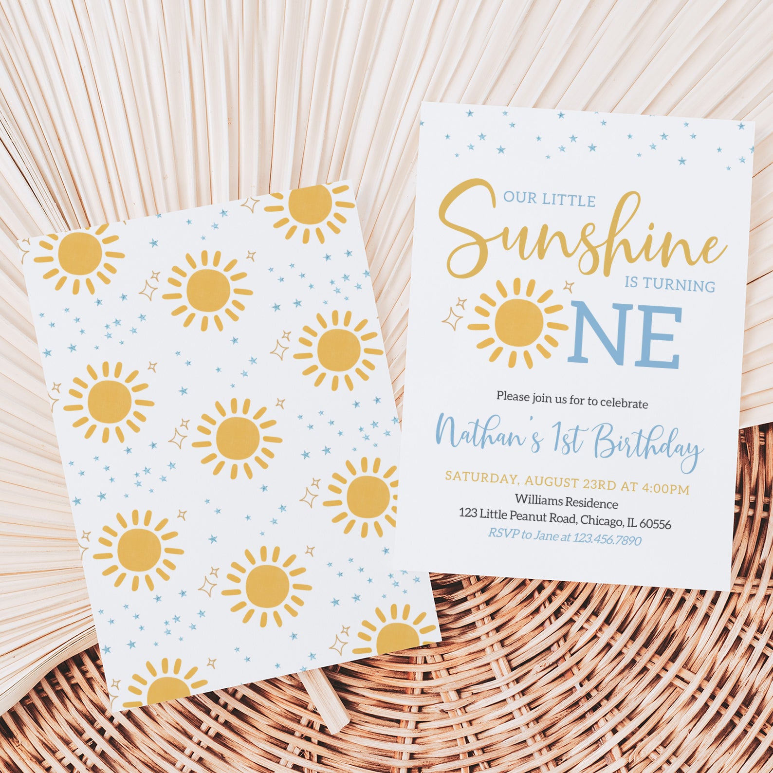 - Purchase this Our Little Sunshine Turns One: Summer Birthday Digital Invite template