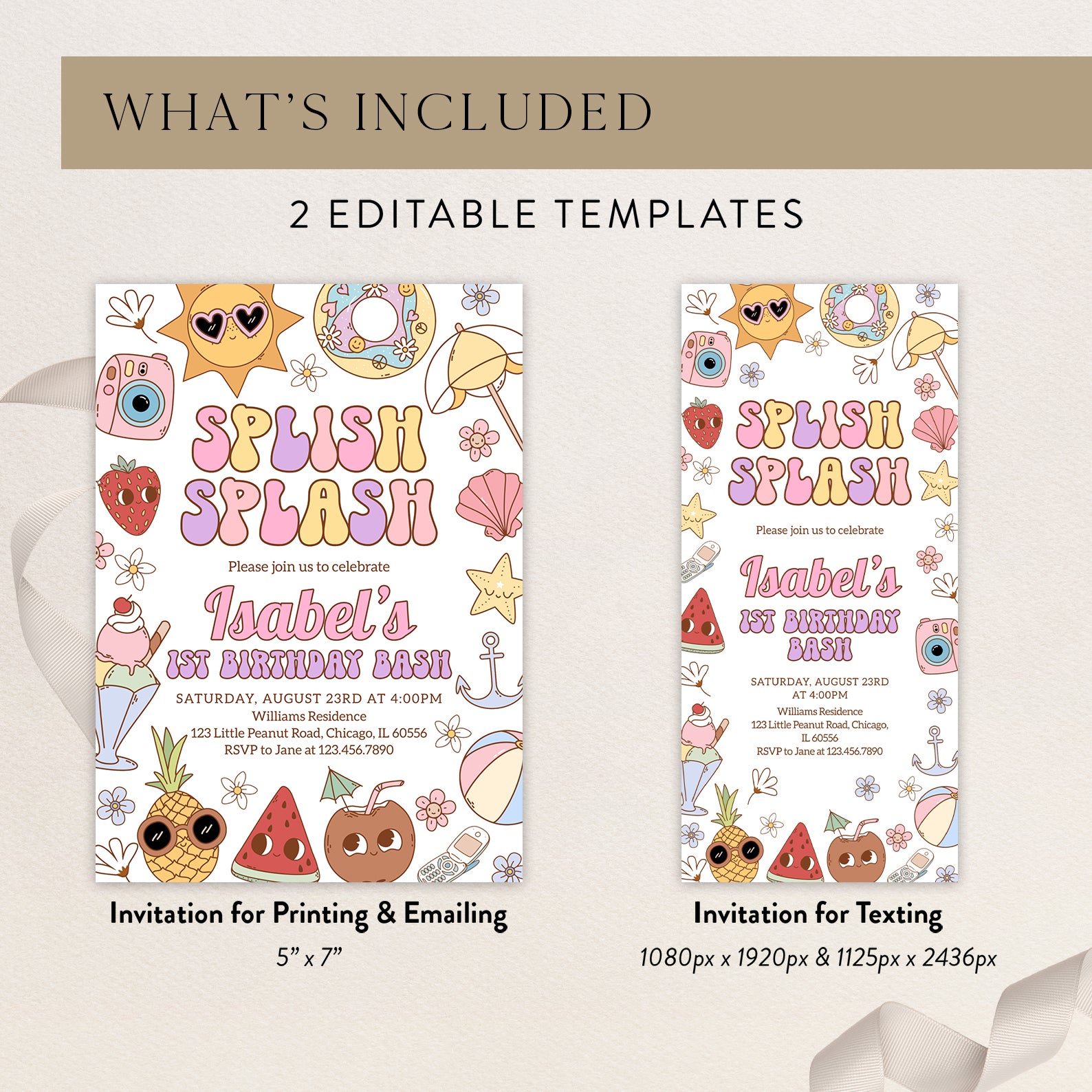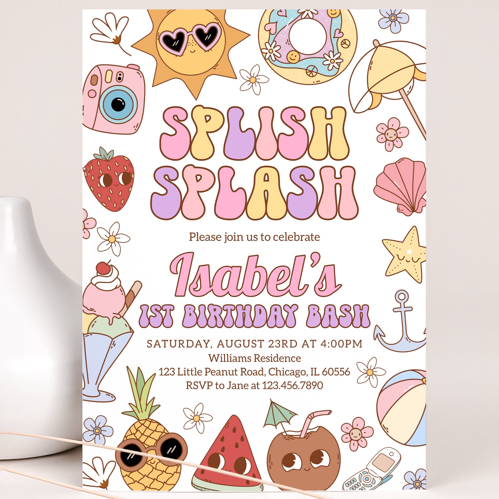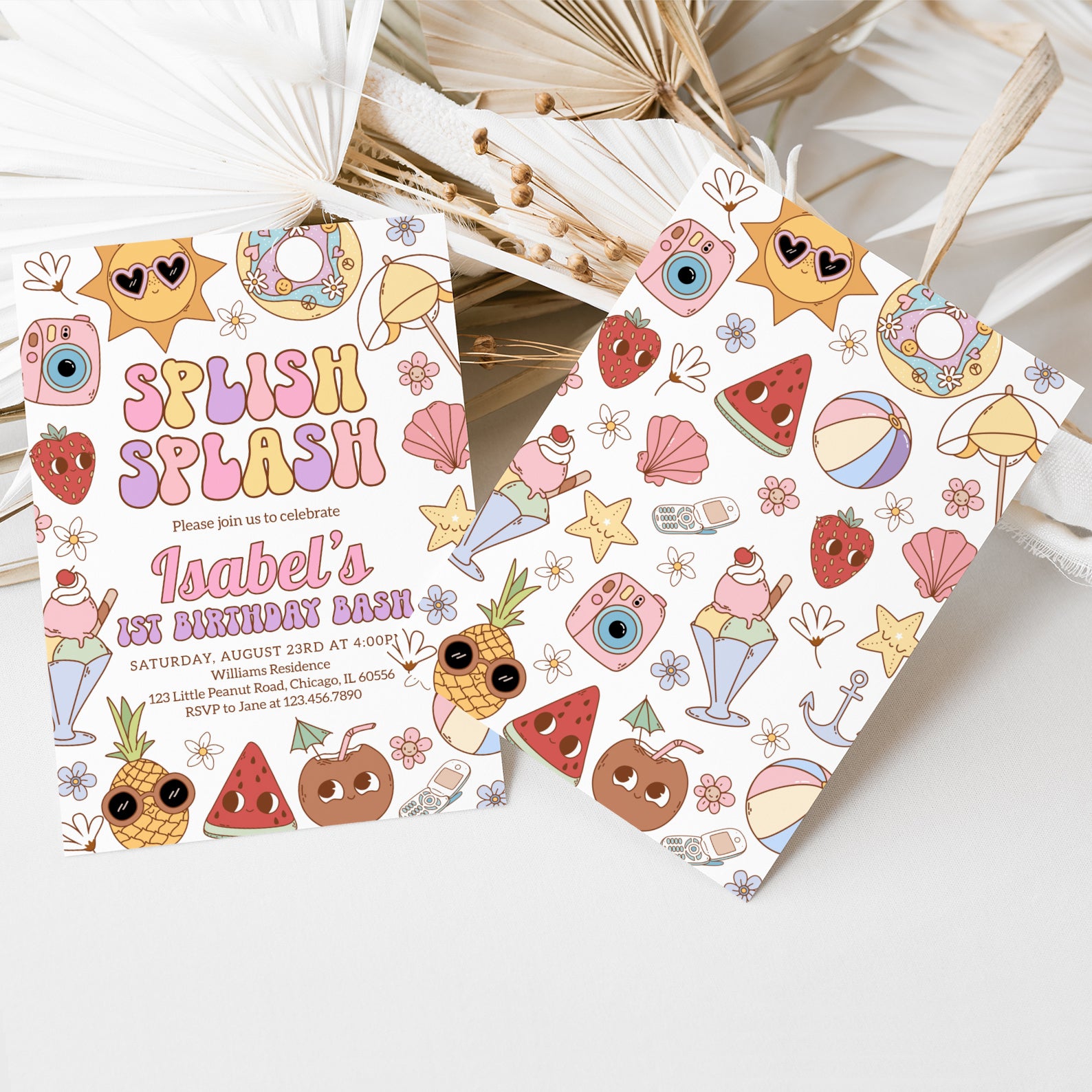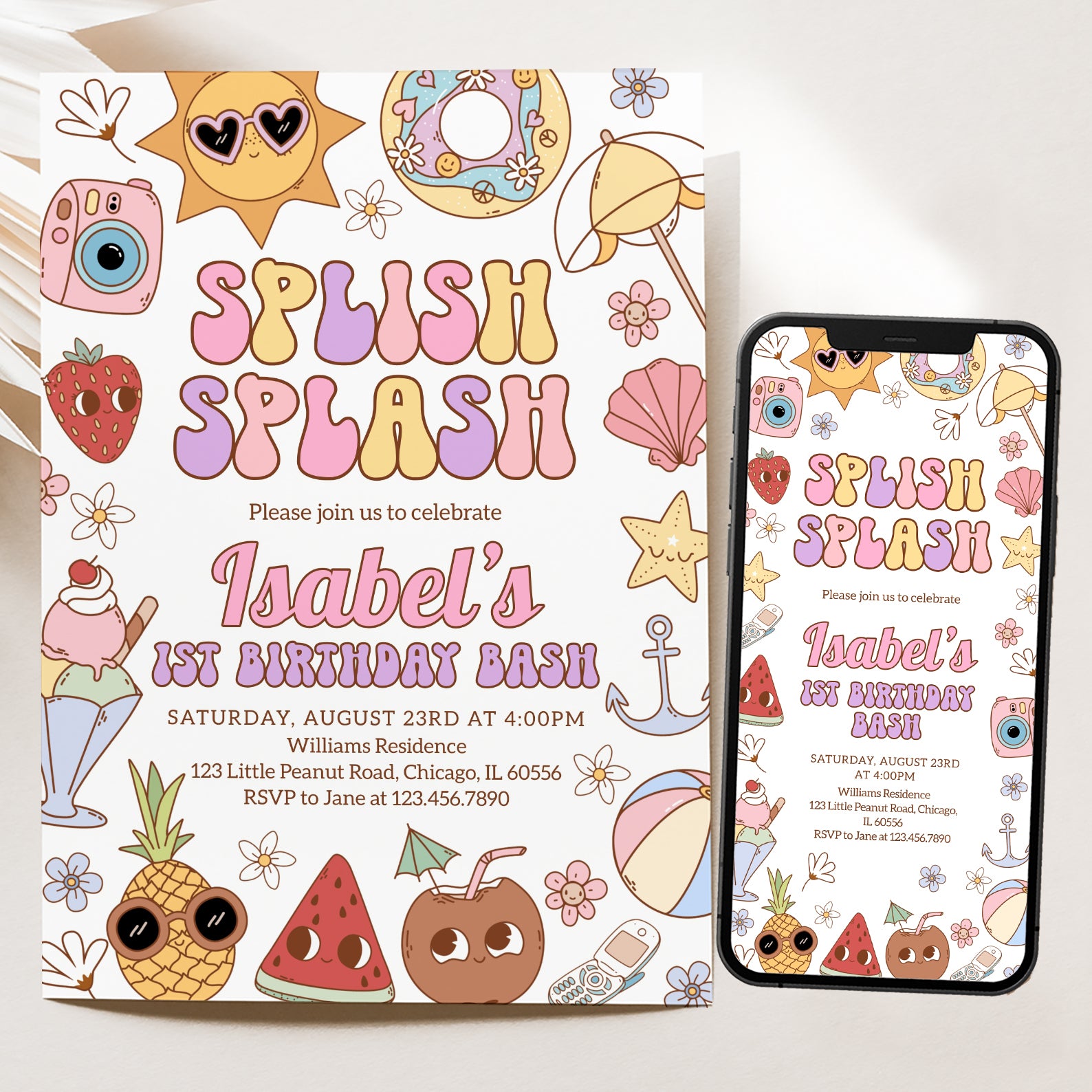 - Purchase this Splish Splash Summer 1st Birthday Digital Invitation template
