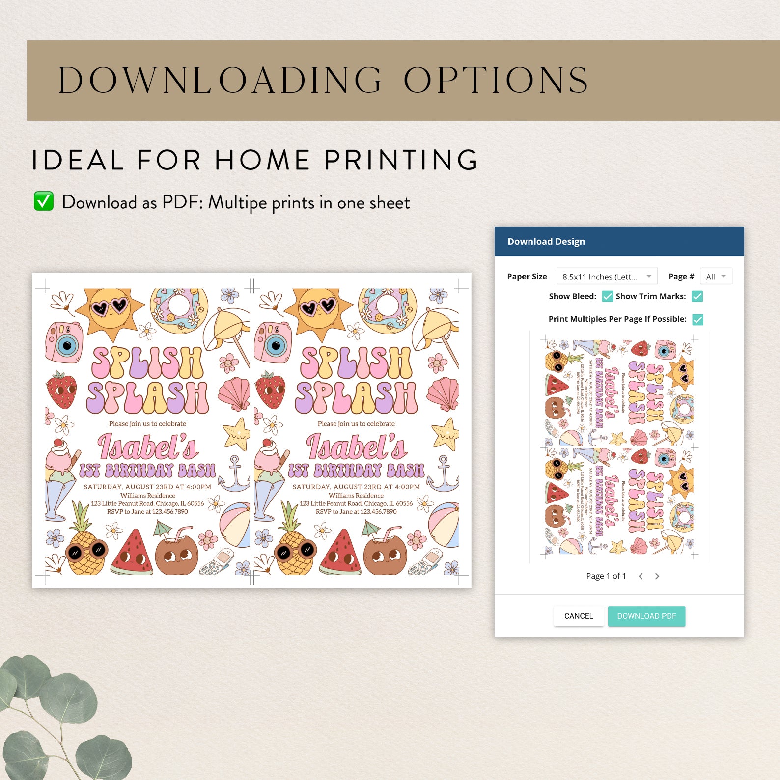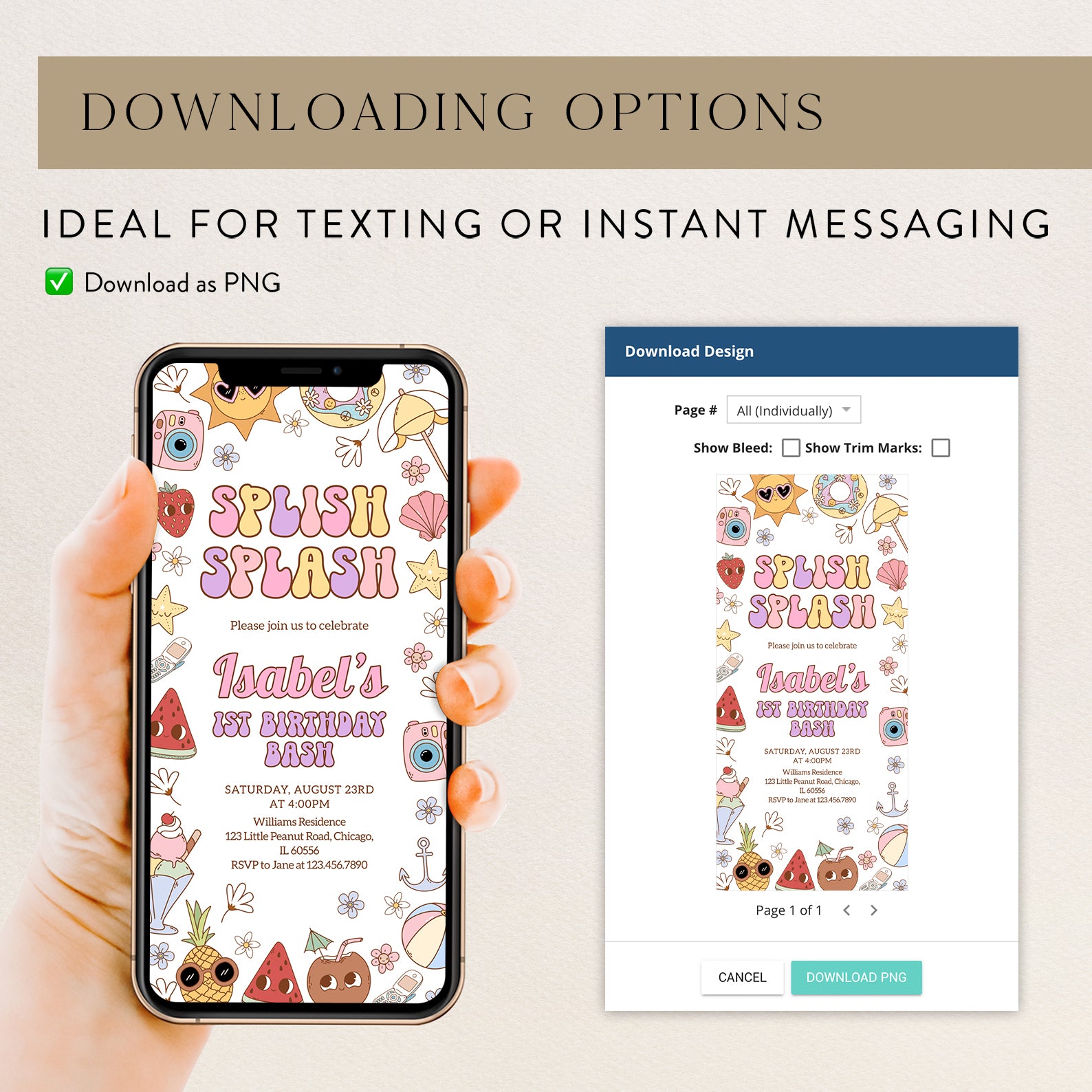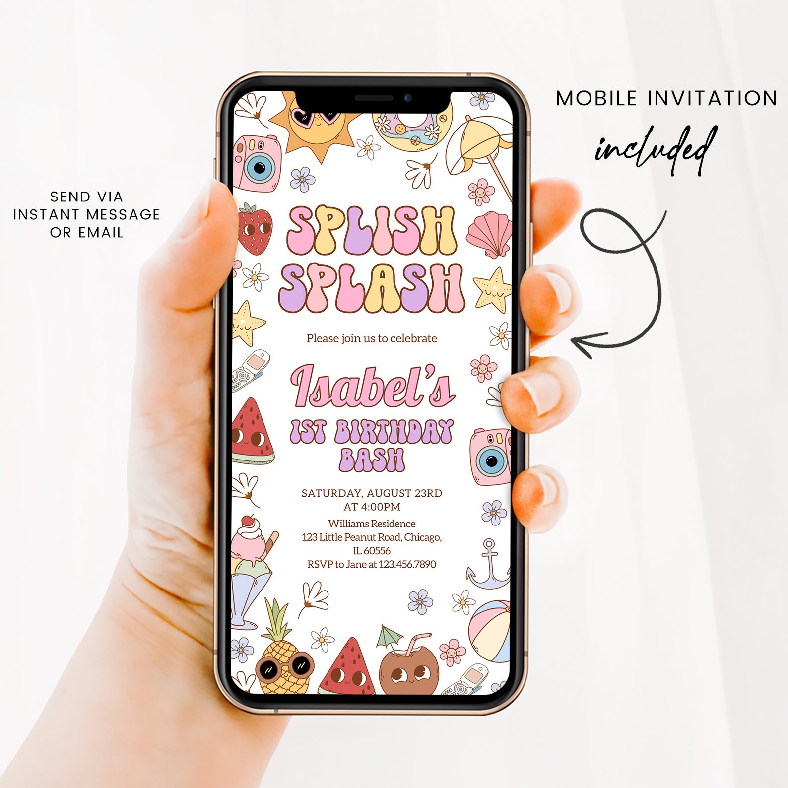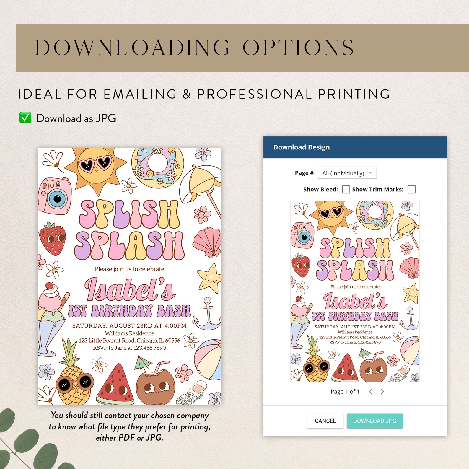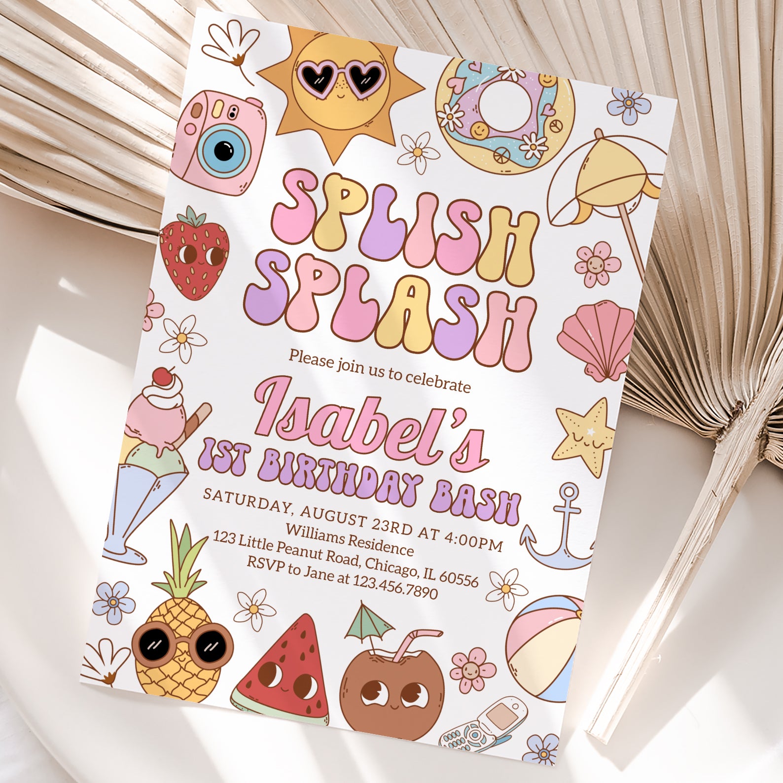 - Purchase this Splish Splash Summer 1st Birthday Digital Invitation template