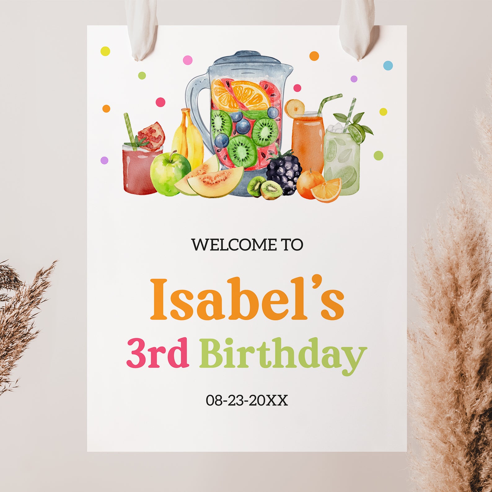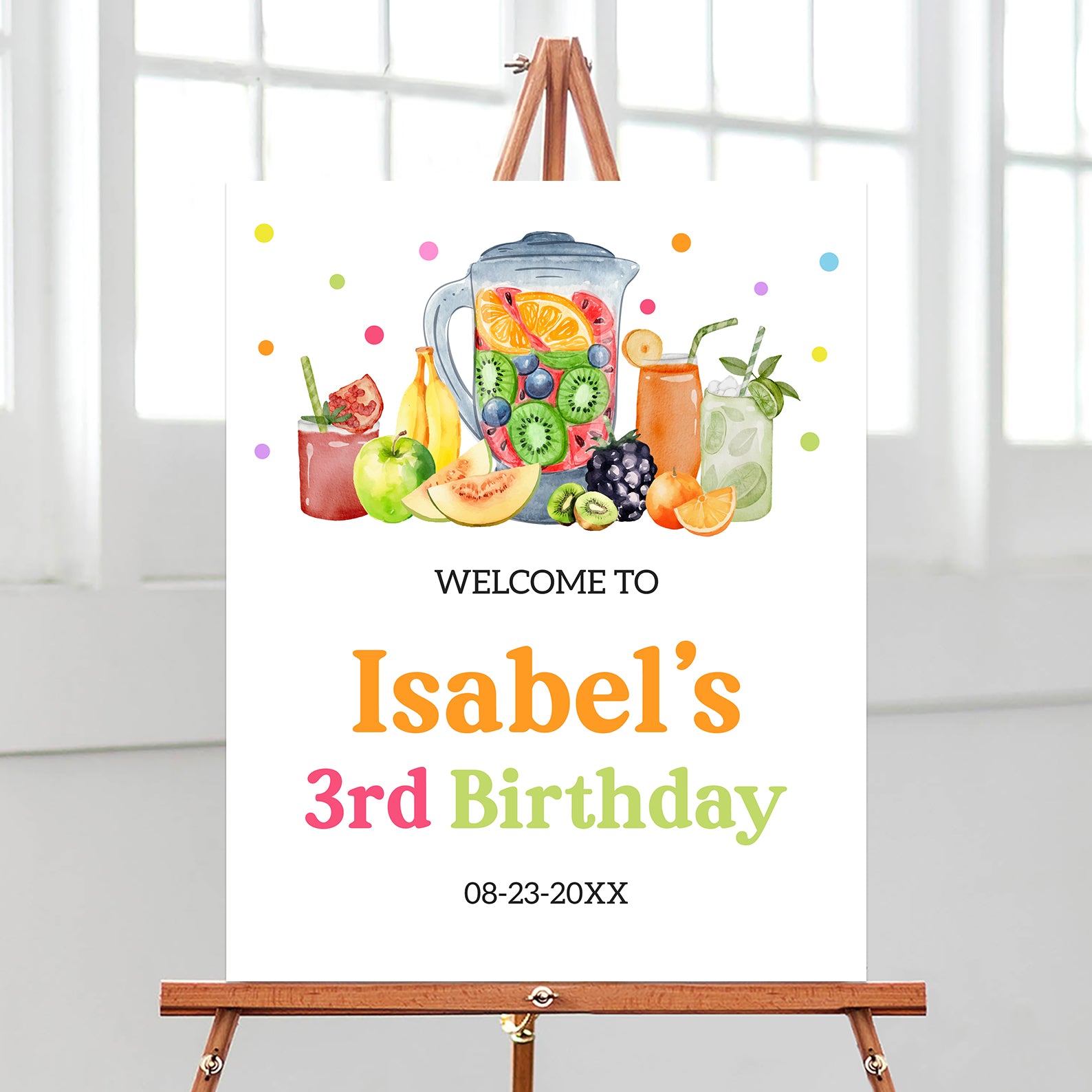 - Purchase this Fruity 3rd Birthday Digital Welcome Sign: Summer Fruit Theme template