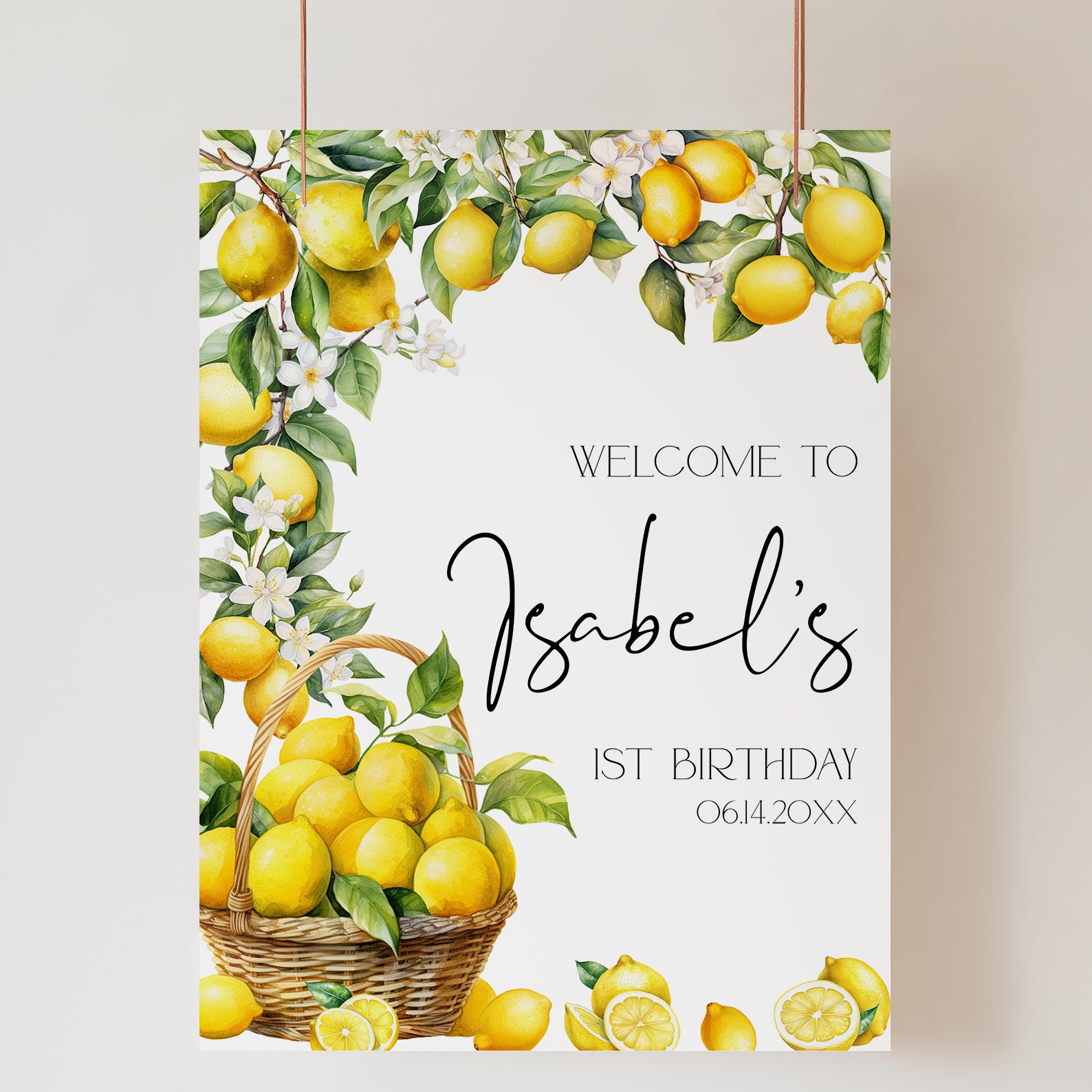 - Purchase this Main Squeeze 1st Birthday Lemon Digital Welcome Sign template