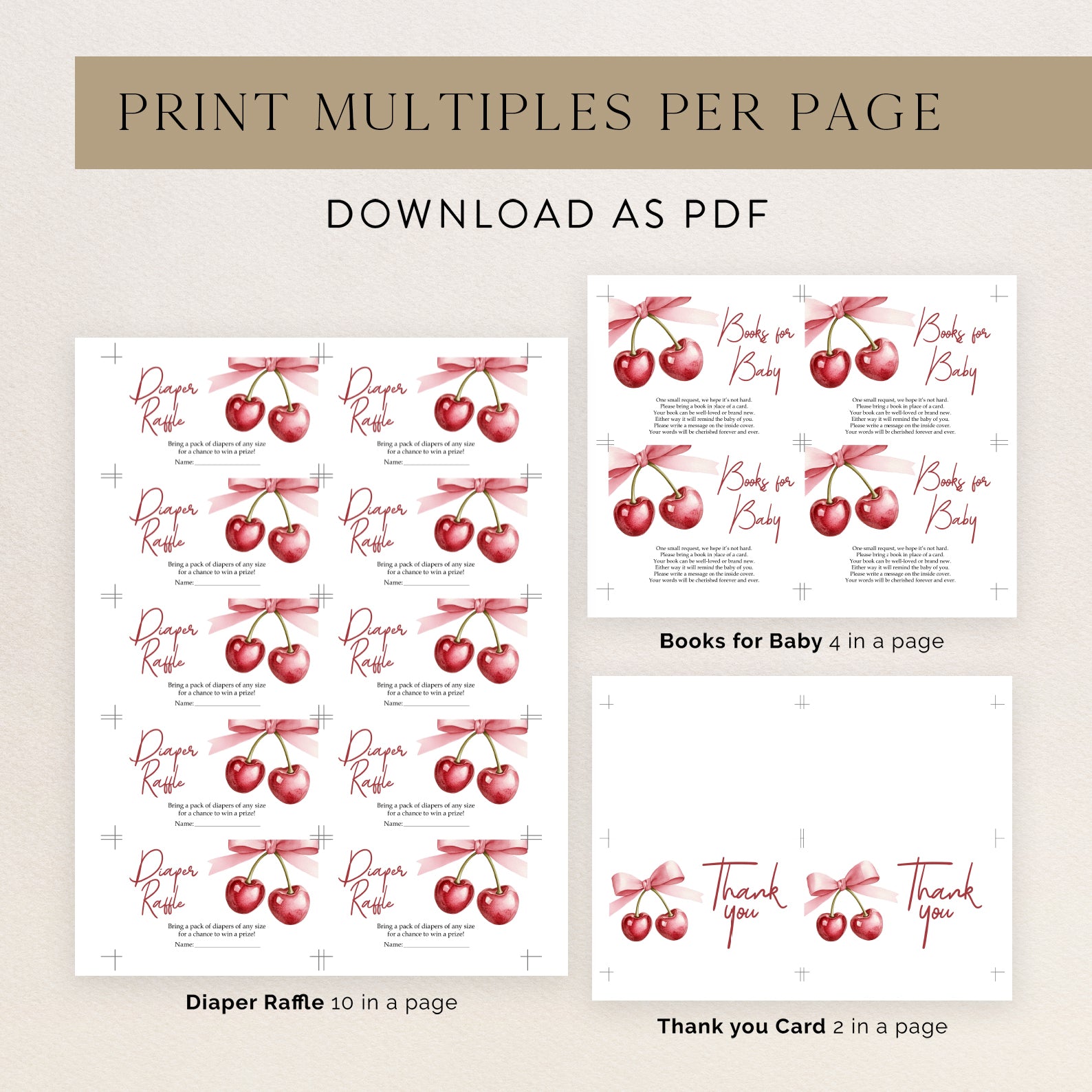 Celebrate your baby on the way with our Cherry on Top Invitation Bundle! Featuring a vibrant red design with a sweet cherry and pink ribbon, this set includes an invitation, mobile invite, diaper raffle, books for baby, and thank you card. Easy to customize and perfect for a fun, summer baby shower!
