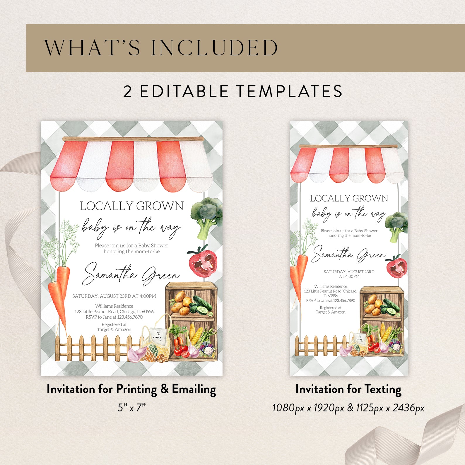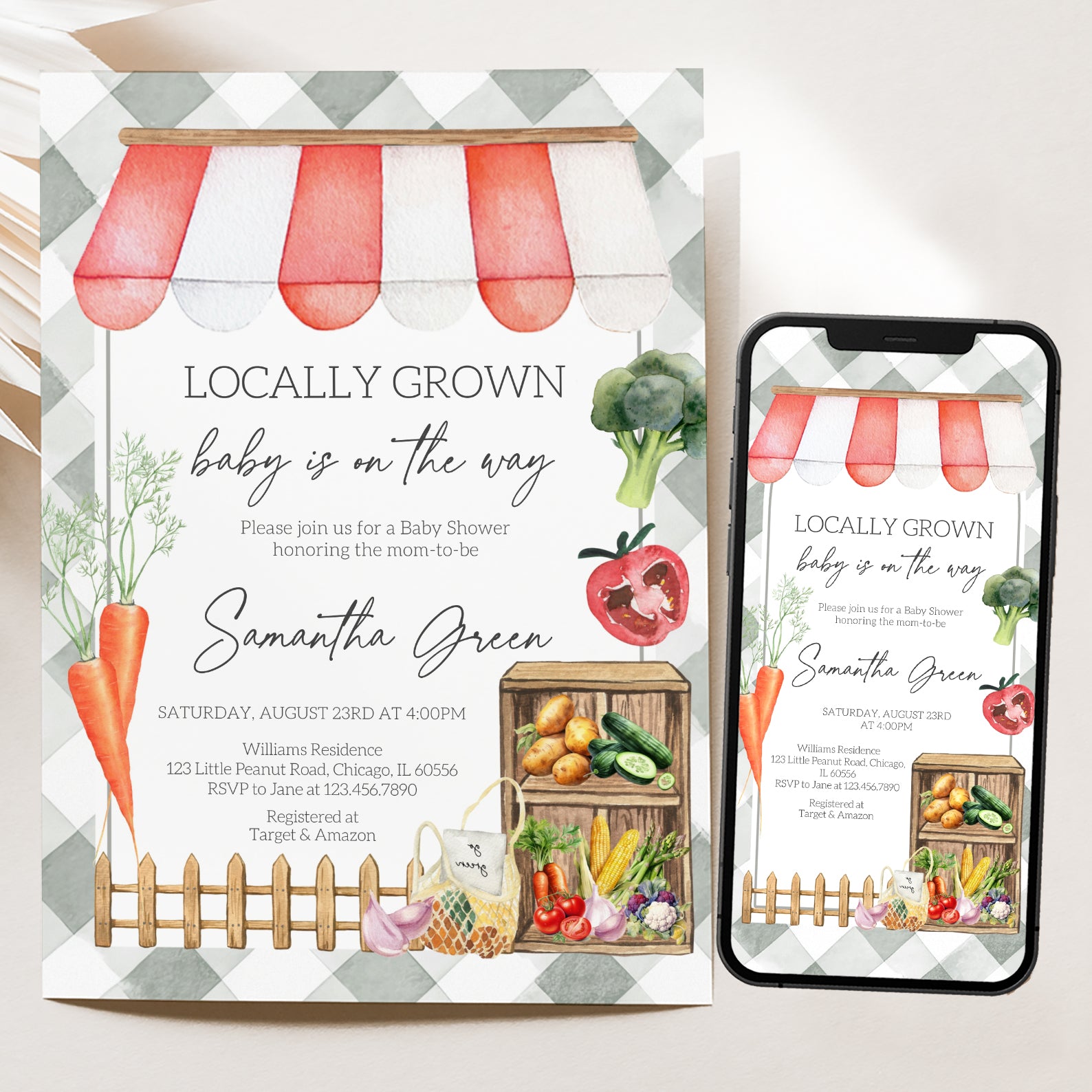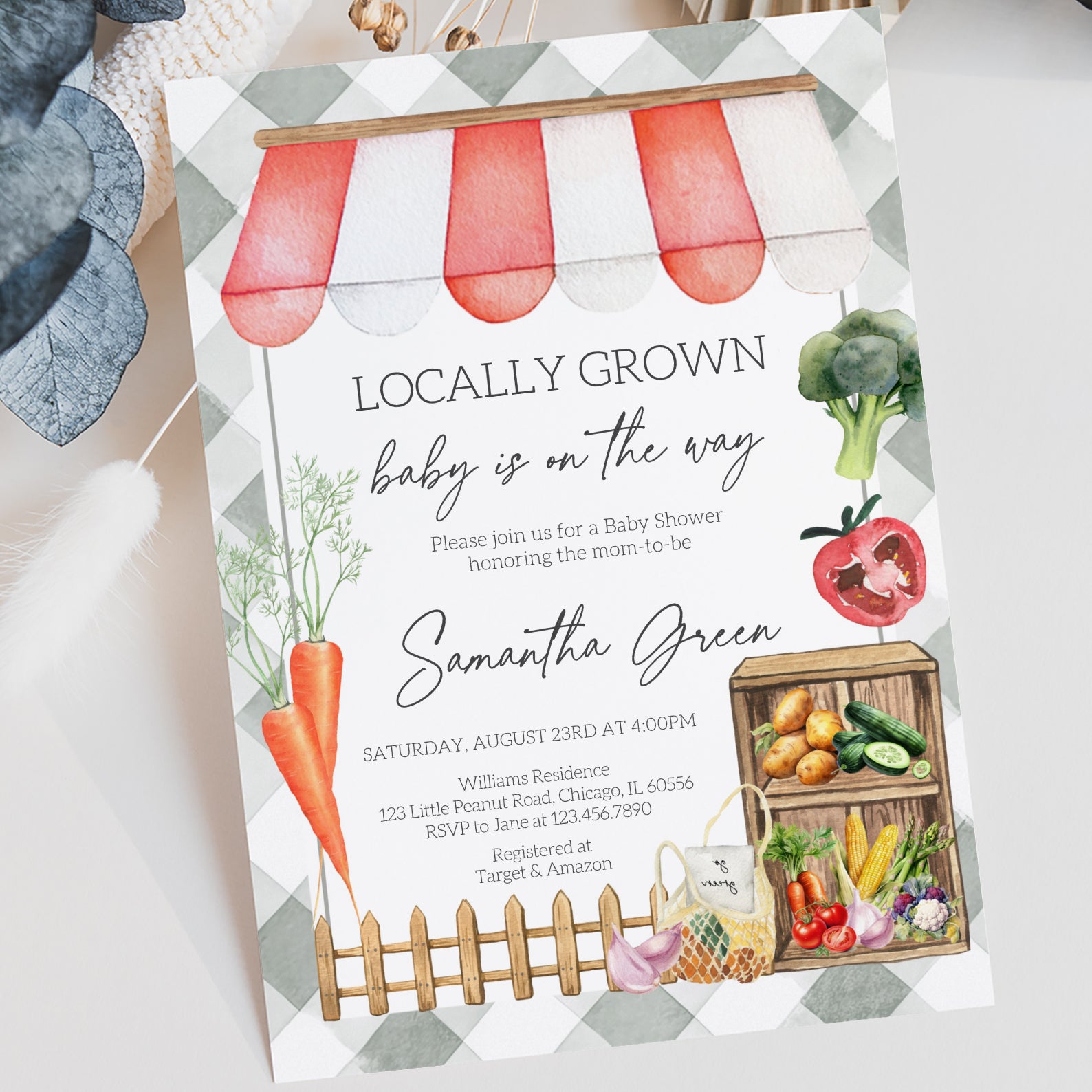 - Purchase this Farm Fresh Baby Shower Digital Invite Bundle, Plaid & Veggie Theme template