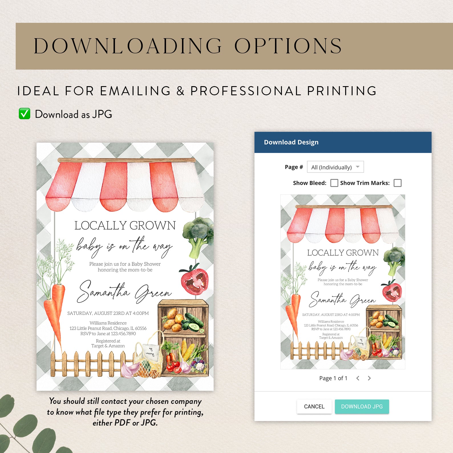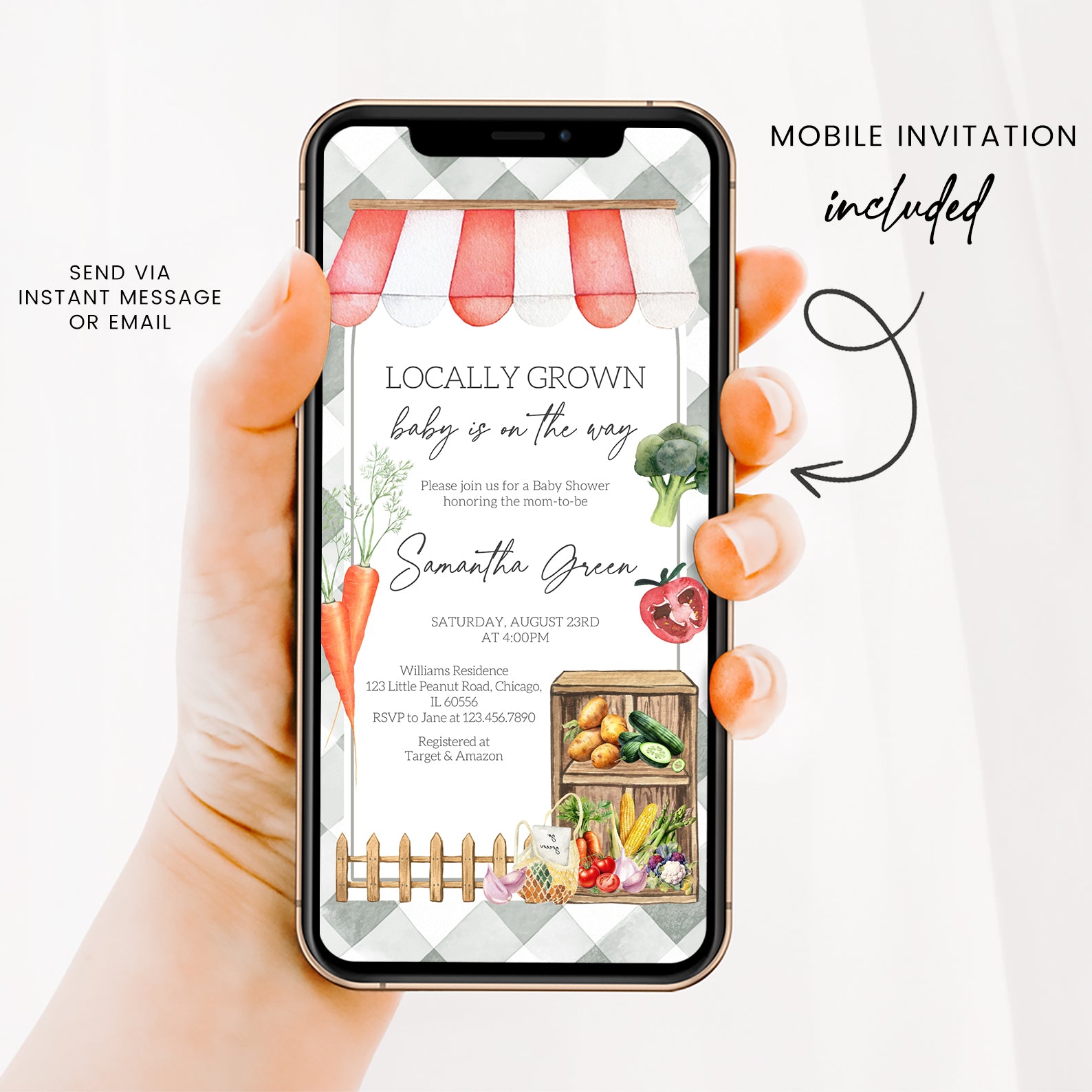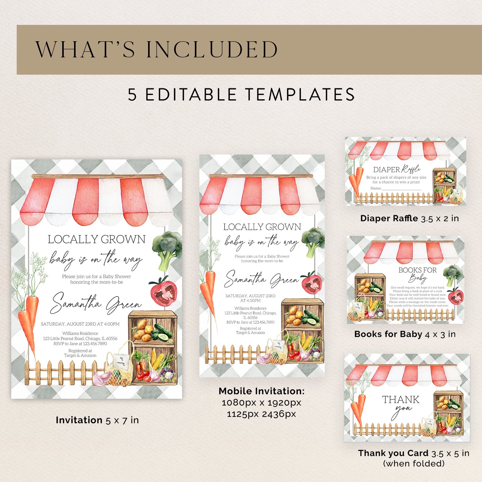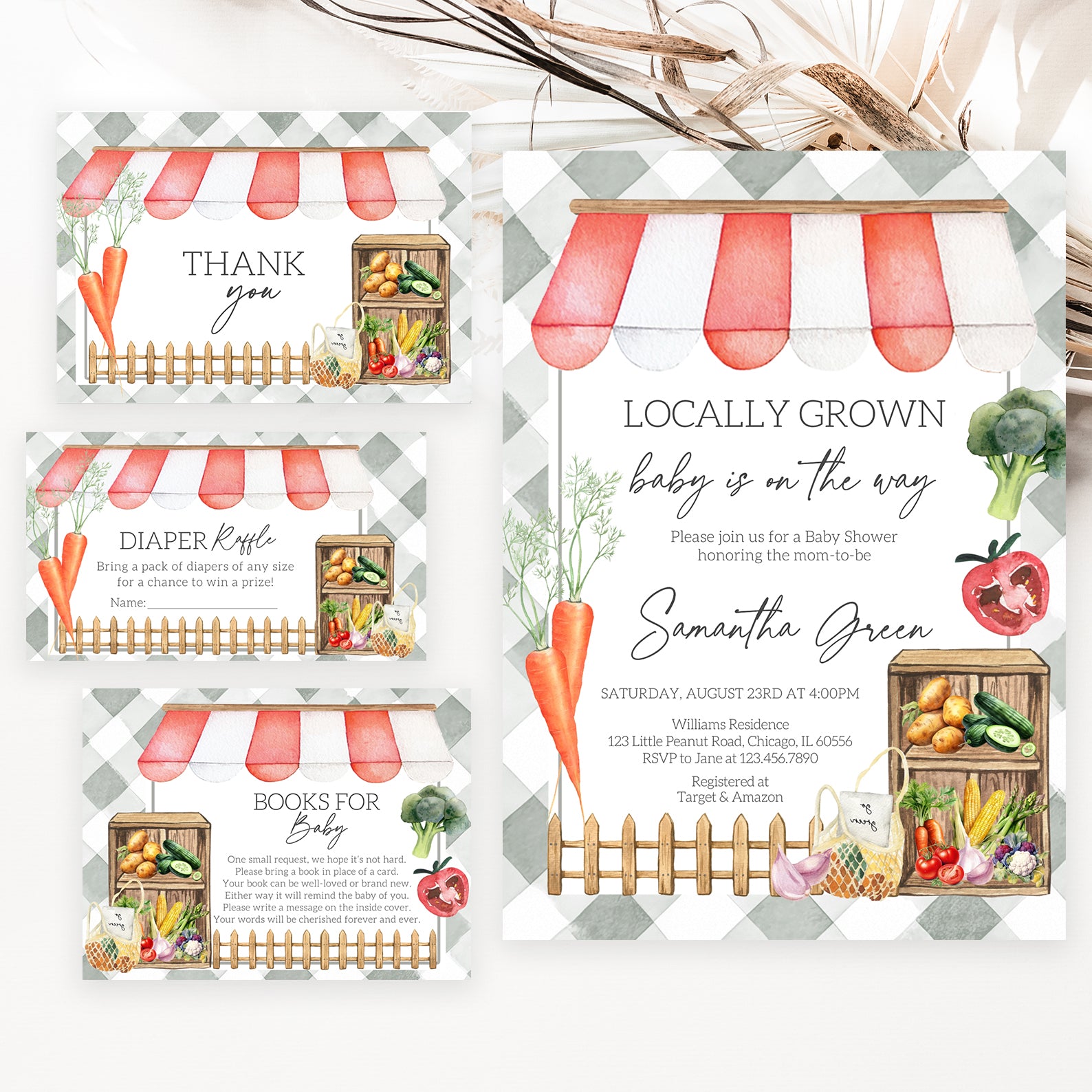 - Purchase this Farm Fresh Baby Shower Digital Invite Bundle, Plaid & Veggie Theme template
