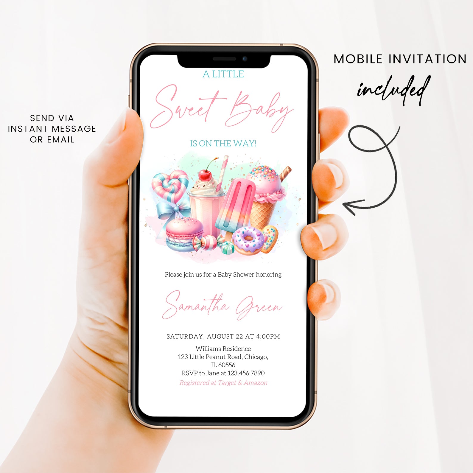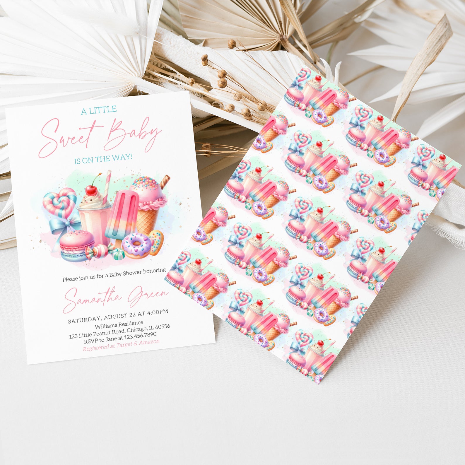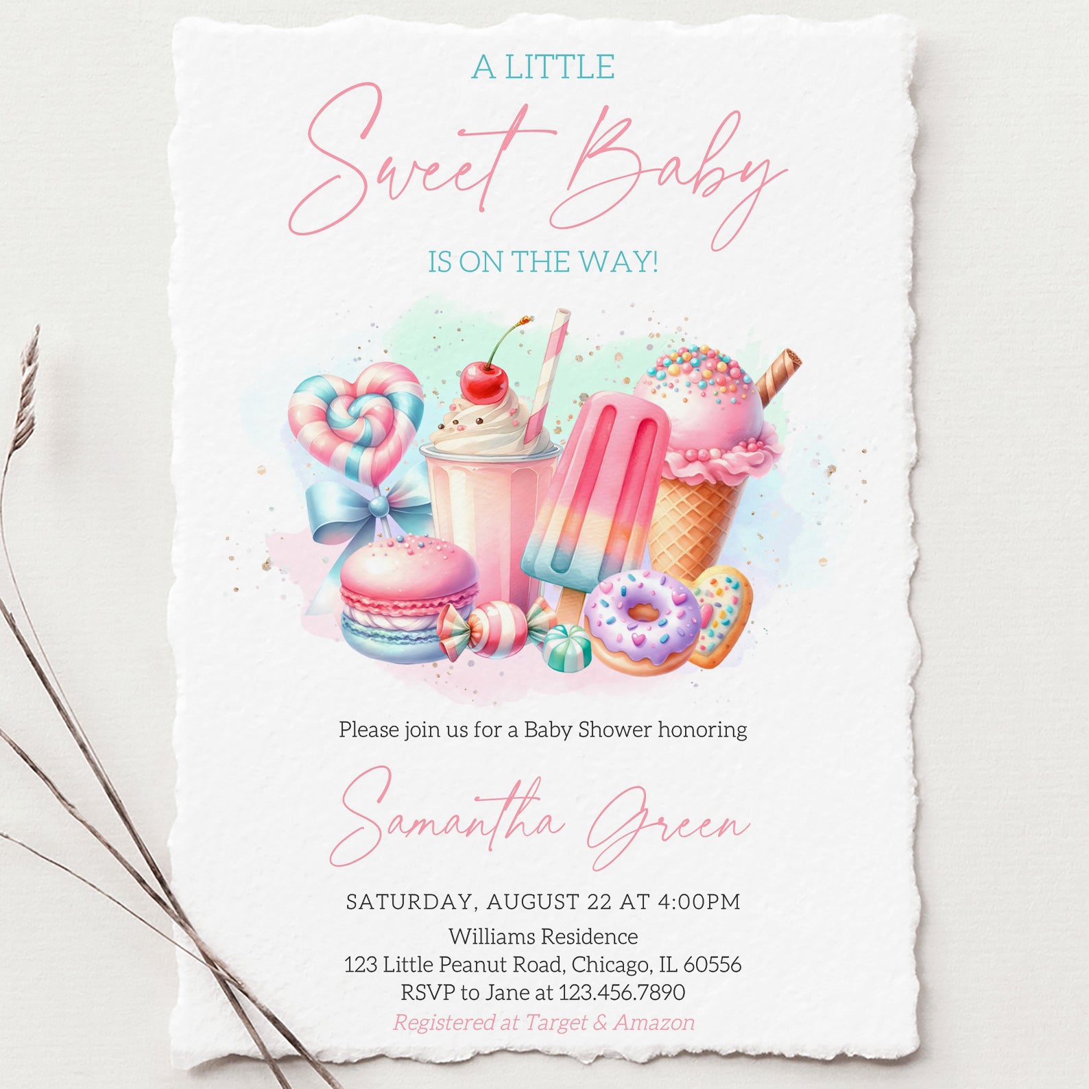 Summer Baby Shower Invite Bundle with Sweet Treats & Gold Accents