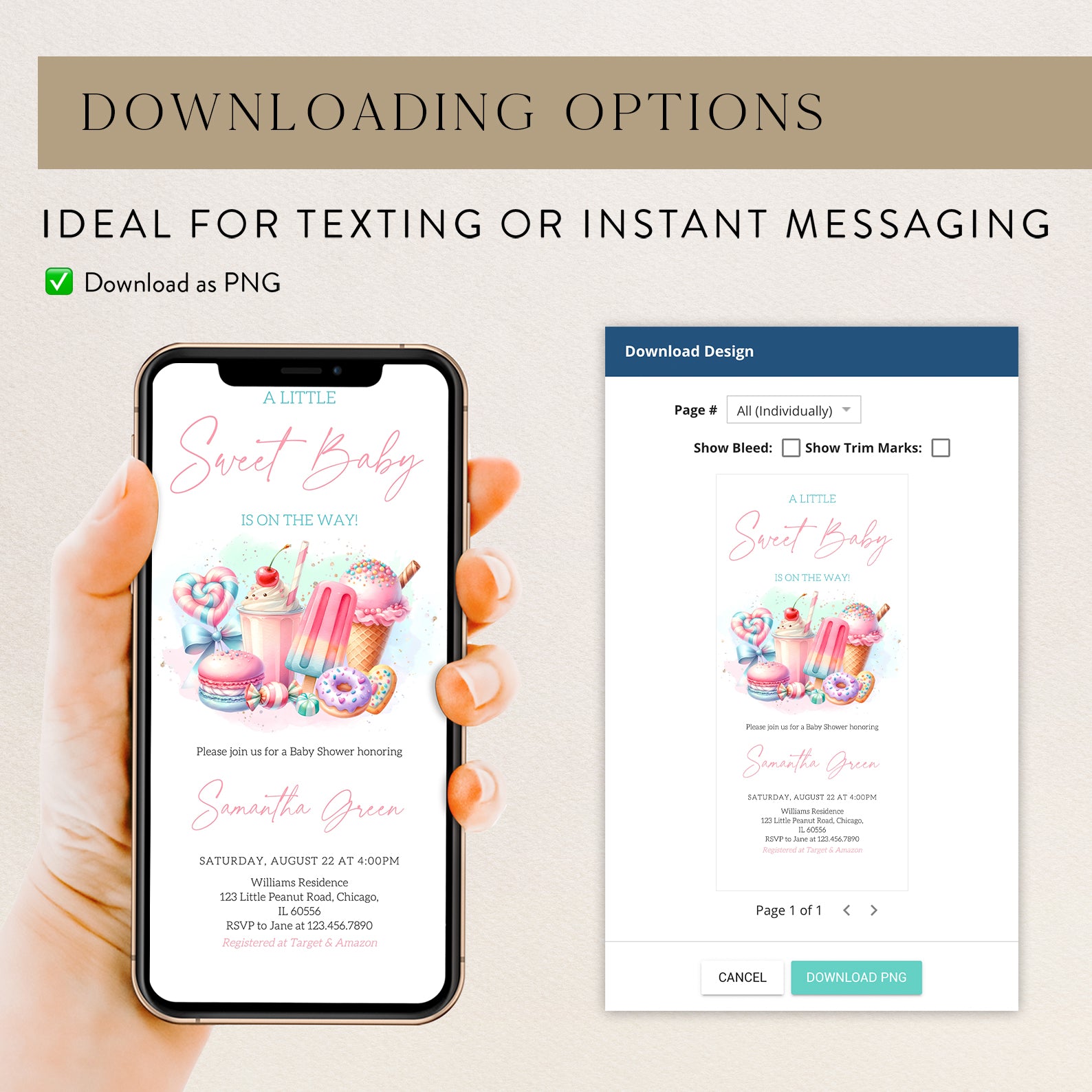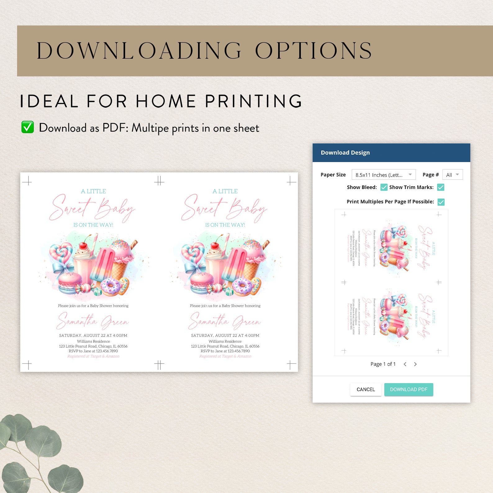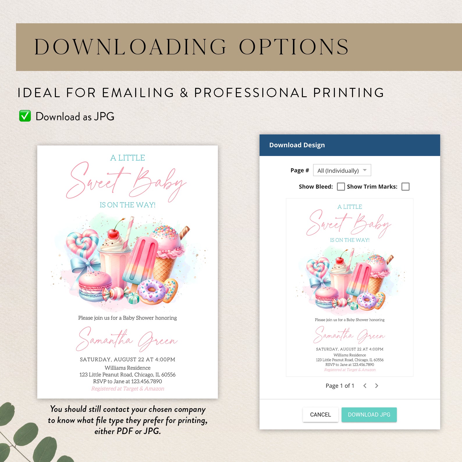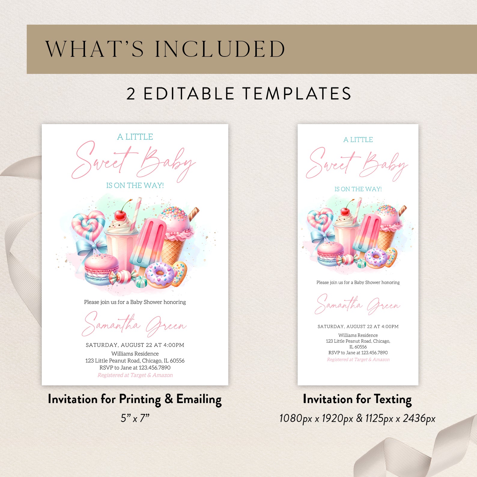- Purchase this Summer Baby Shower Invite Bundle with Sweet Treats & Gold Accents template