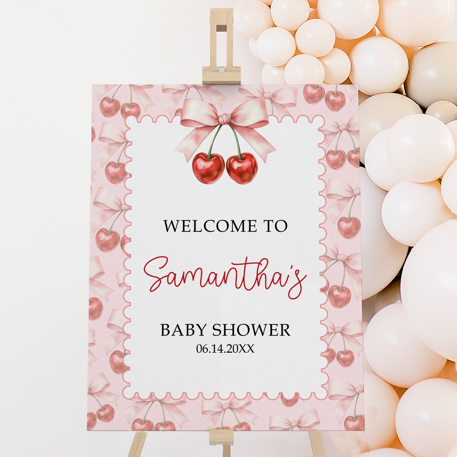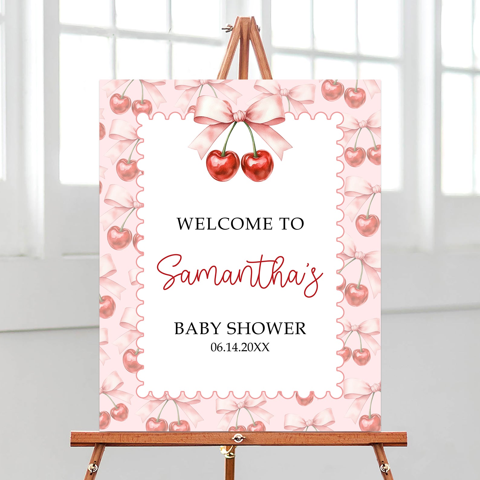1. Purchase this Cherry on Top Baby Girl Shower Welcome Sign: Summer Ticket Design template