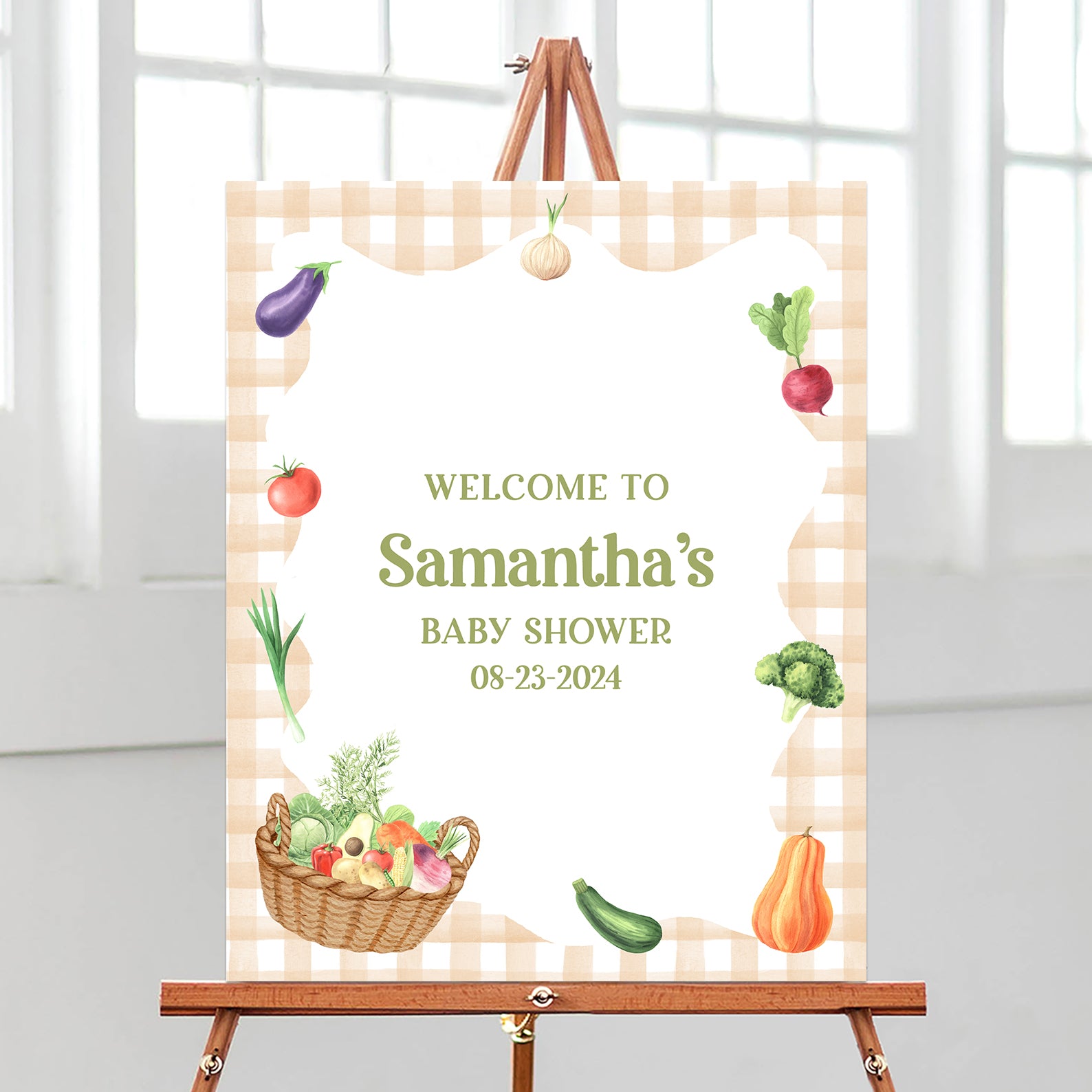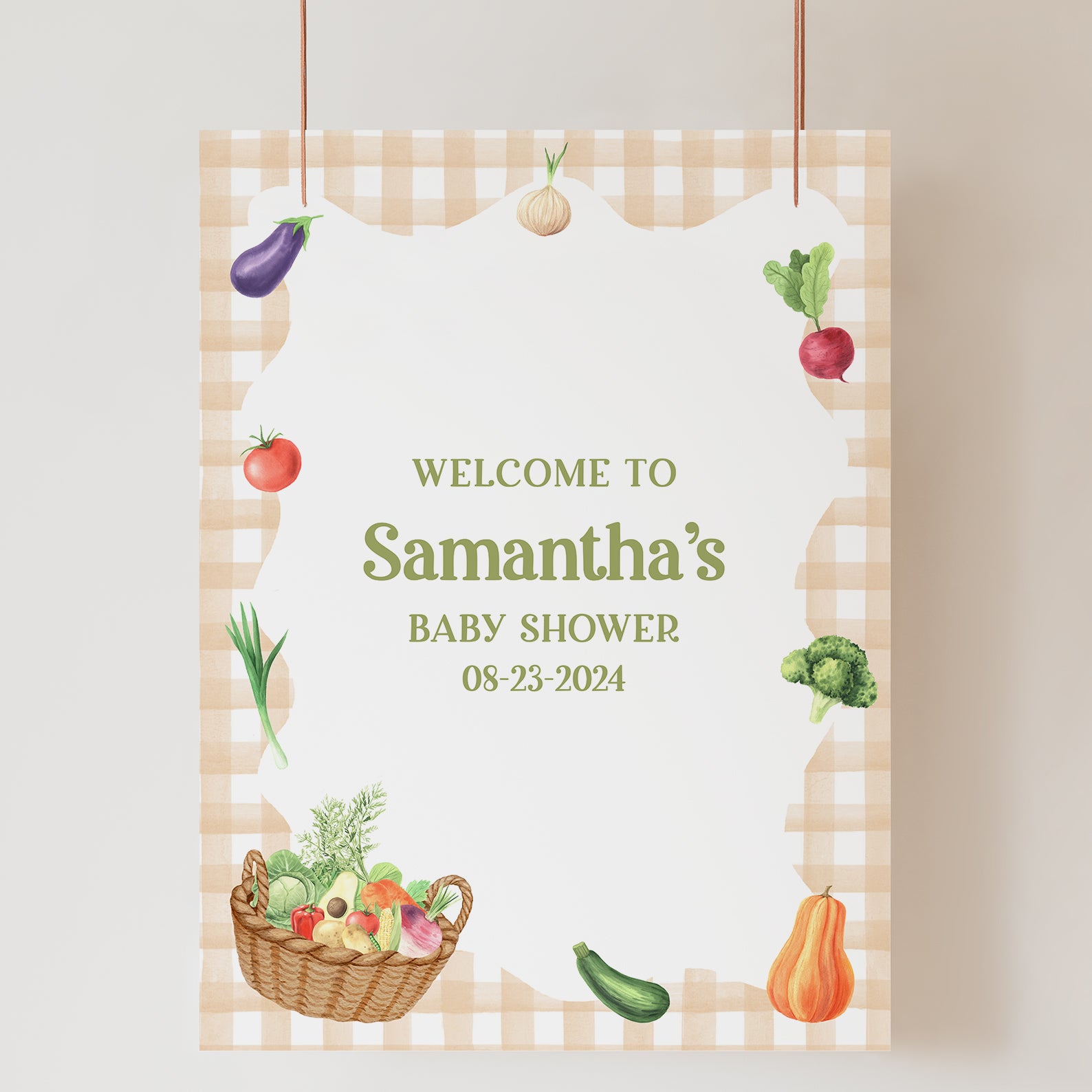 Locally Grown Baby Shower Welcome Sign with Fresh Veggies