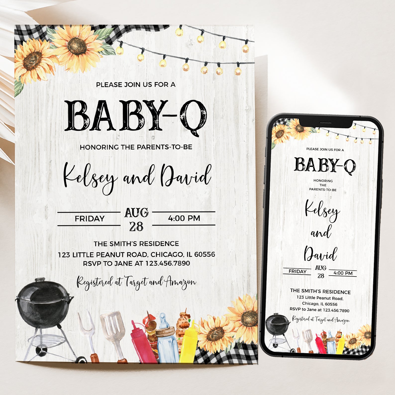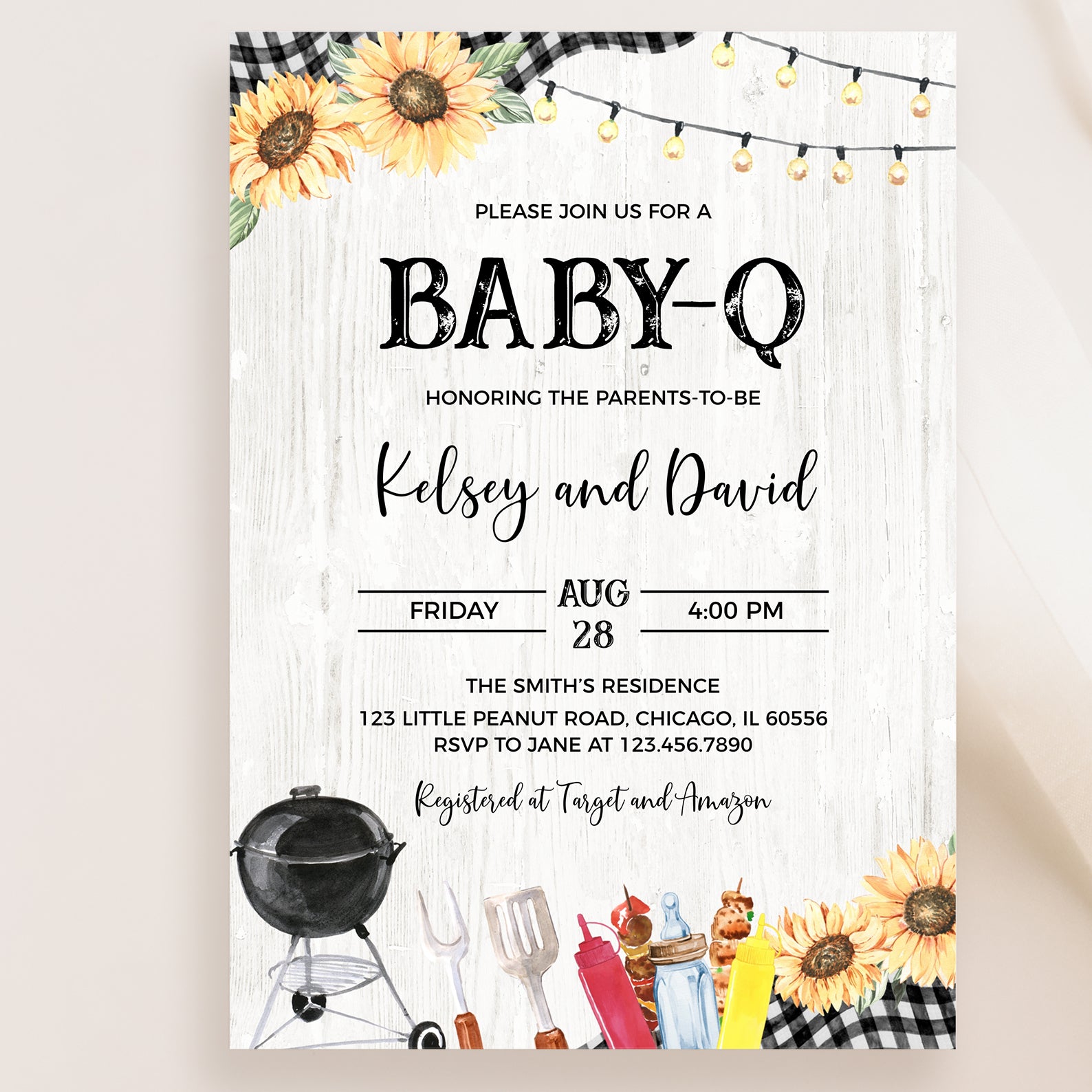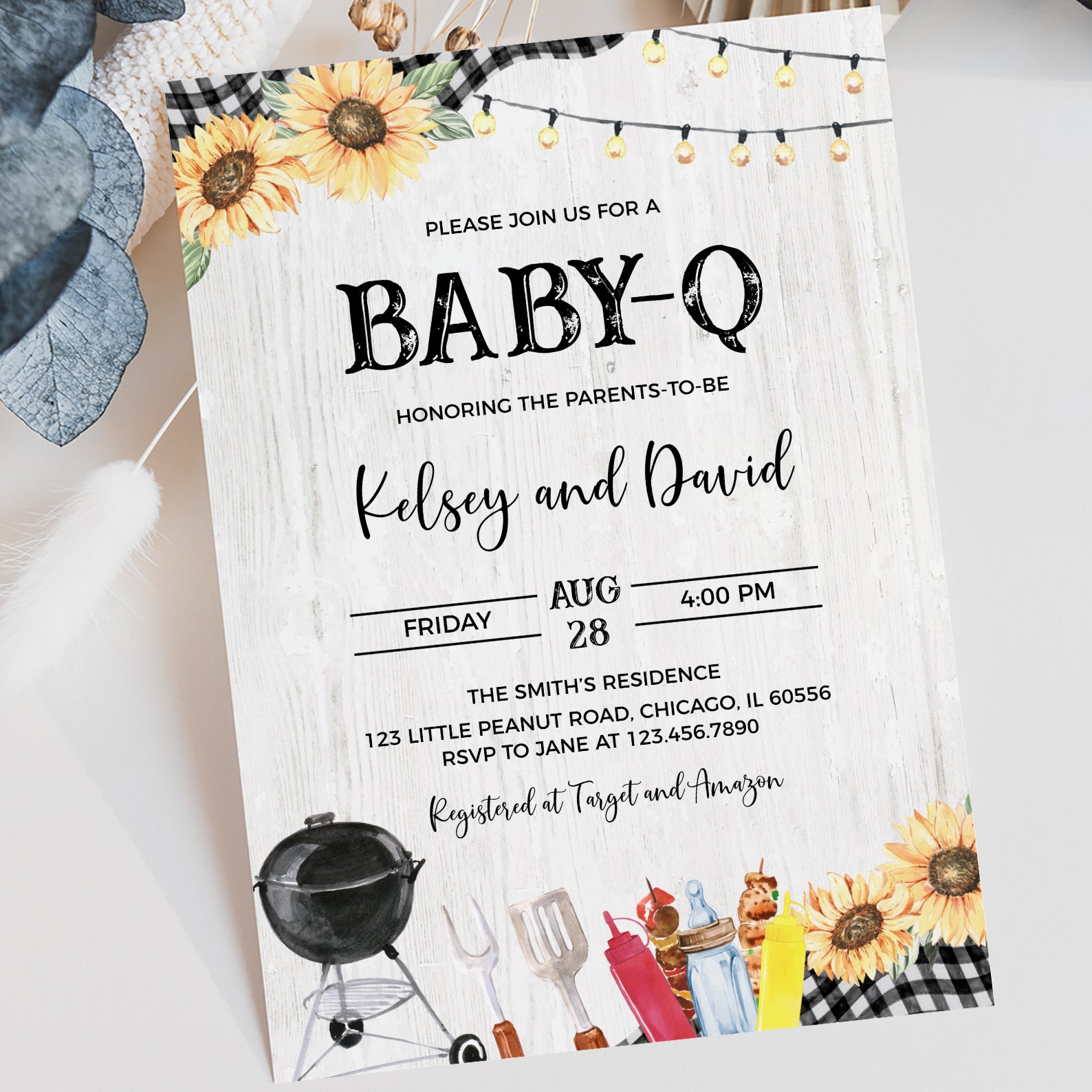 - Purchase this Baby-Q Baby Shower Invitation: Sunflowers, BBQ & Picnic Design template