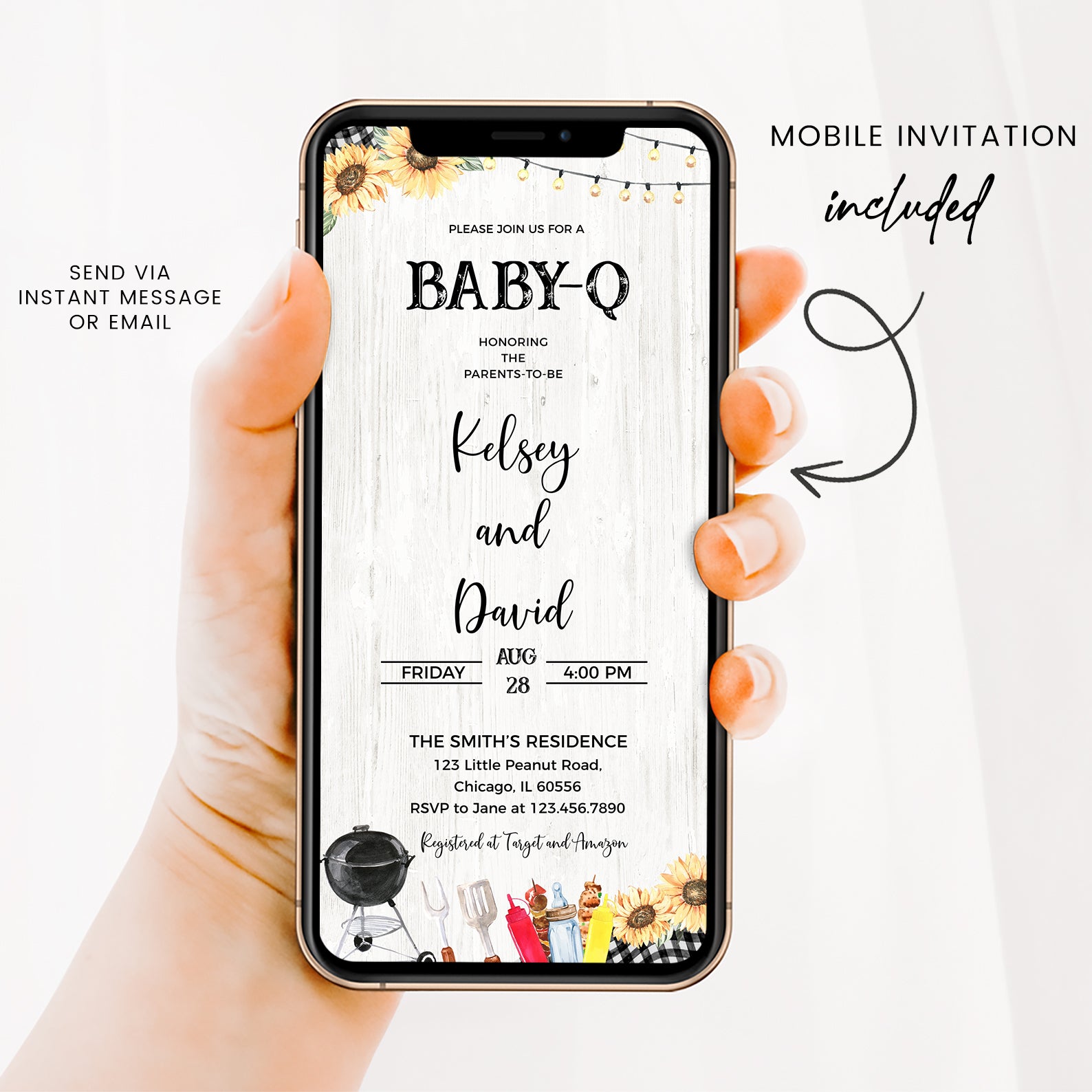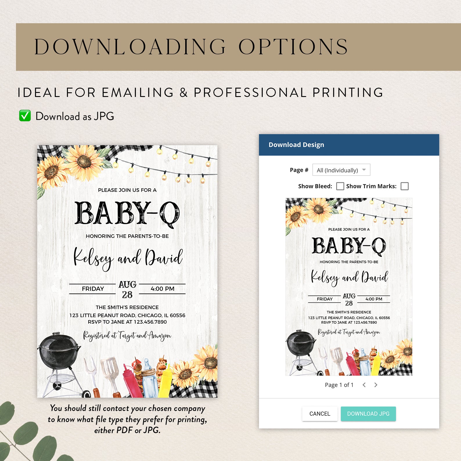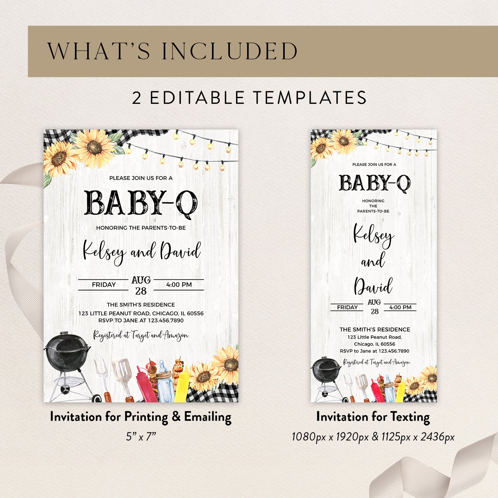 - Purchase this Baby-Q Baby Shower Invitation: Sunflowers, BBQ & Picnic Design template