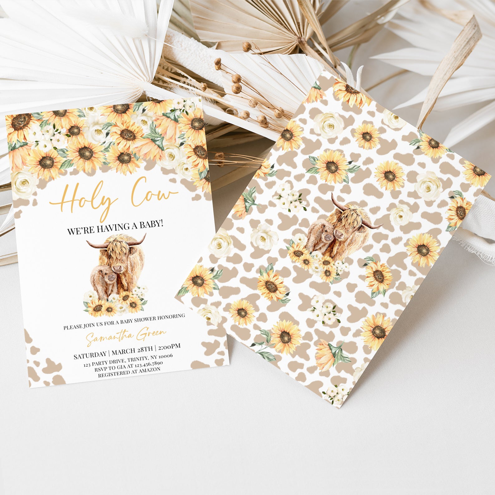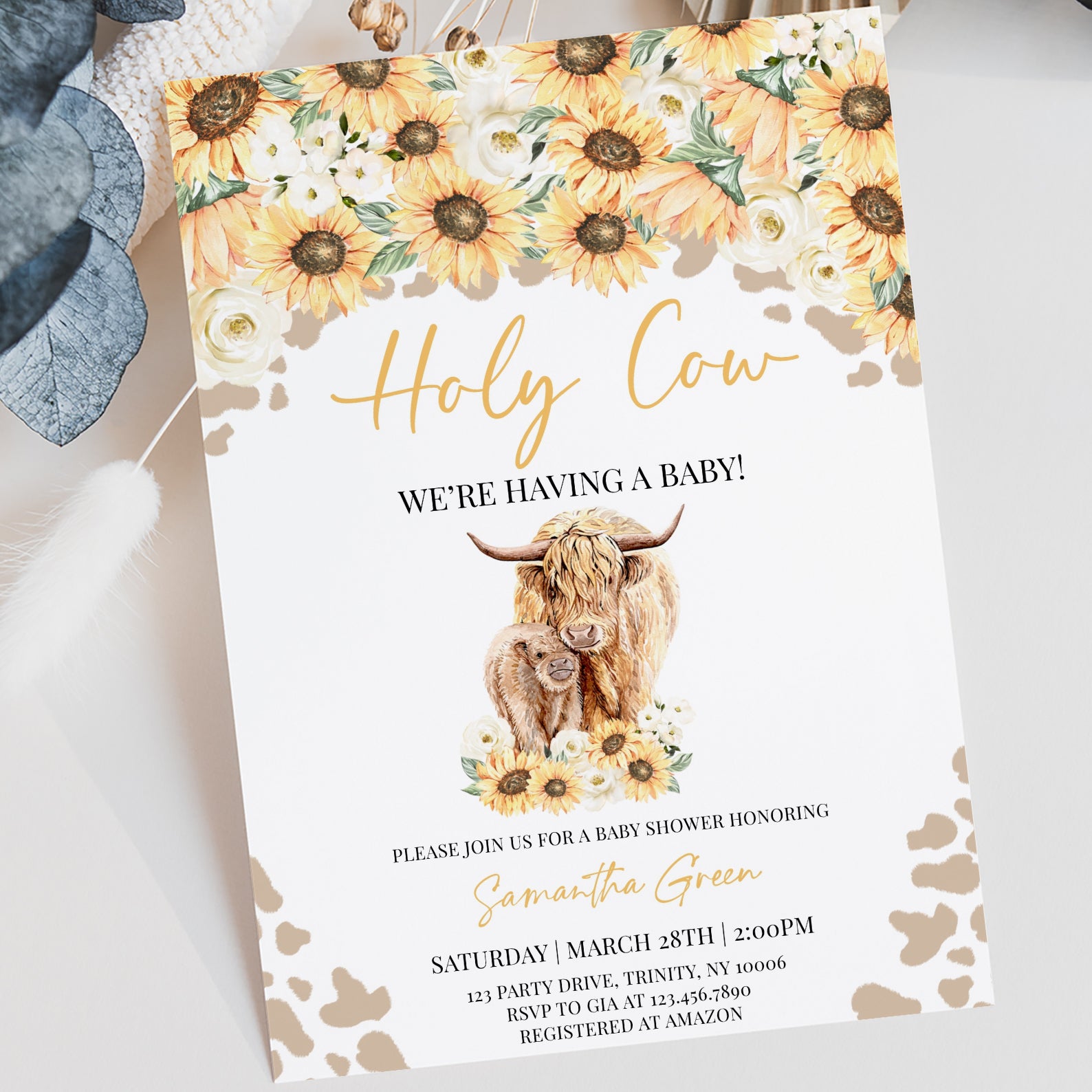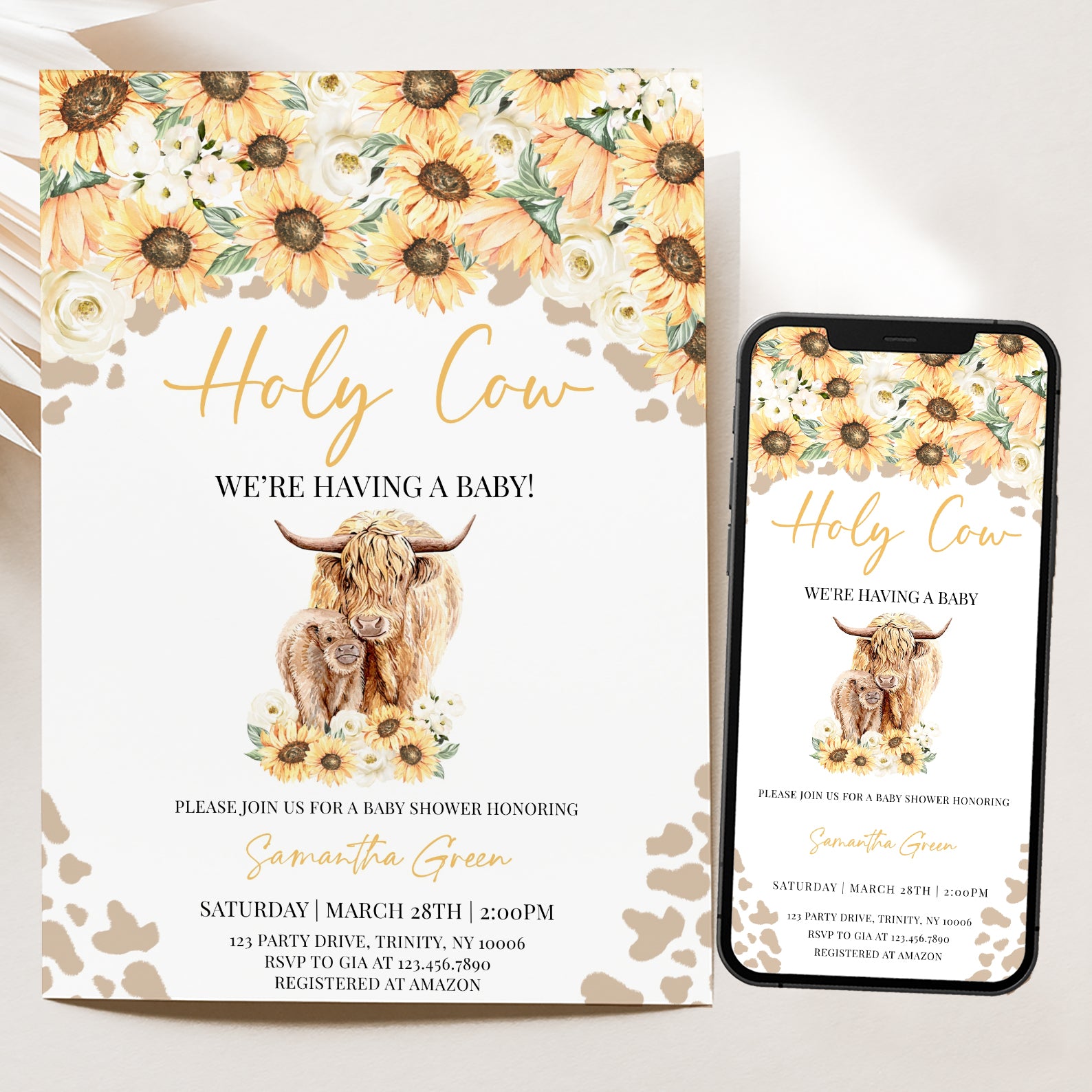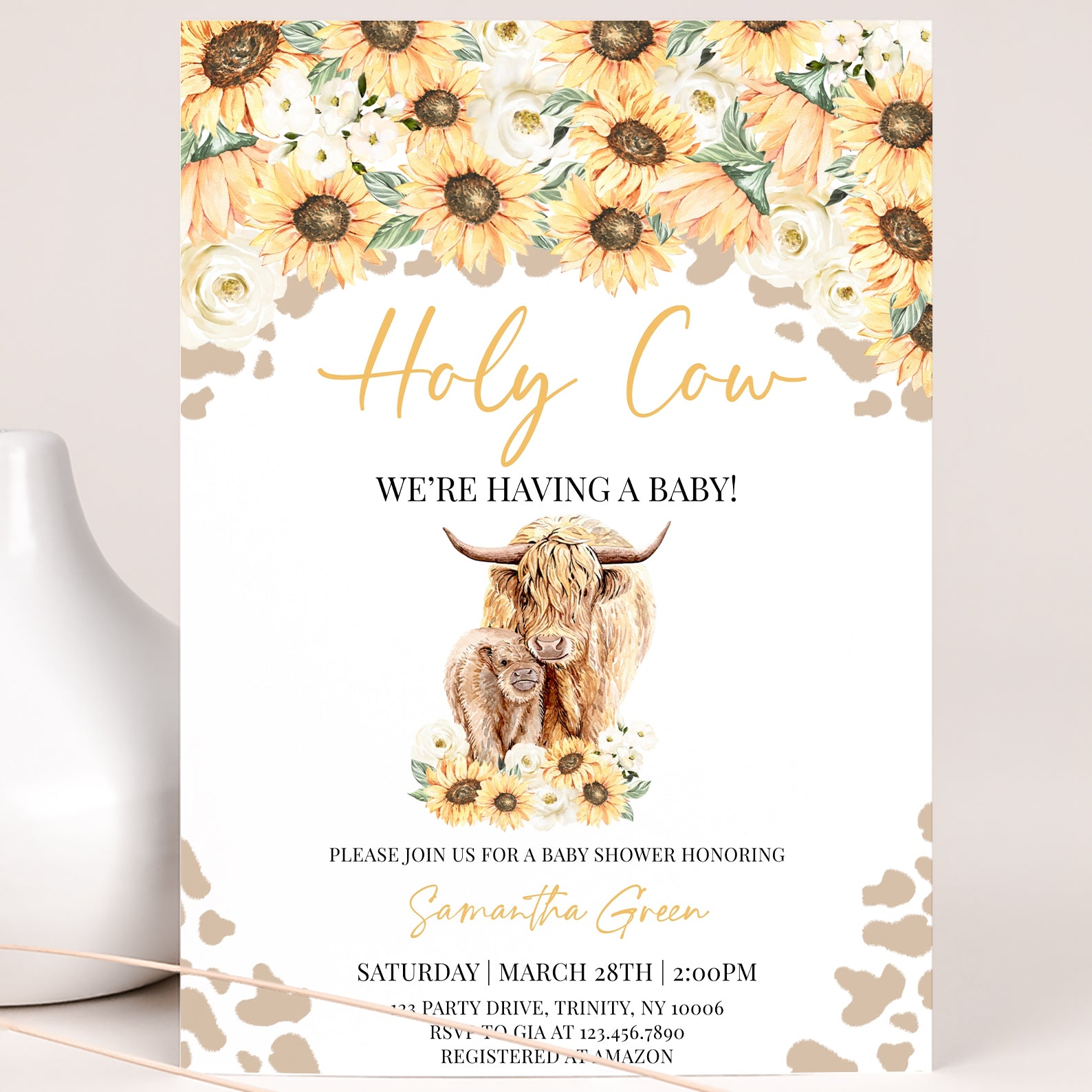 - Purchase this Holy Cow Sunflower Baby Shower Digital Invitation template