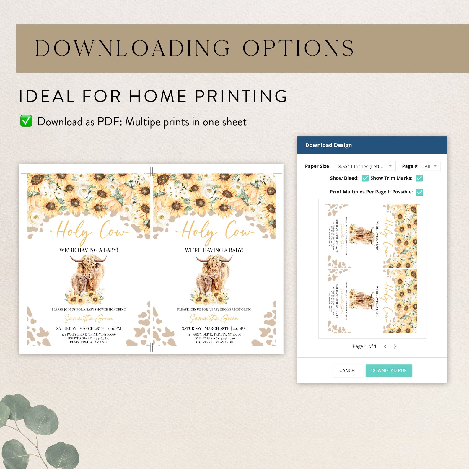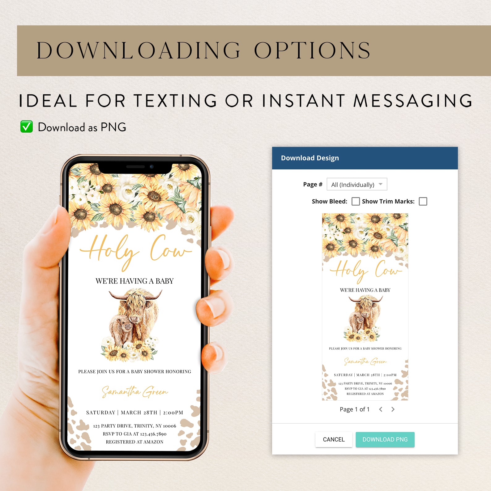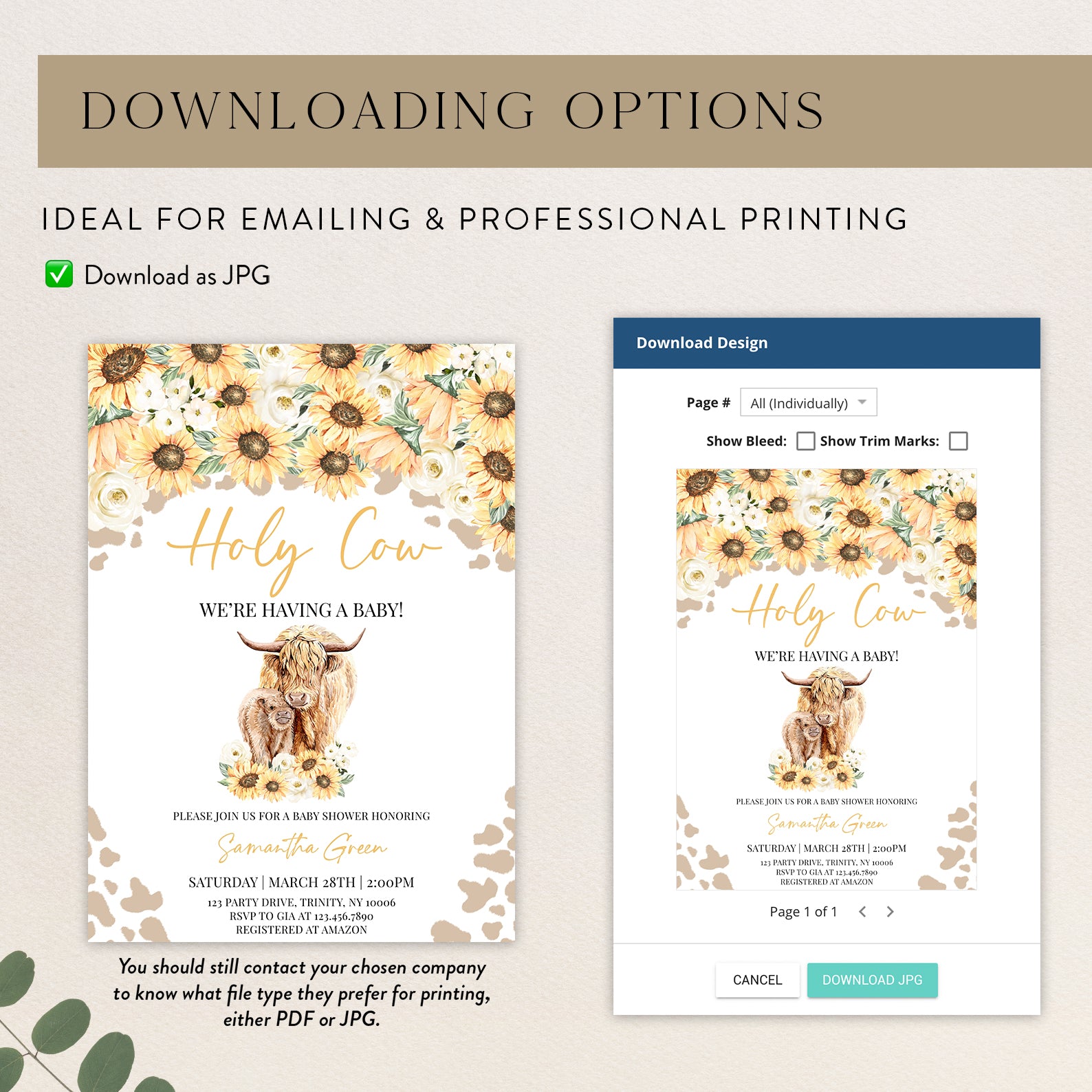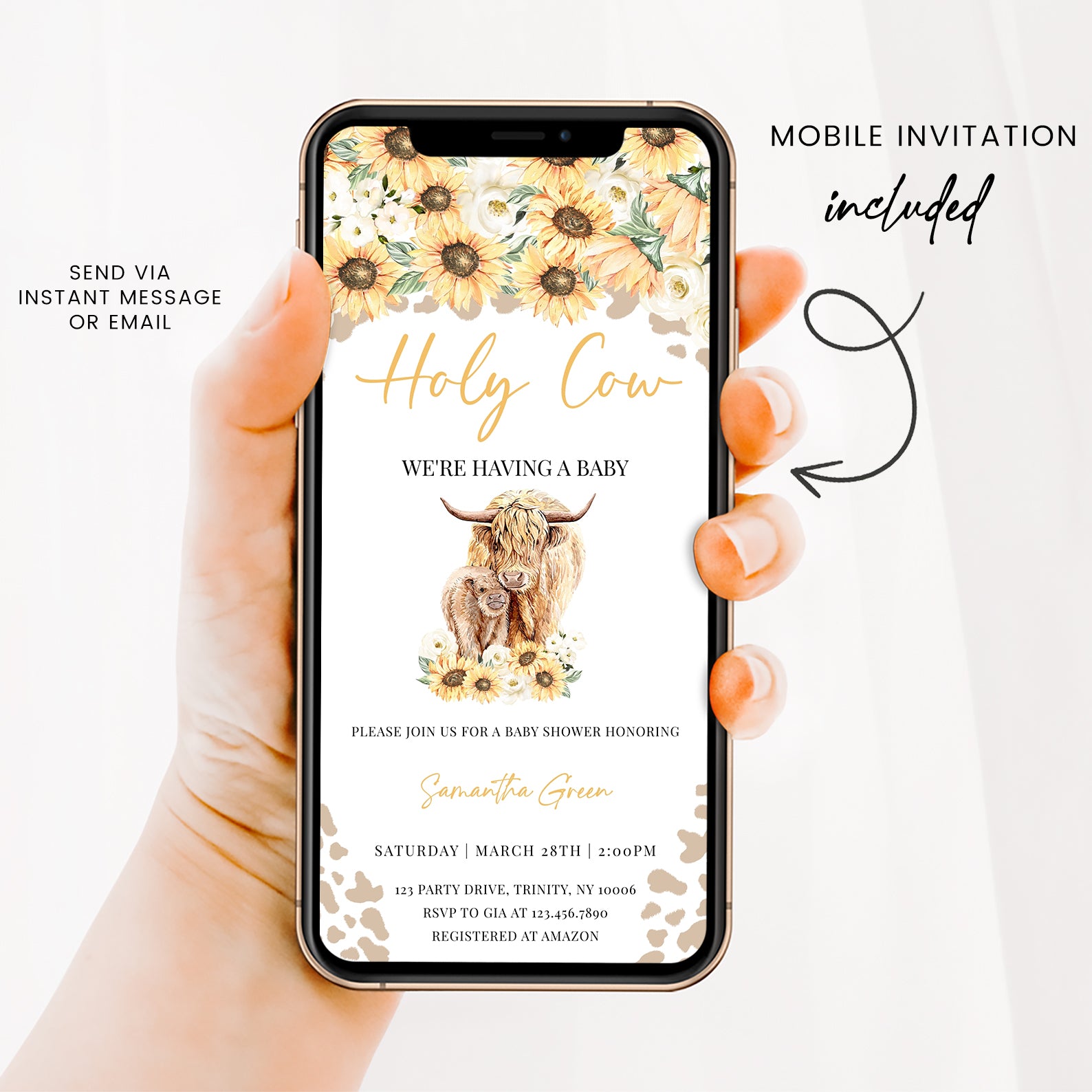 - Purchase this Holy Cow Sunflower Baby Shower Digital Invitation template