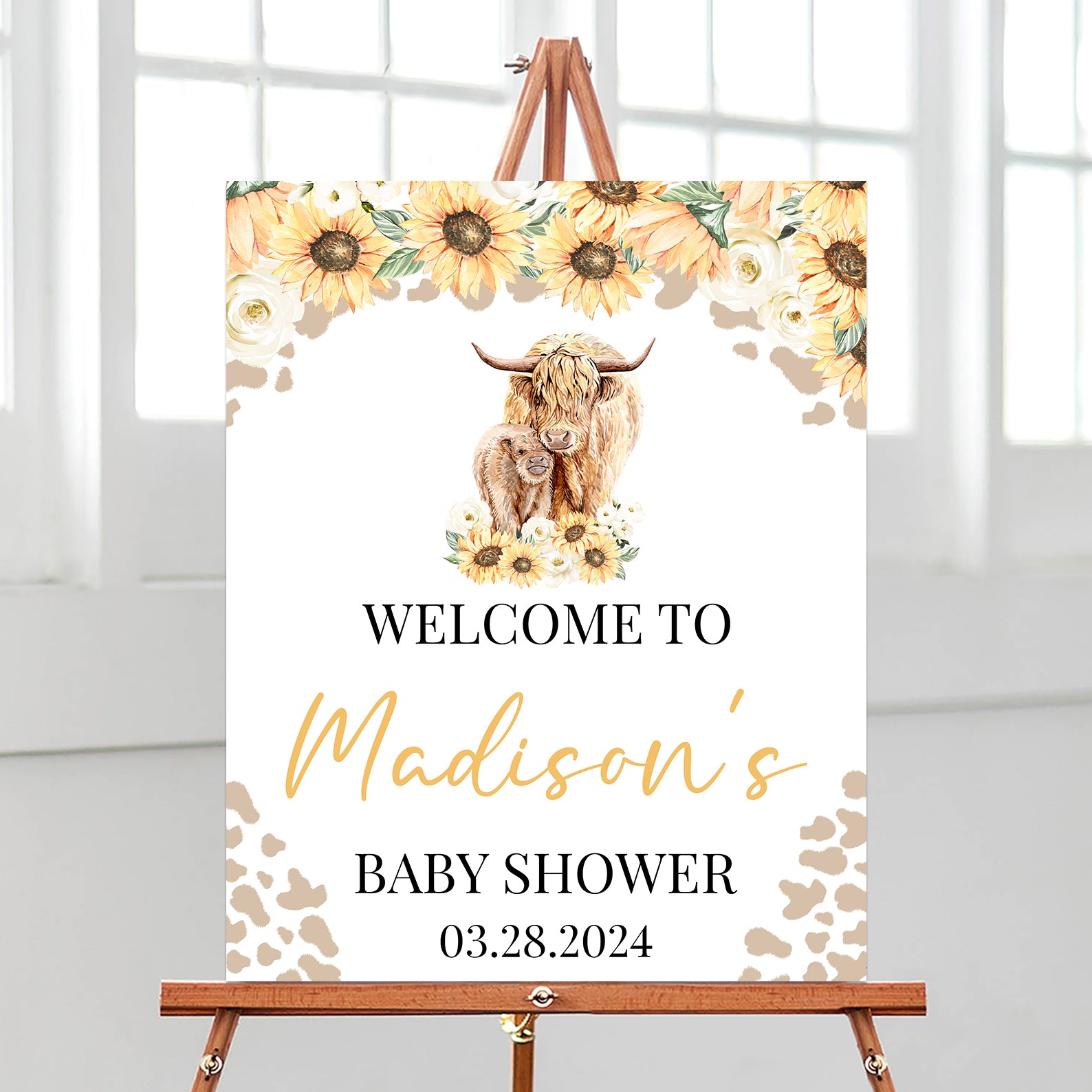 - Purchase this Holy Cow Sunflower Baby Shower Digital Welcome Sign template