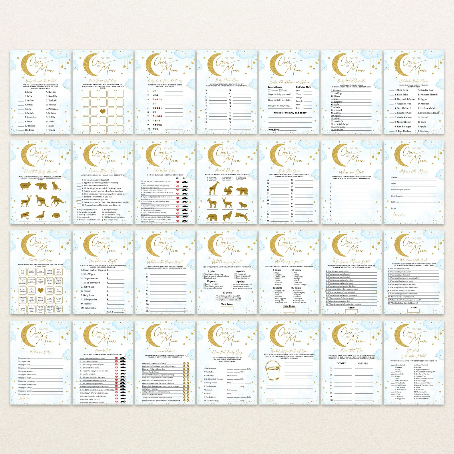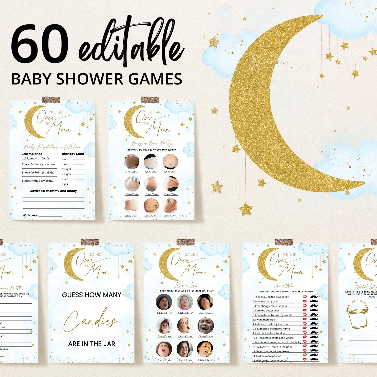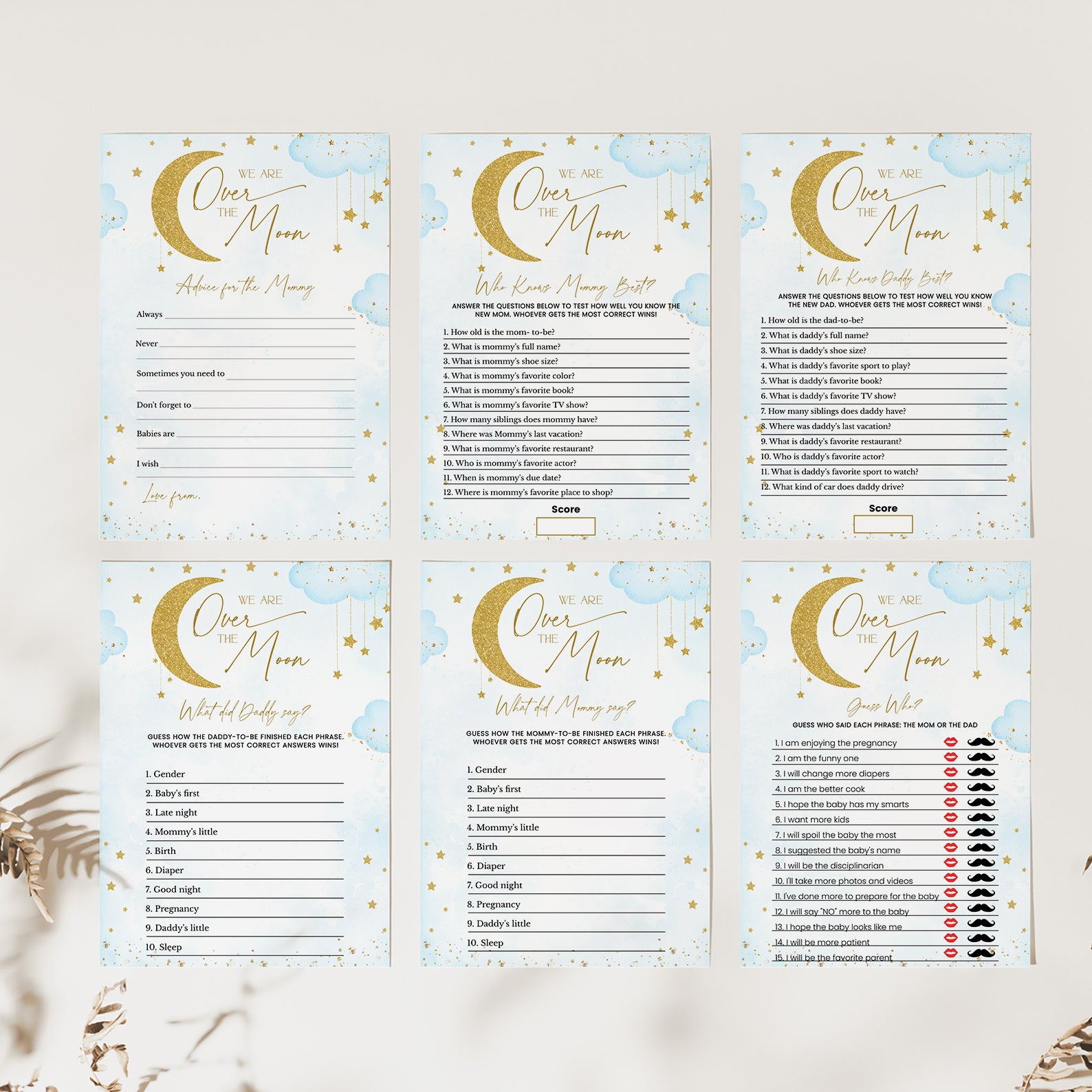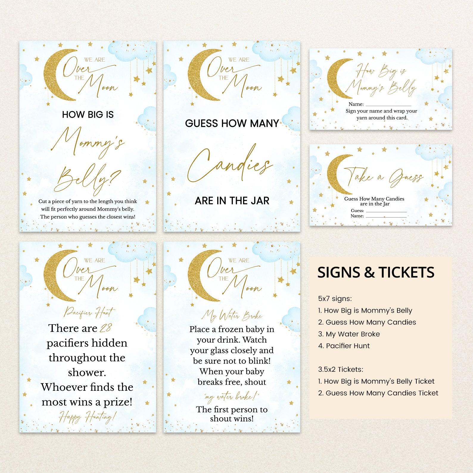 - Purchase this Celestial Over the Moon Baby Shower Blue Digital Game Bundle template