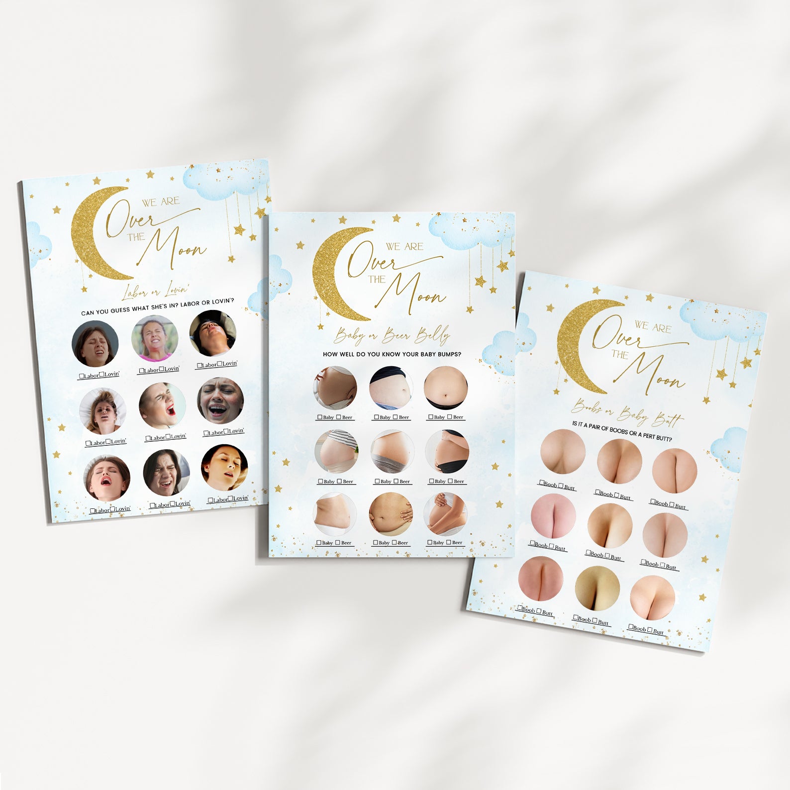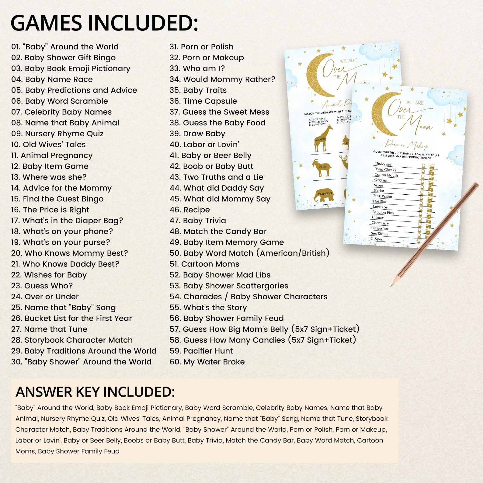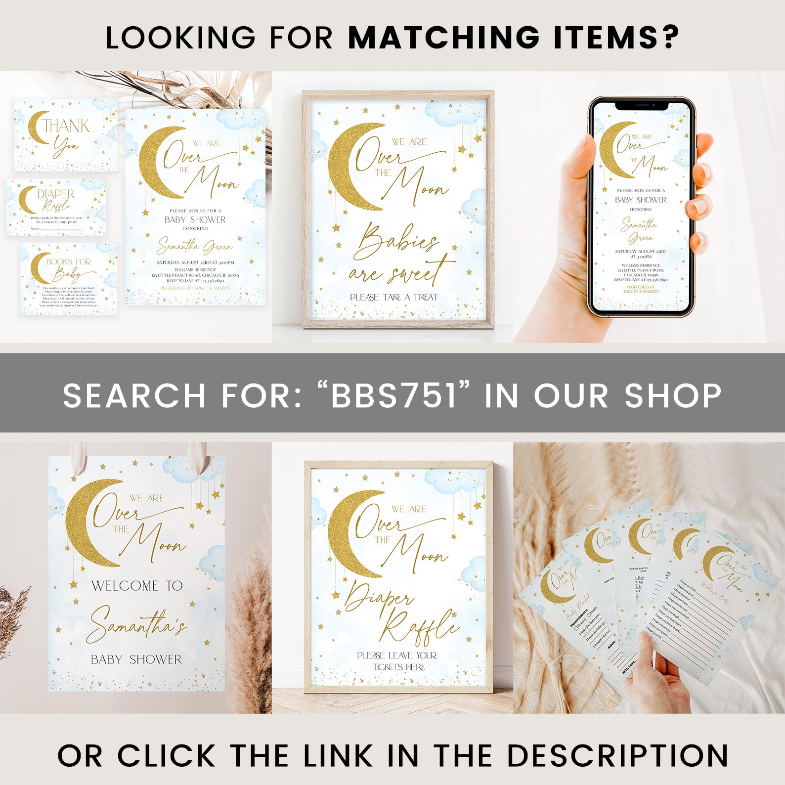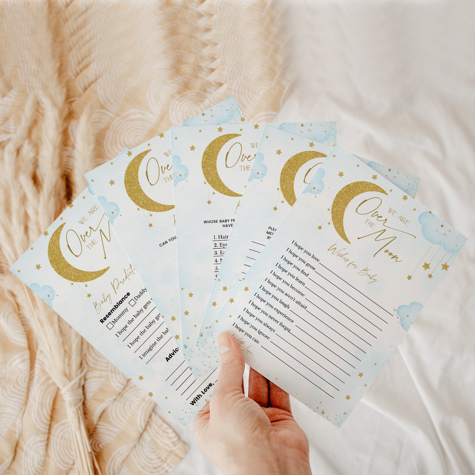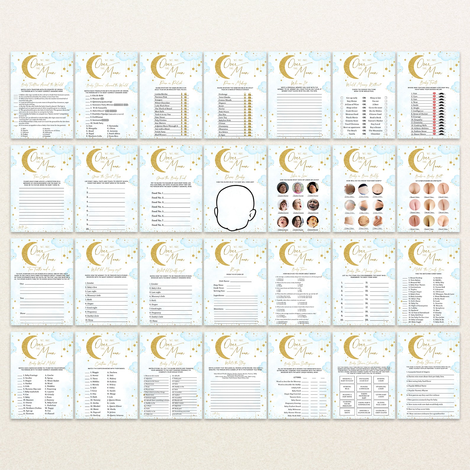 - Purchase this Celestial Over the Moon Baby Shower Blue Digital Game Bundle template