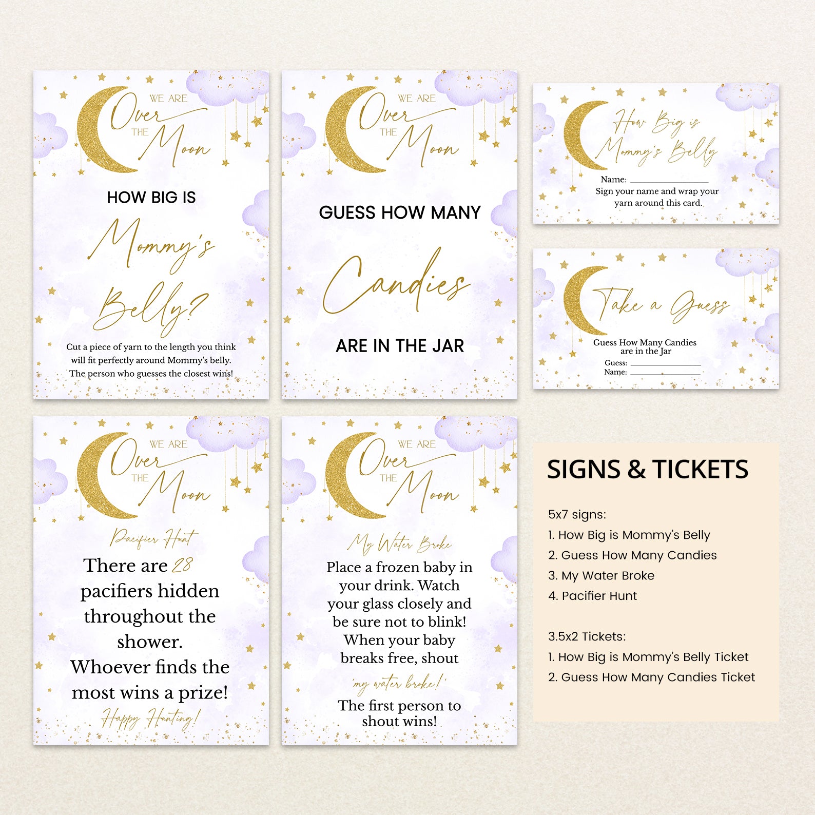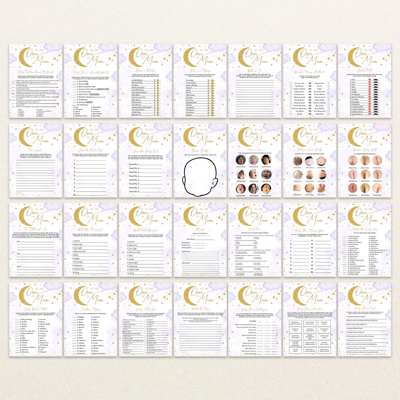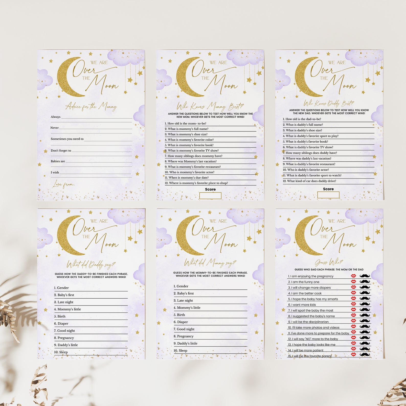- Purchase this Celestial Over the Moon Baby Shower Purple Digital Game Bundle template