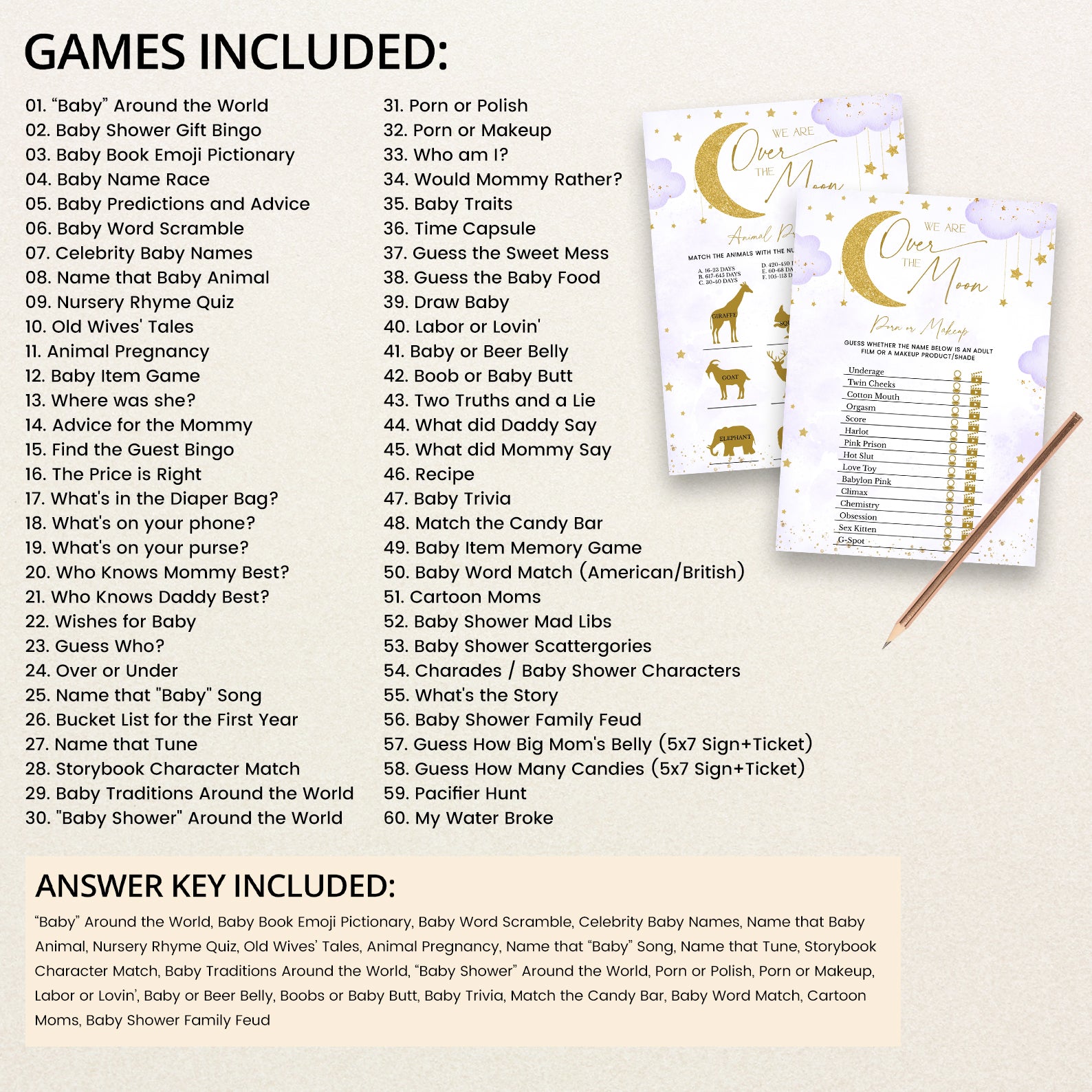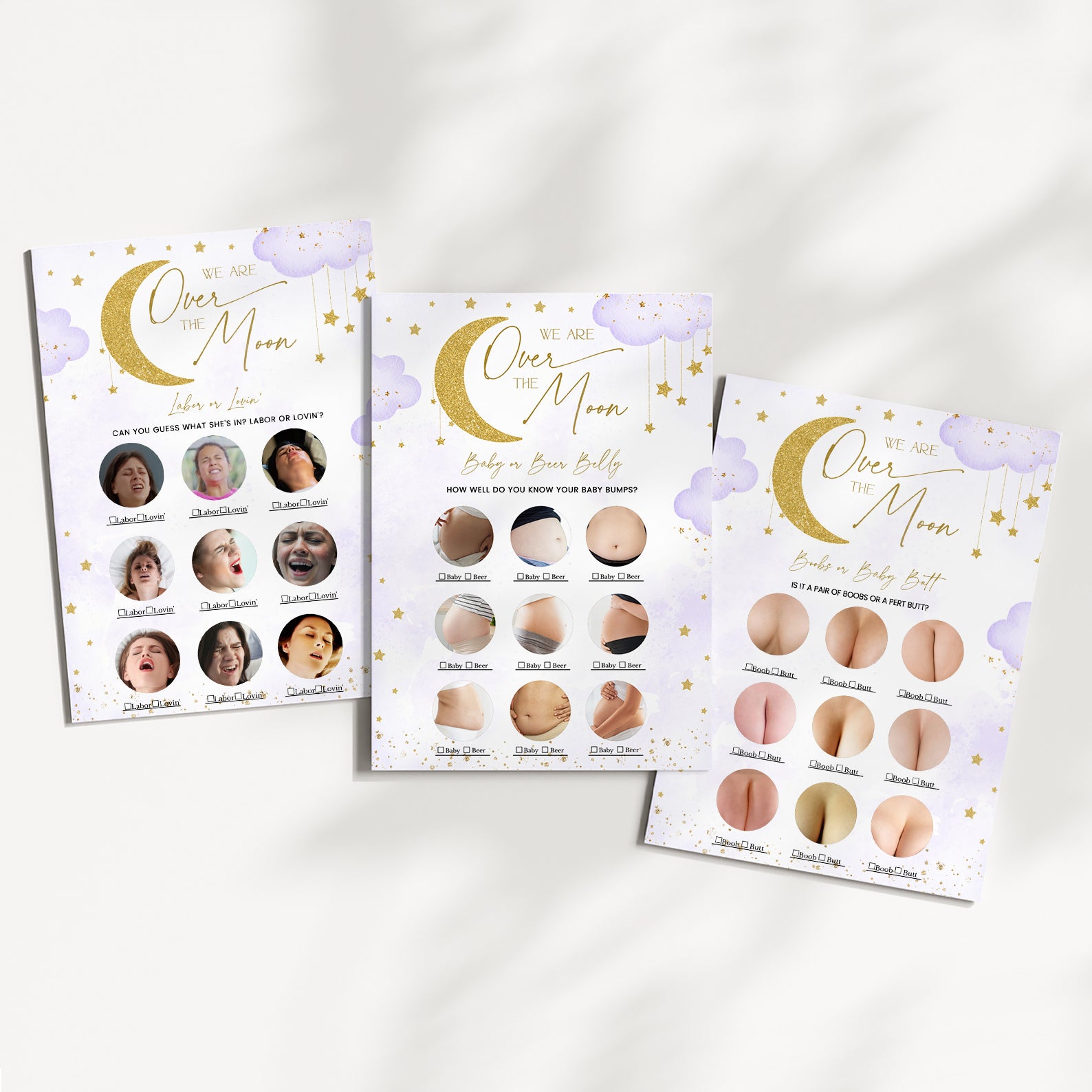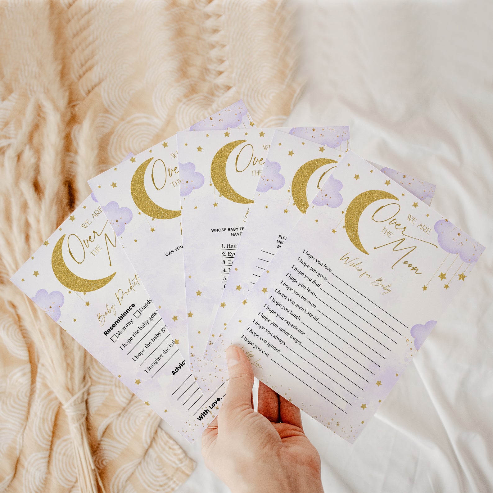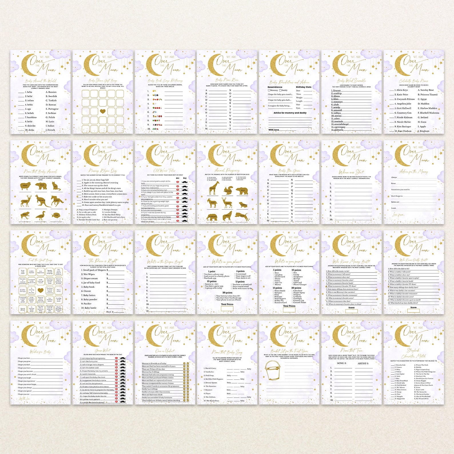 - Purchase this Celestial Over the Moon Baby Shower Purple Digital Game Bundle template