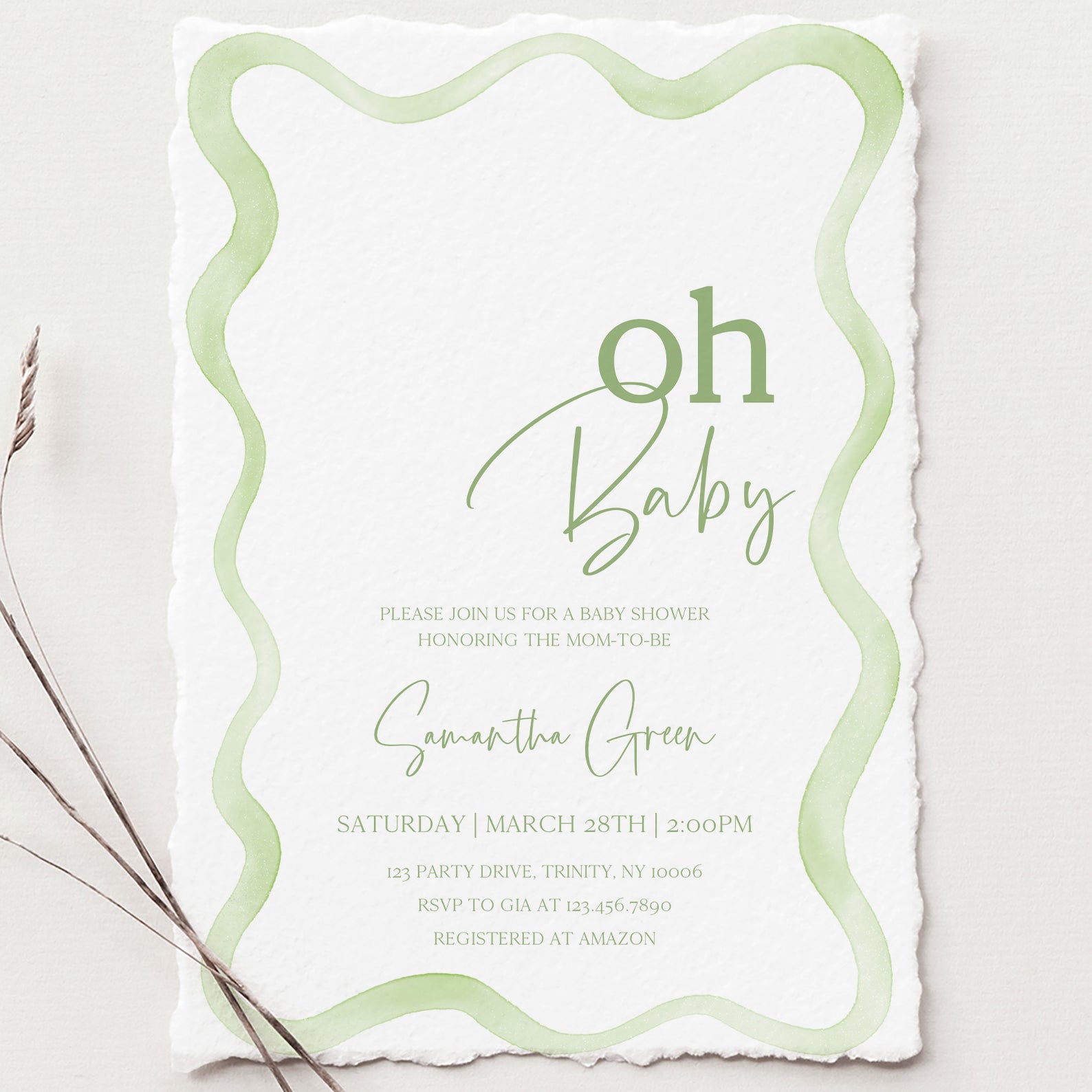 Minimalist Wavy Border Baby Shower Digital Invitation