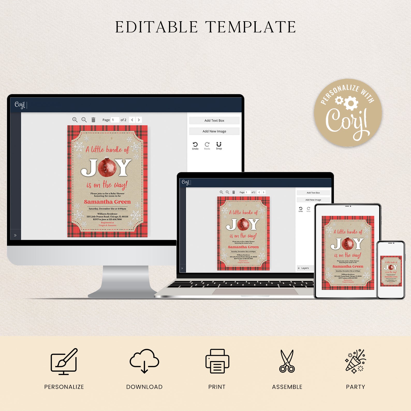 - Purchase this Winter Baby Shower Invite: Christmas Ball & Snowflakes Design template