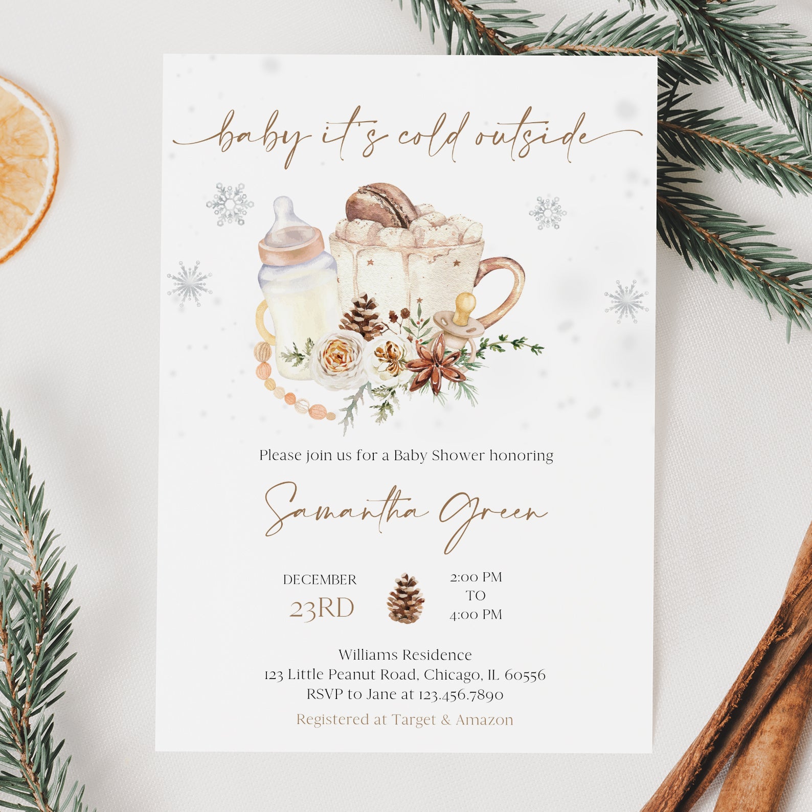 - Purchase this Cozy Winter Baby Shower Invite: Baby It’s Cold Outside template