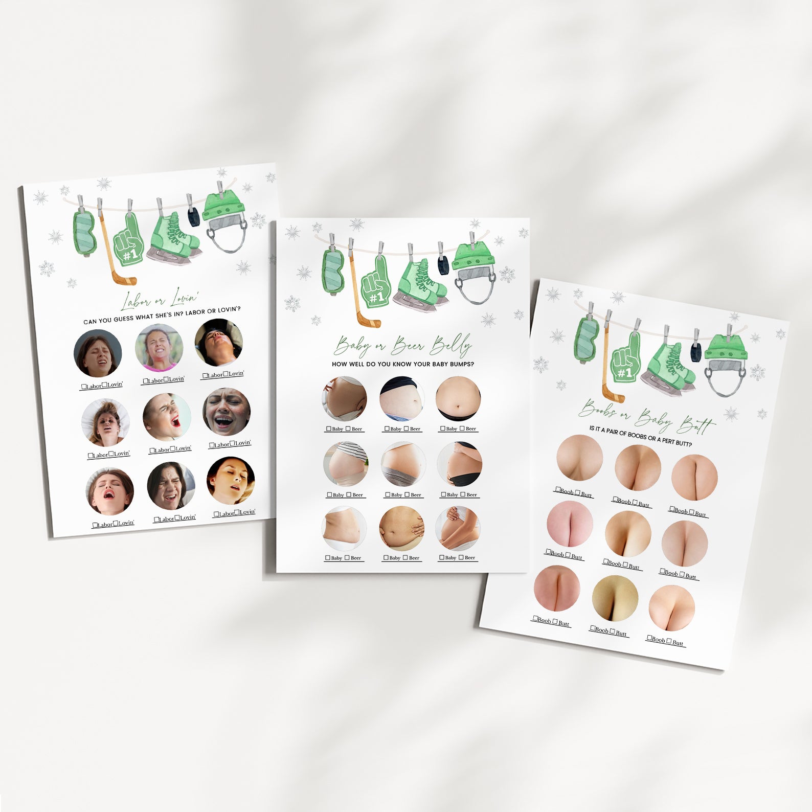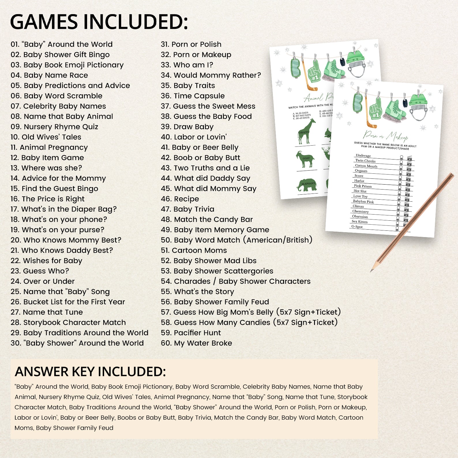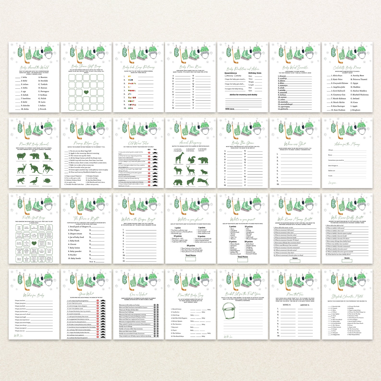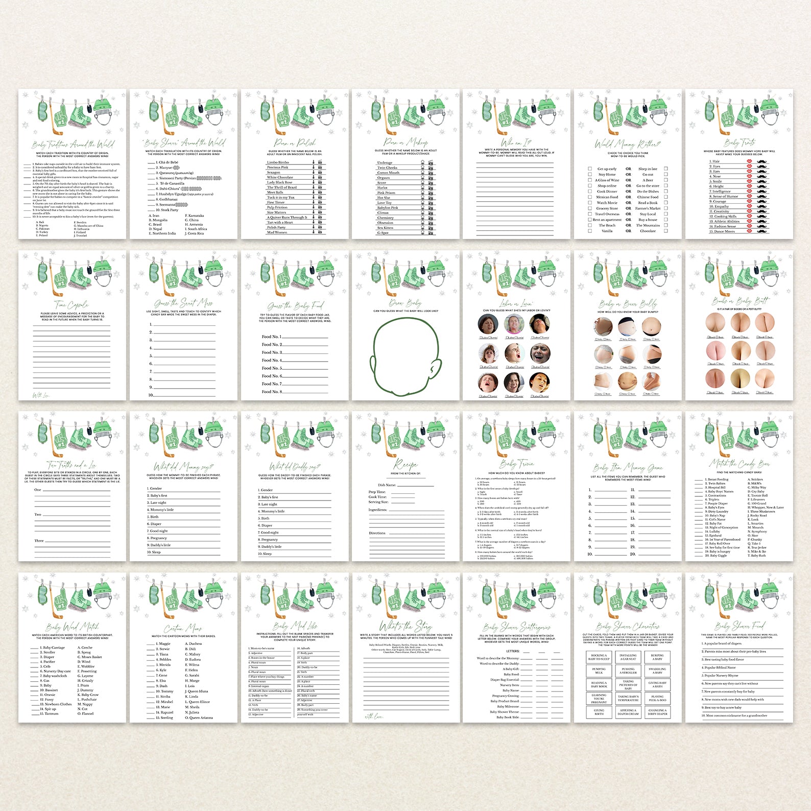 It's a Boy Winter Baby Shower Game Bundle – Green Hockey Theme