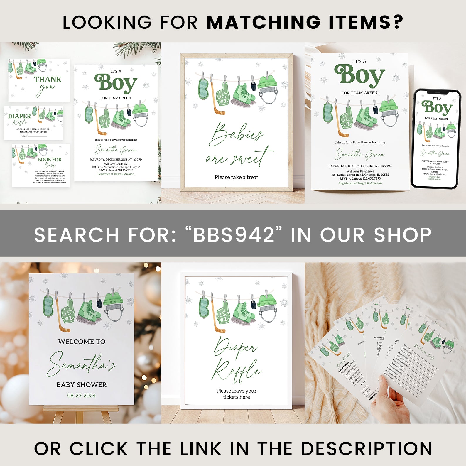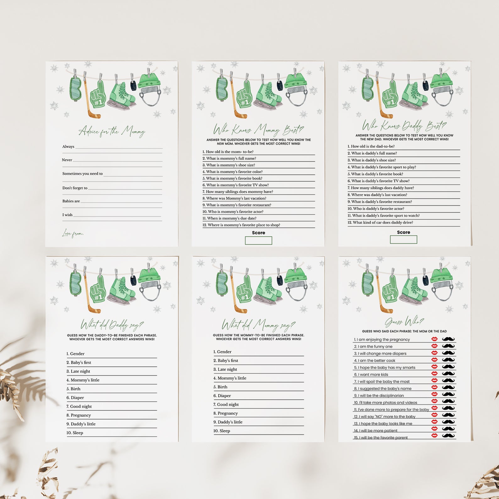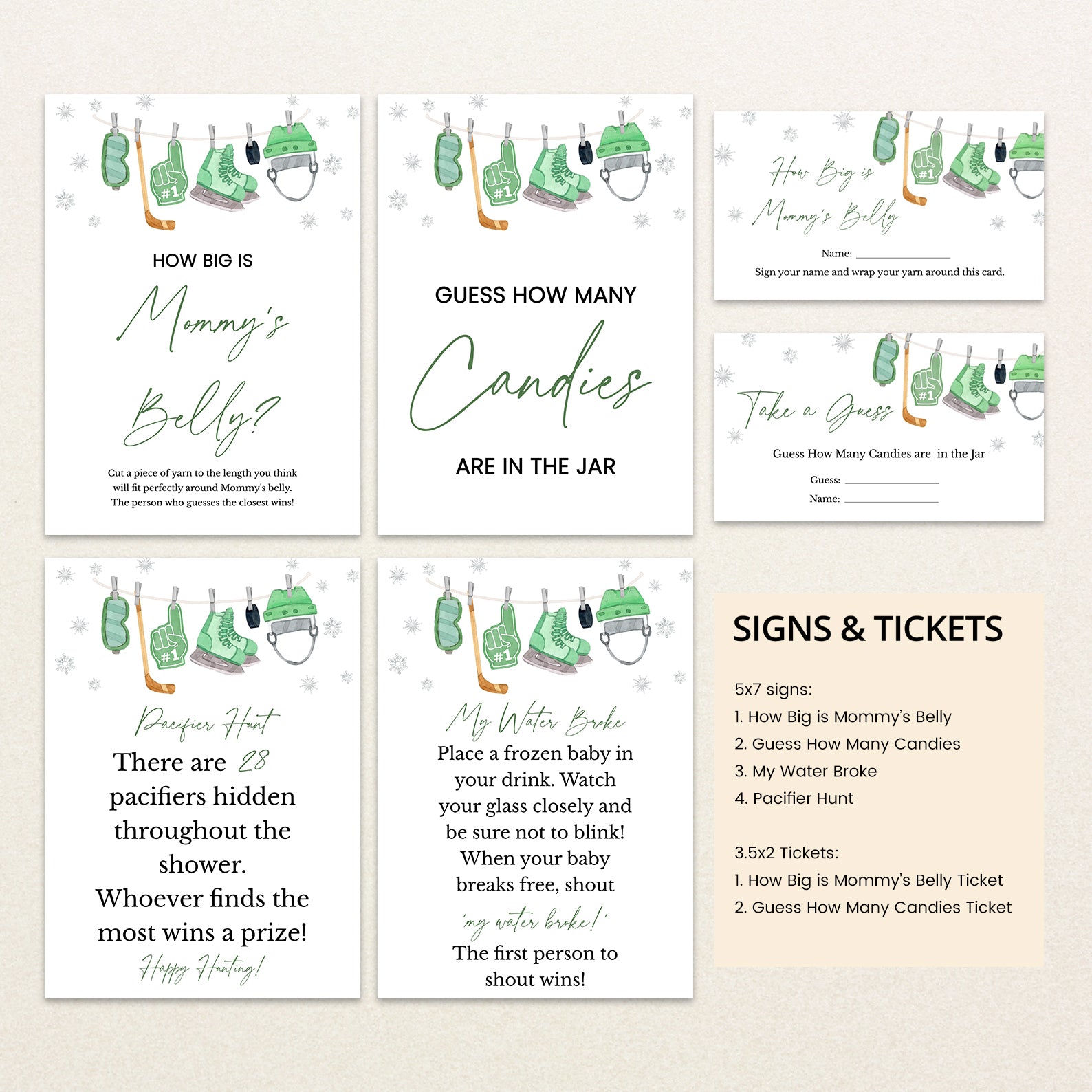 - Purchase this It's a Boy Winter Baby Shower Game Bundle – Green Hockey Theme template