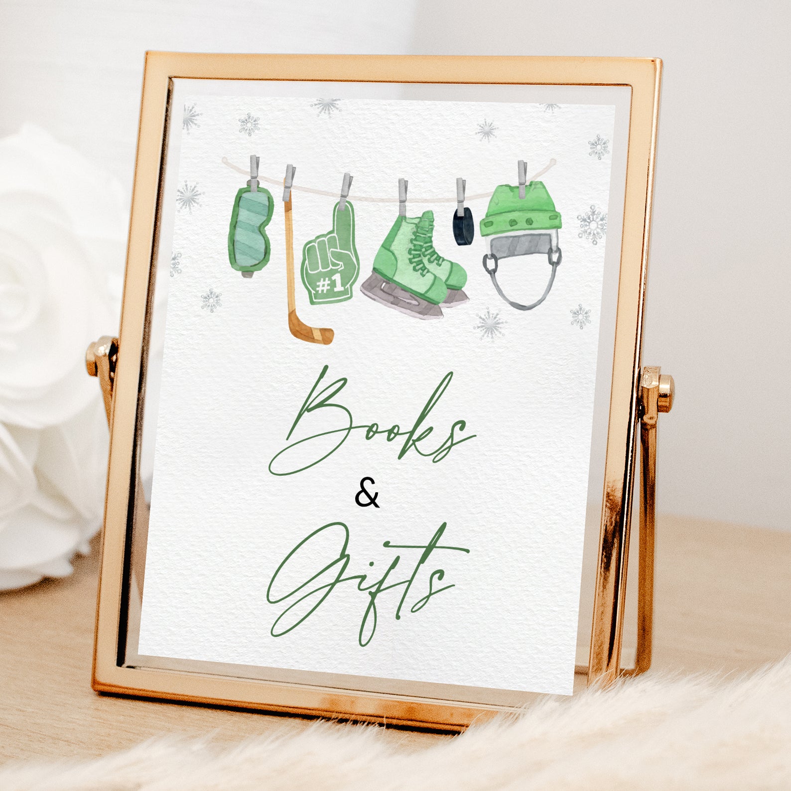 - Purchase this It's a Boy Winter Baby Shower Table Sign – Green Hockey Theme template