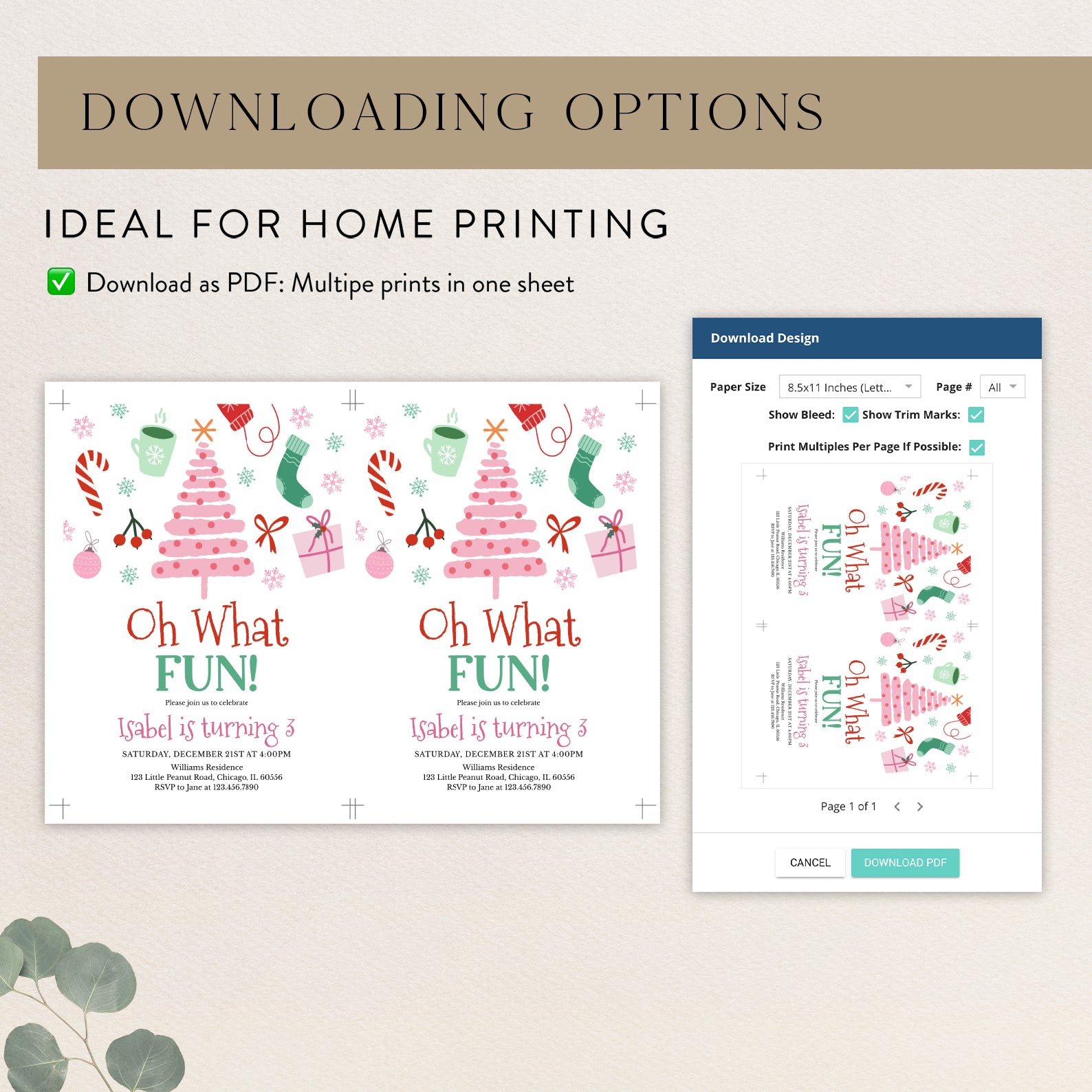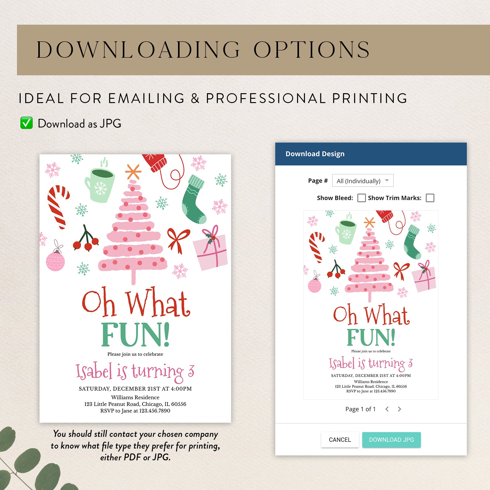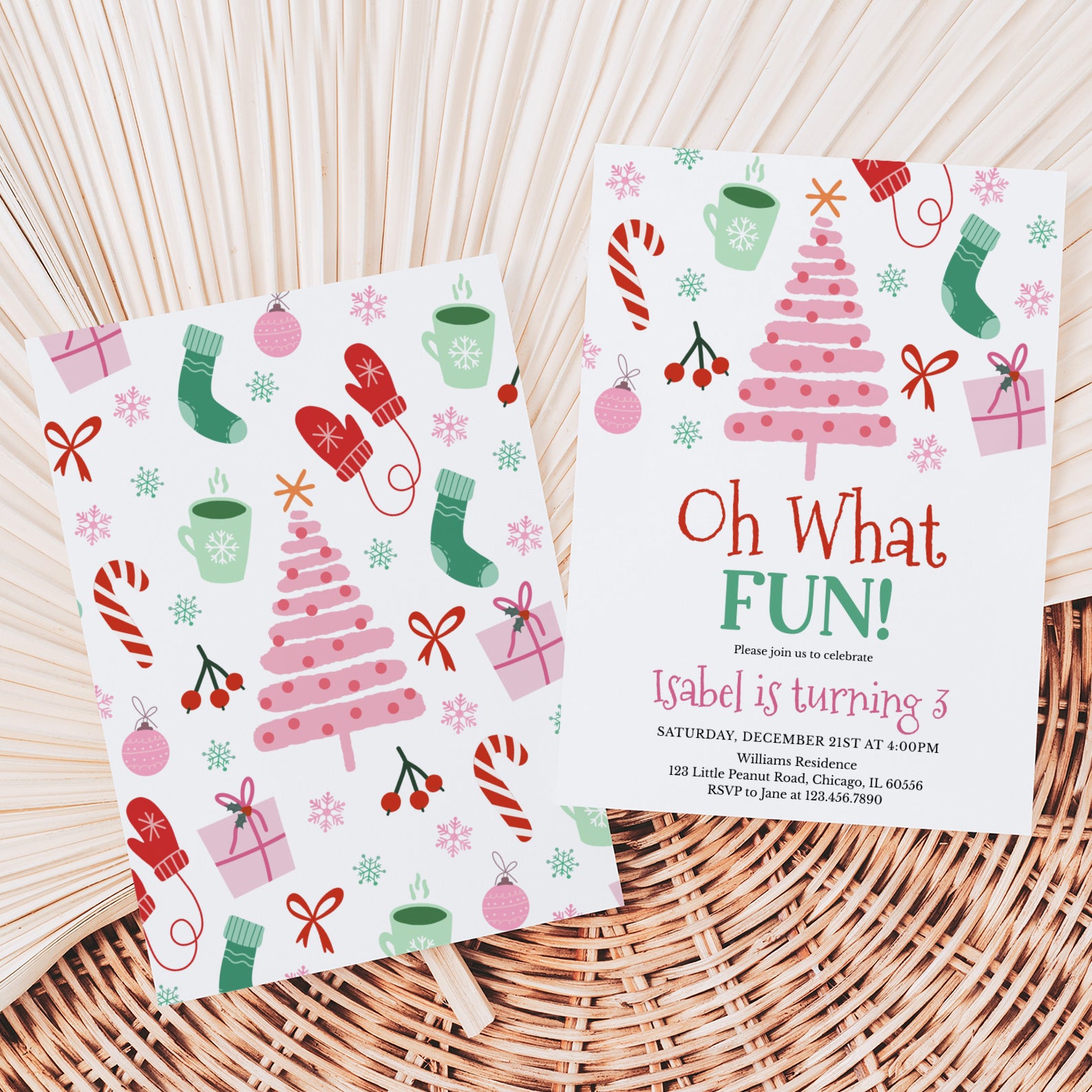 - Purchase this Winter 3rd Birthday Invite: Pink Christmas Tree & Snowflakes template