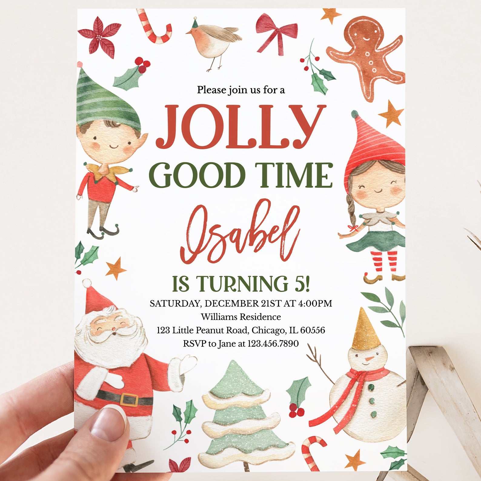 Winter 5th Birthday Invite: Elves, Santa & Snowman Fun