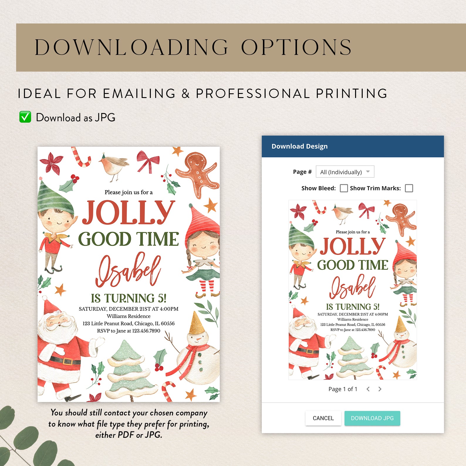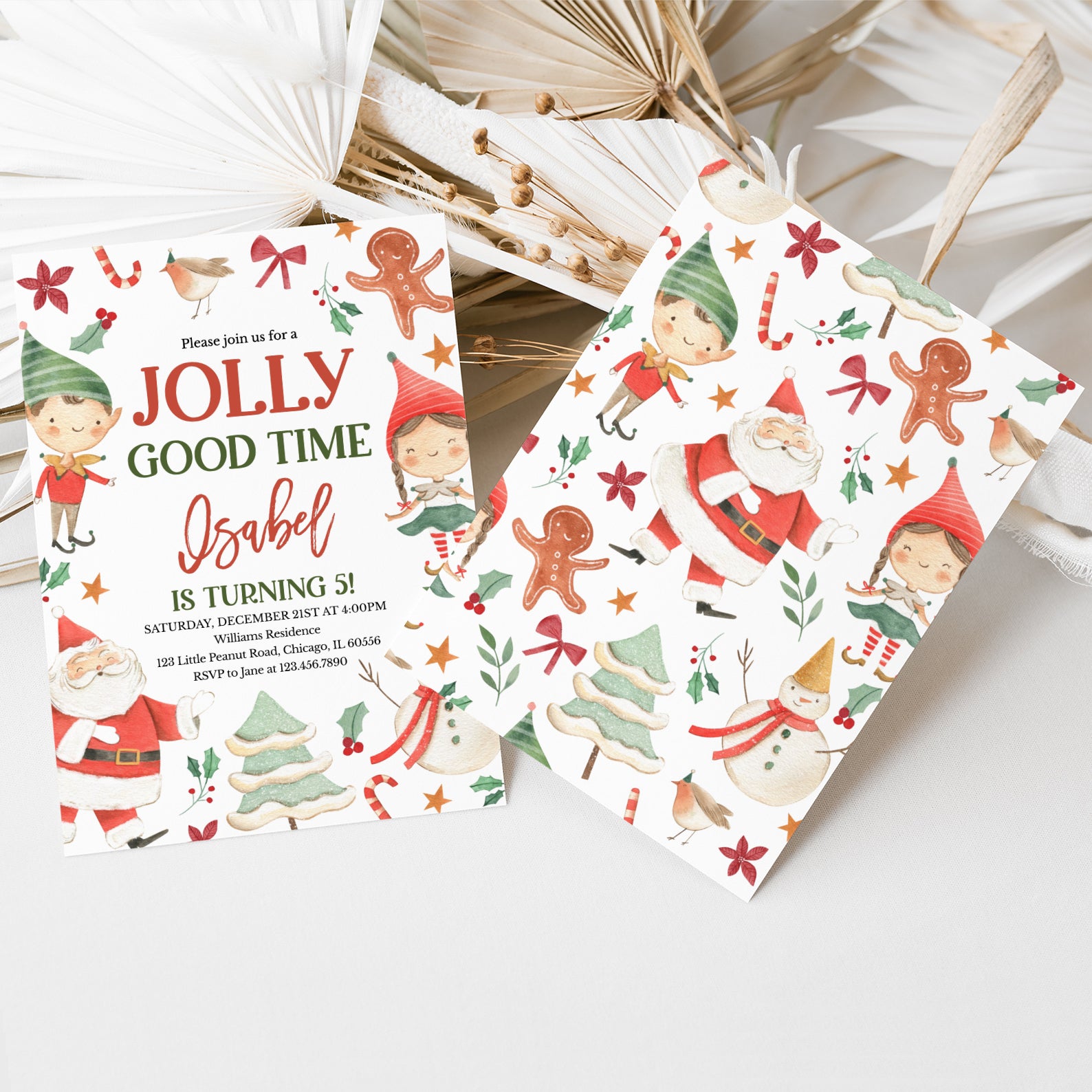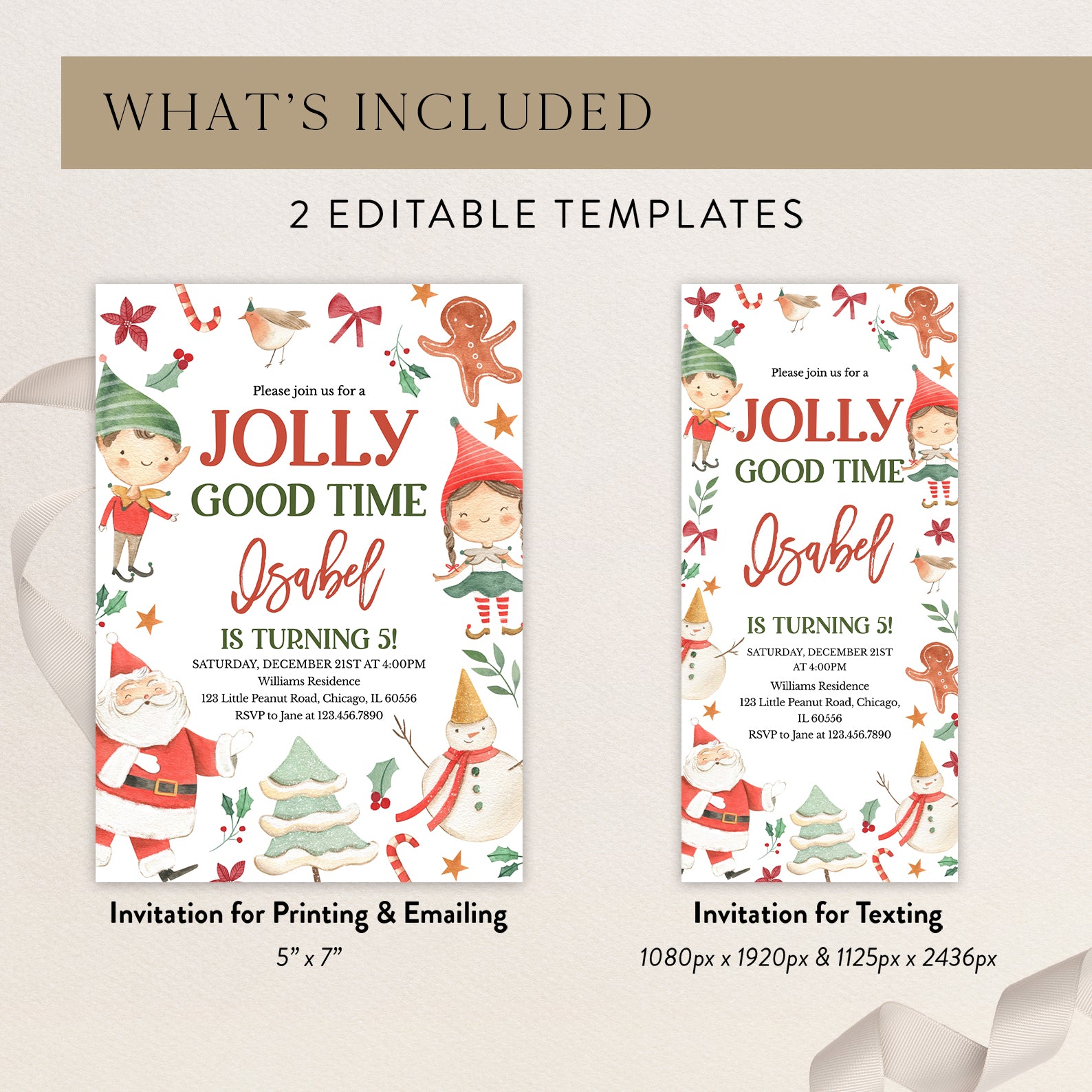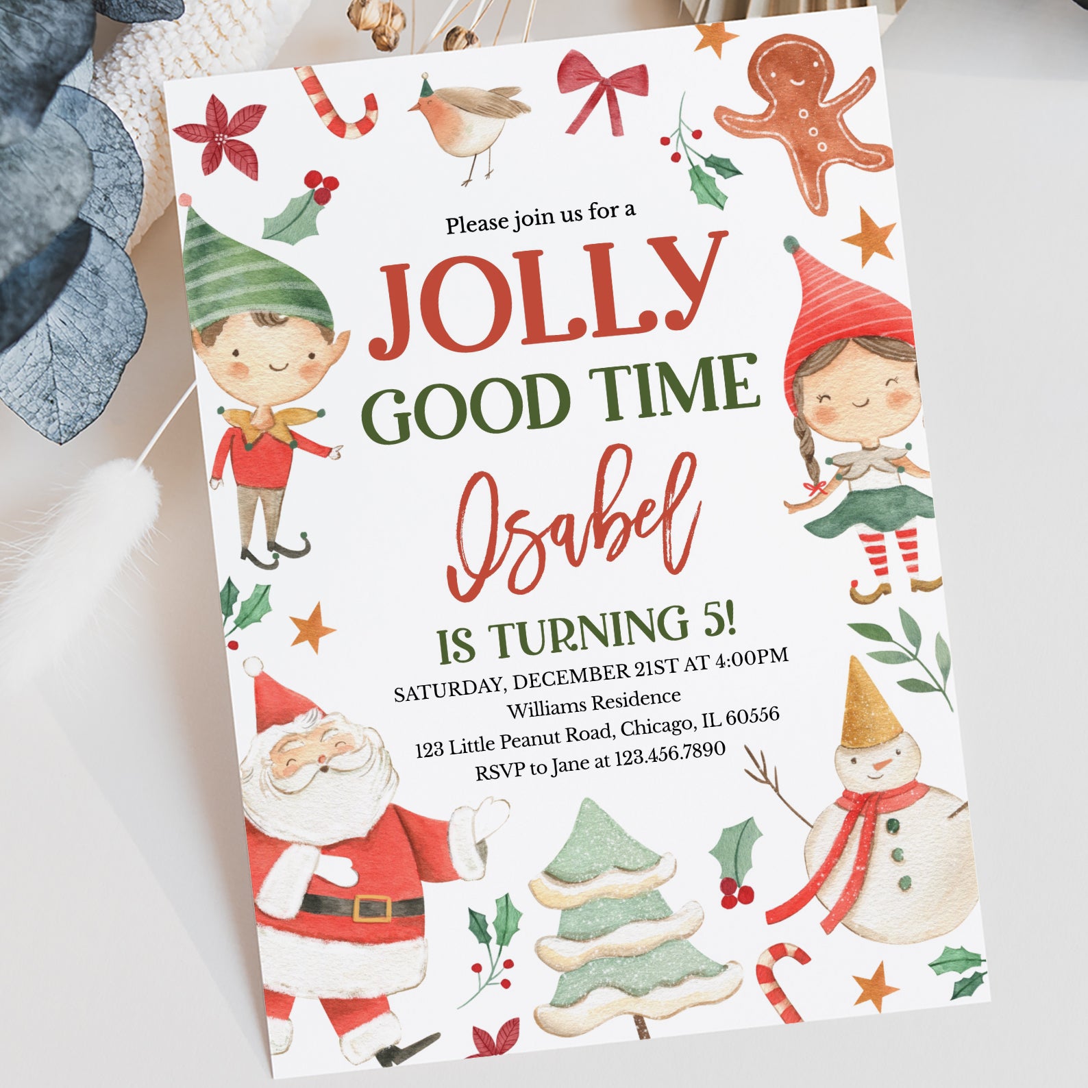- Purchase this Winter 5th Birthday Invite: Elves, Santa & Snowman Fun template