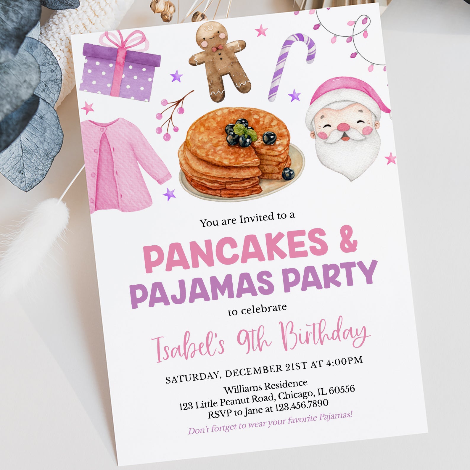 - Purchase this Winter 9th Birthday Invite: Pancakes & Pajamas Party template