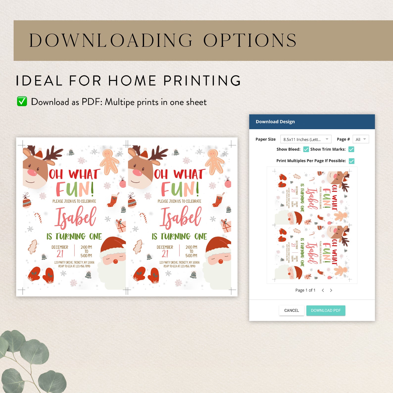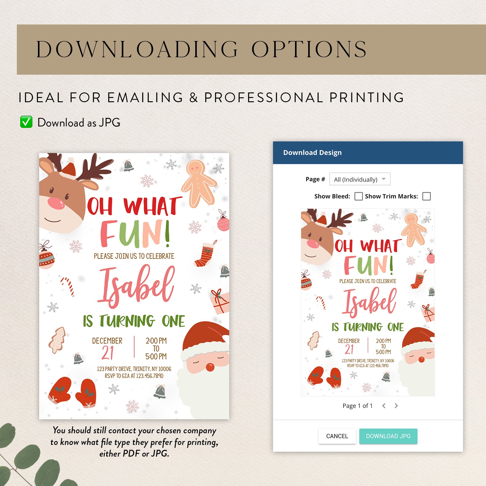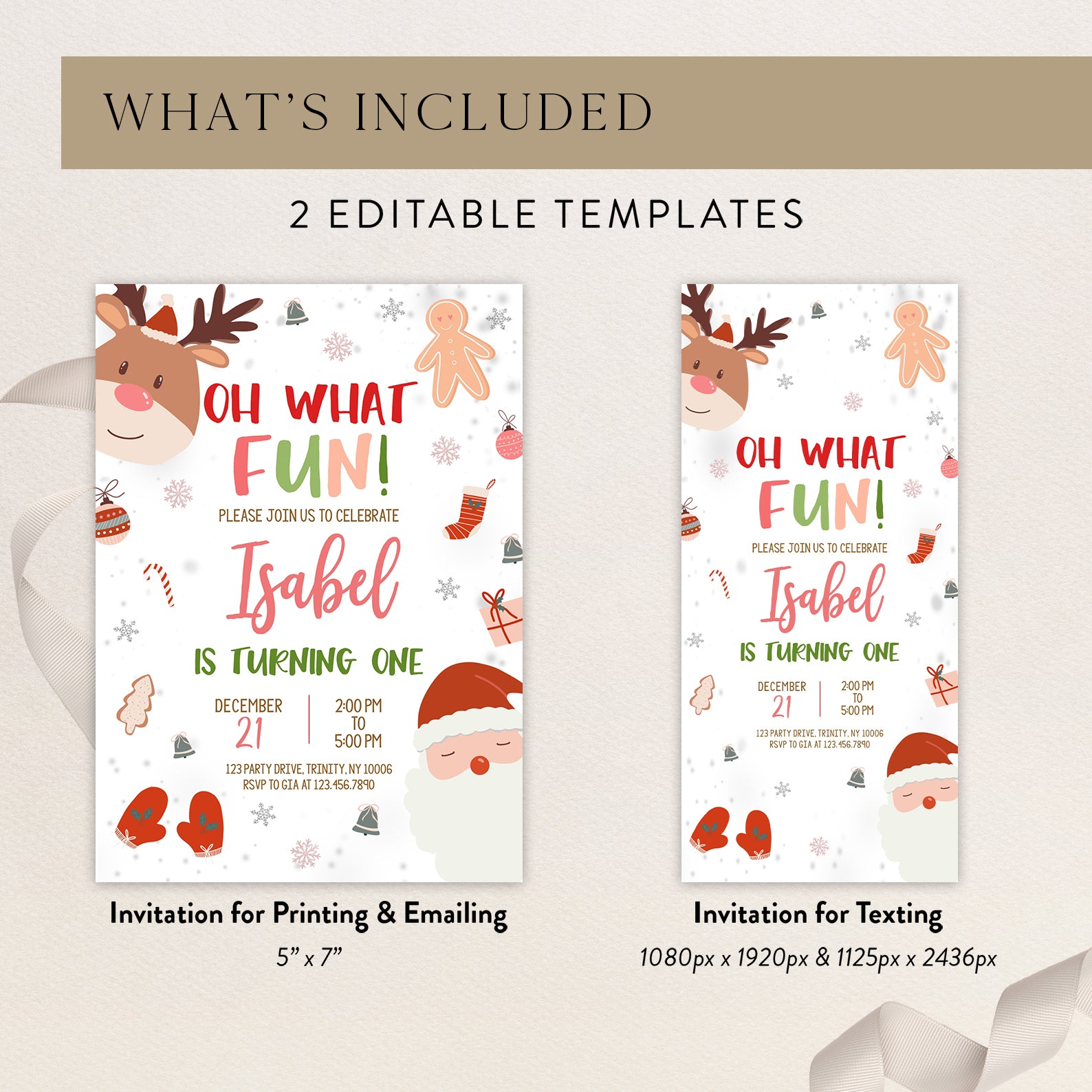 - Purchase this Winter Wonderland 1st Birthday Invite: Santa & Reindeer template